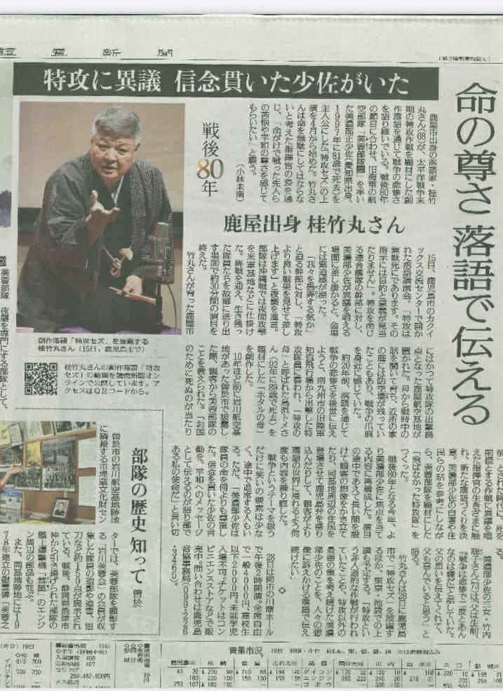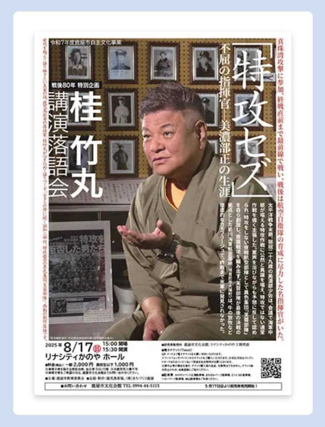 戦後80年特別企画 「桂竹丸 講演落語会」開催