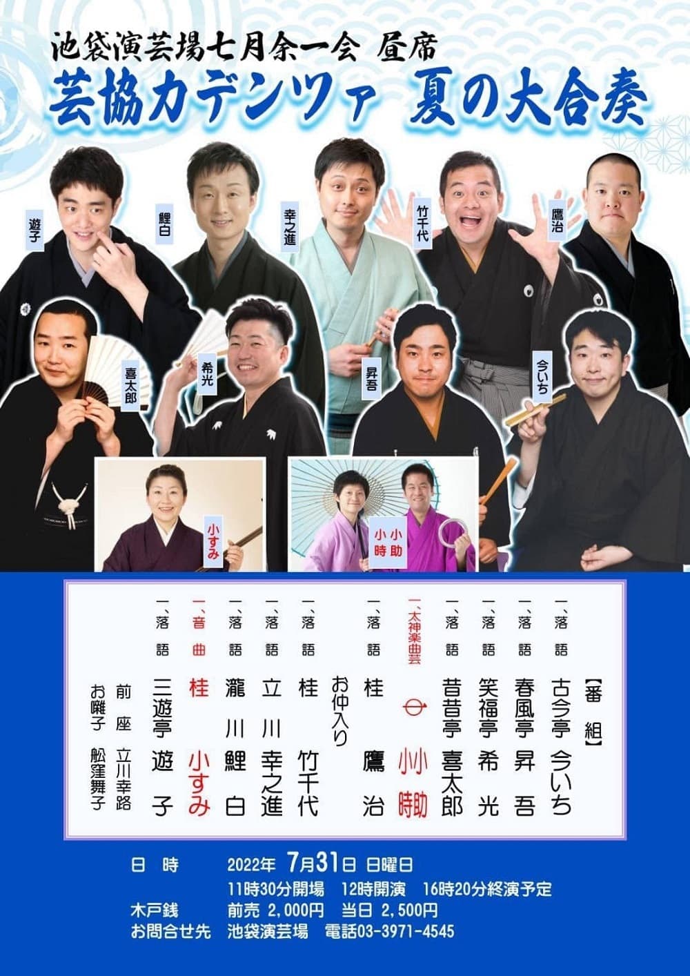 ※公演時間は20時00分~20時45分となります。(出典・落語芸術協会)