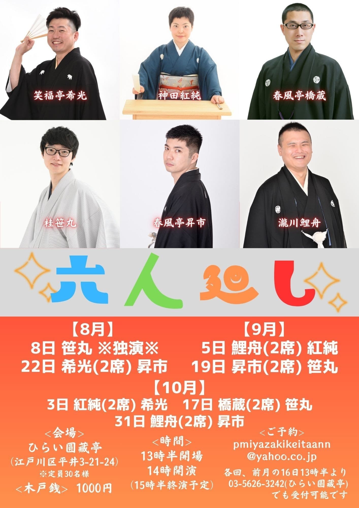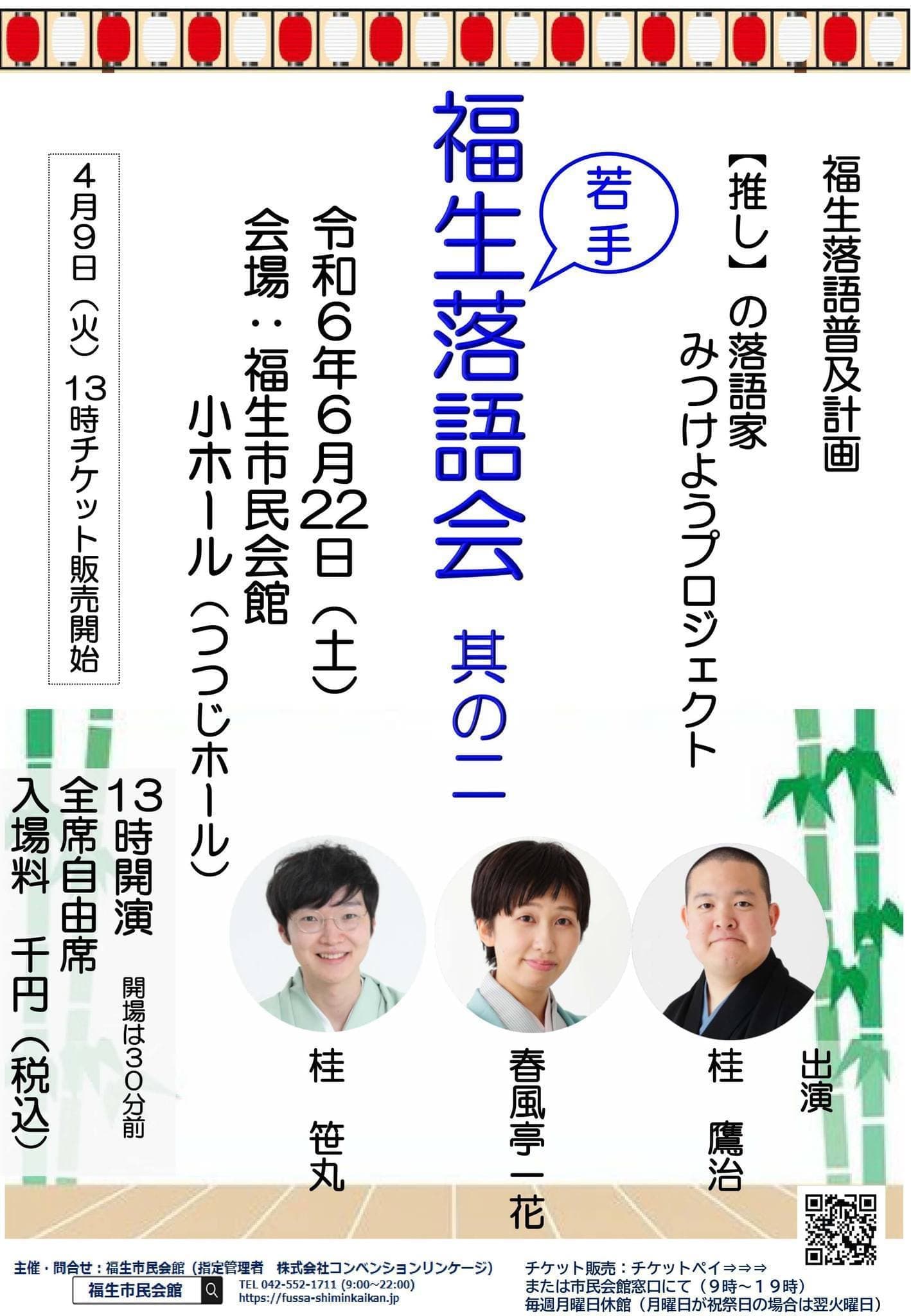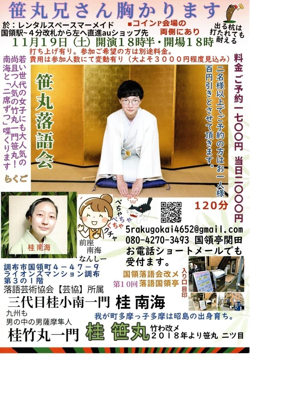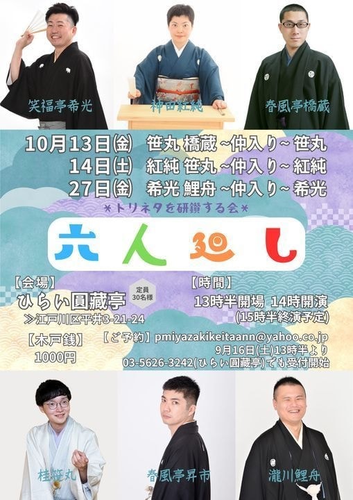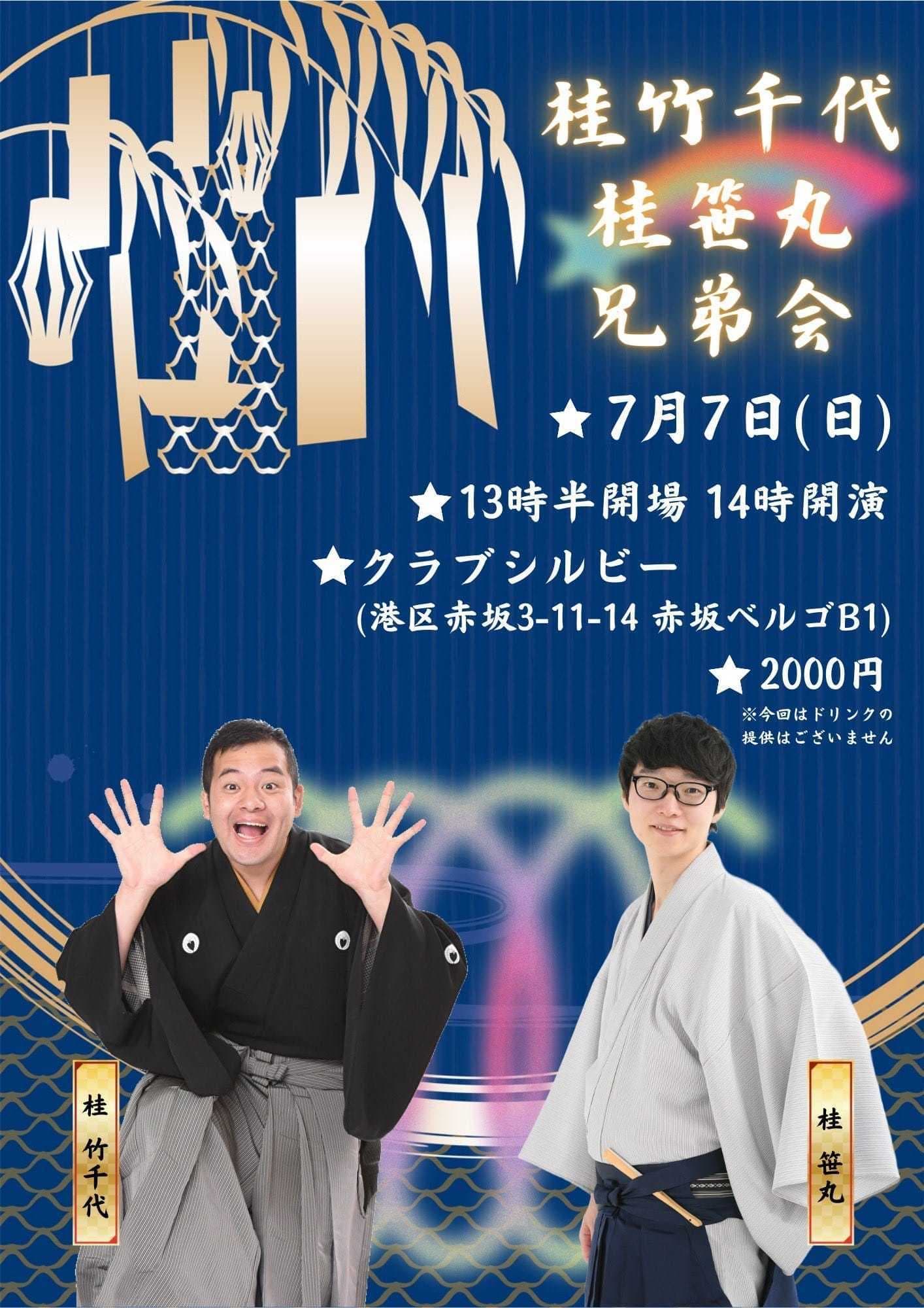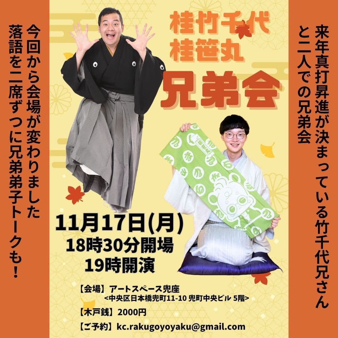 【第2部】18:30 開演16日(金)の第2部(18:30開演)は満席桂竹丸·桂竹千代·桂笹丸·桂竹紋 入場料一律3,000円※全席自由