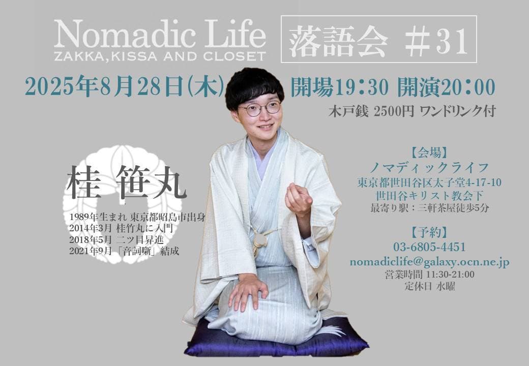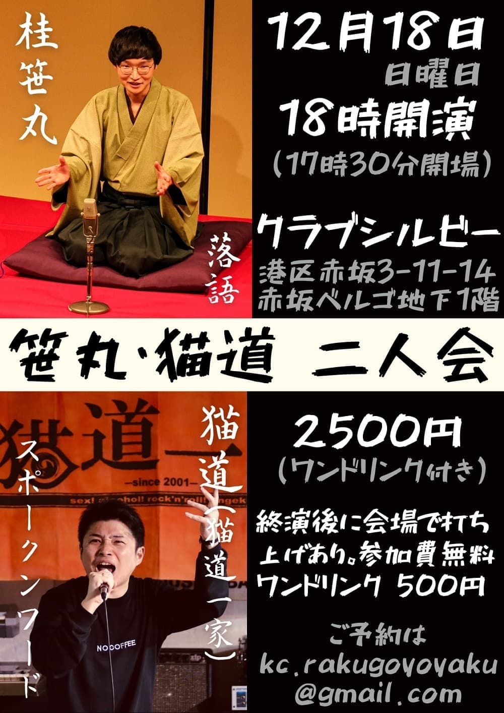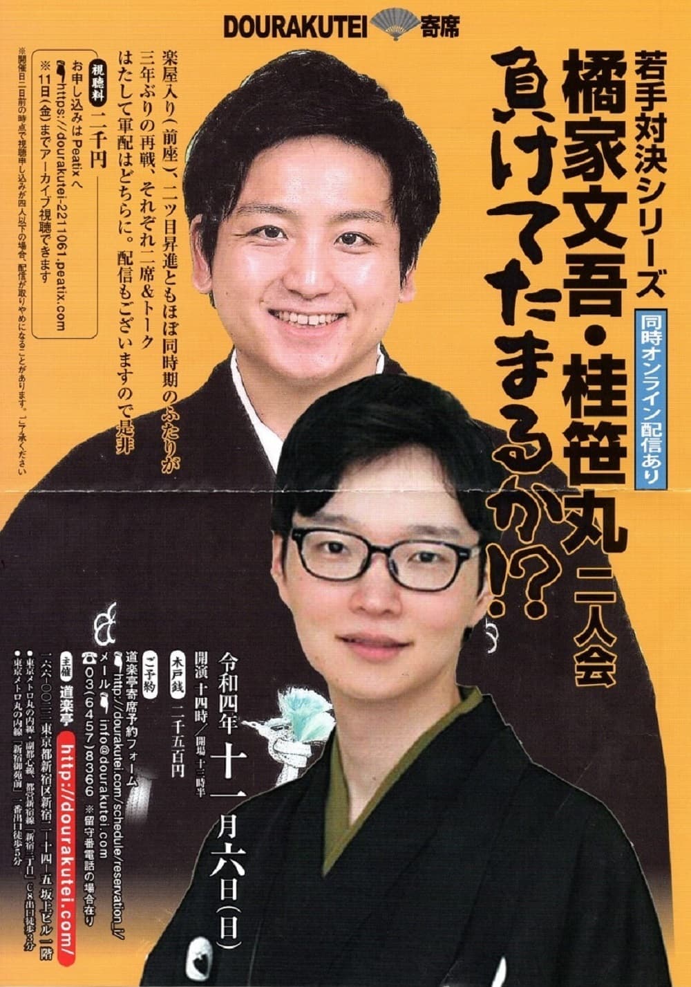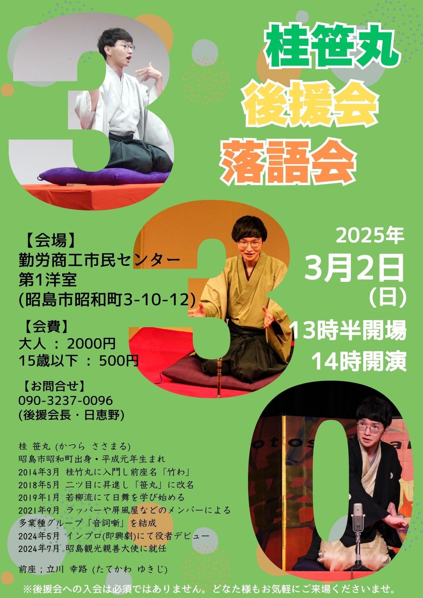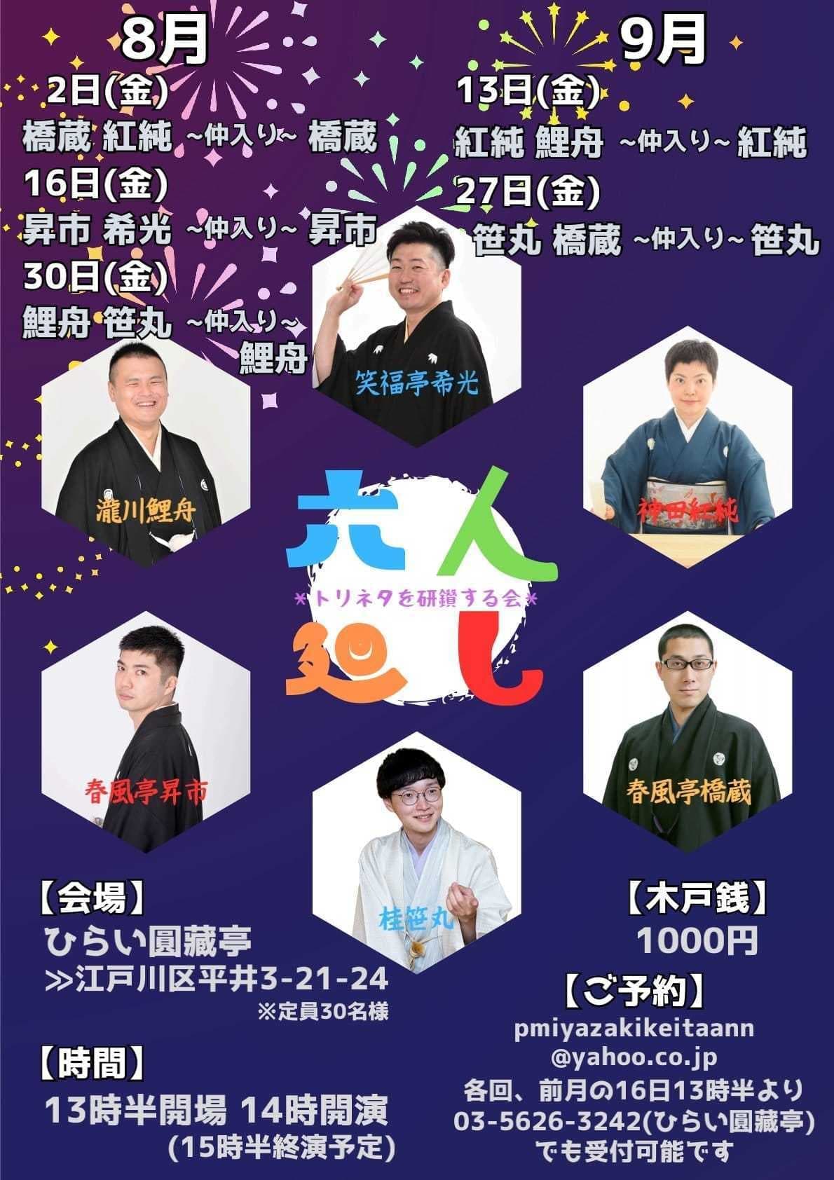 【第2部】18:30 開演16日(金)の第2部(18:30開演)は満席桂竹丸·桂竹千代·桂笹丸·桂竹紋 入場料一律3,000円※全席自由