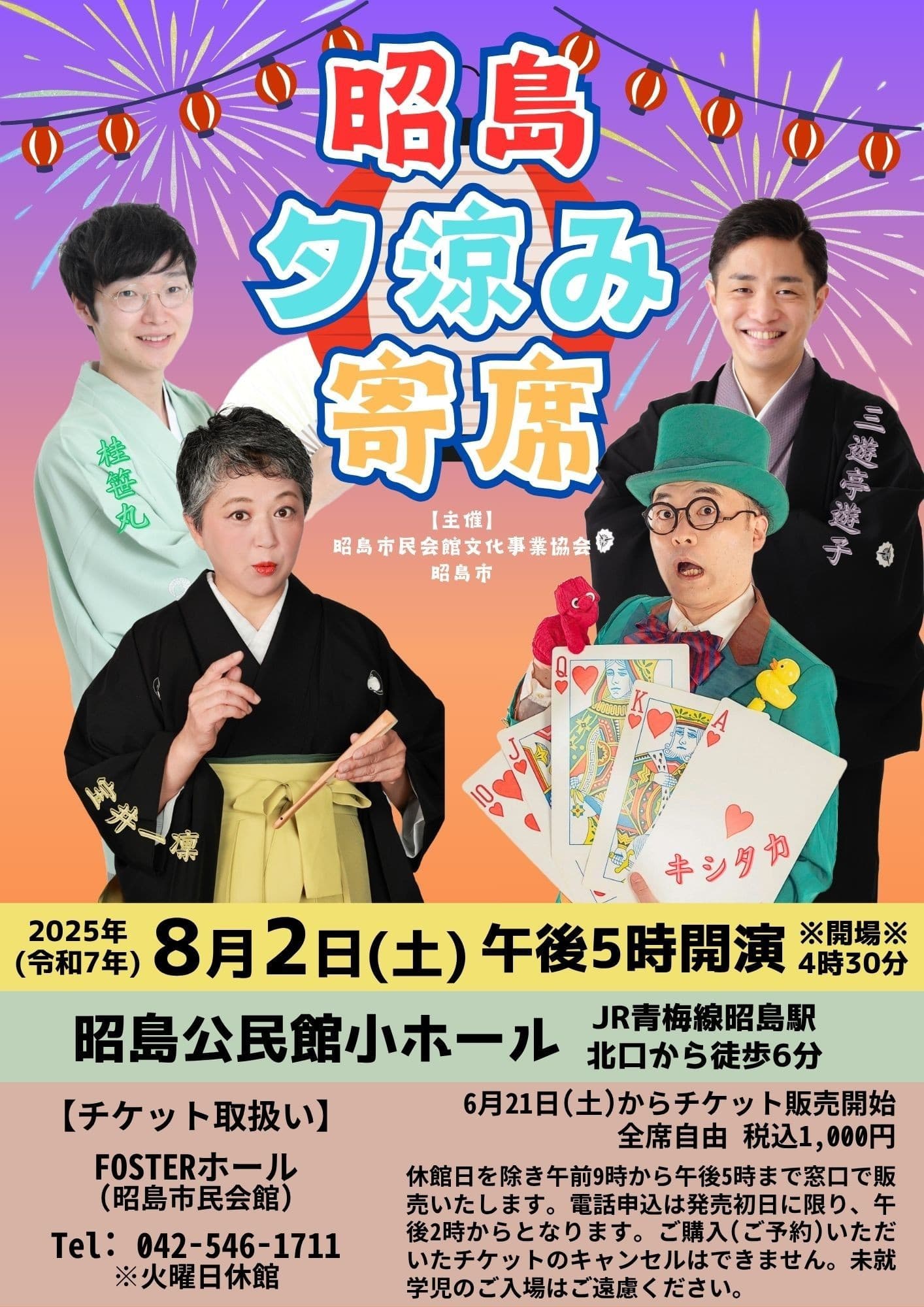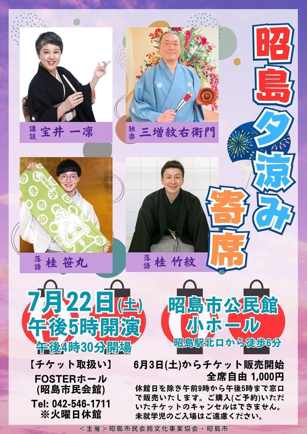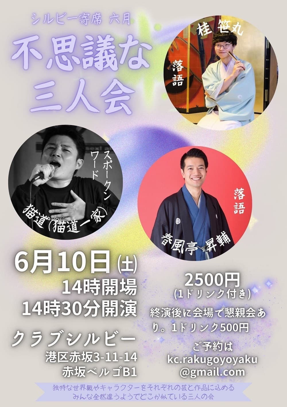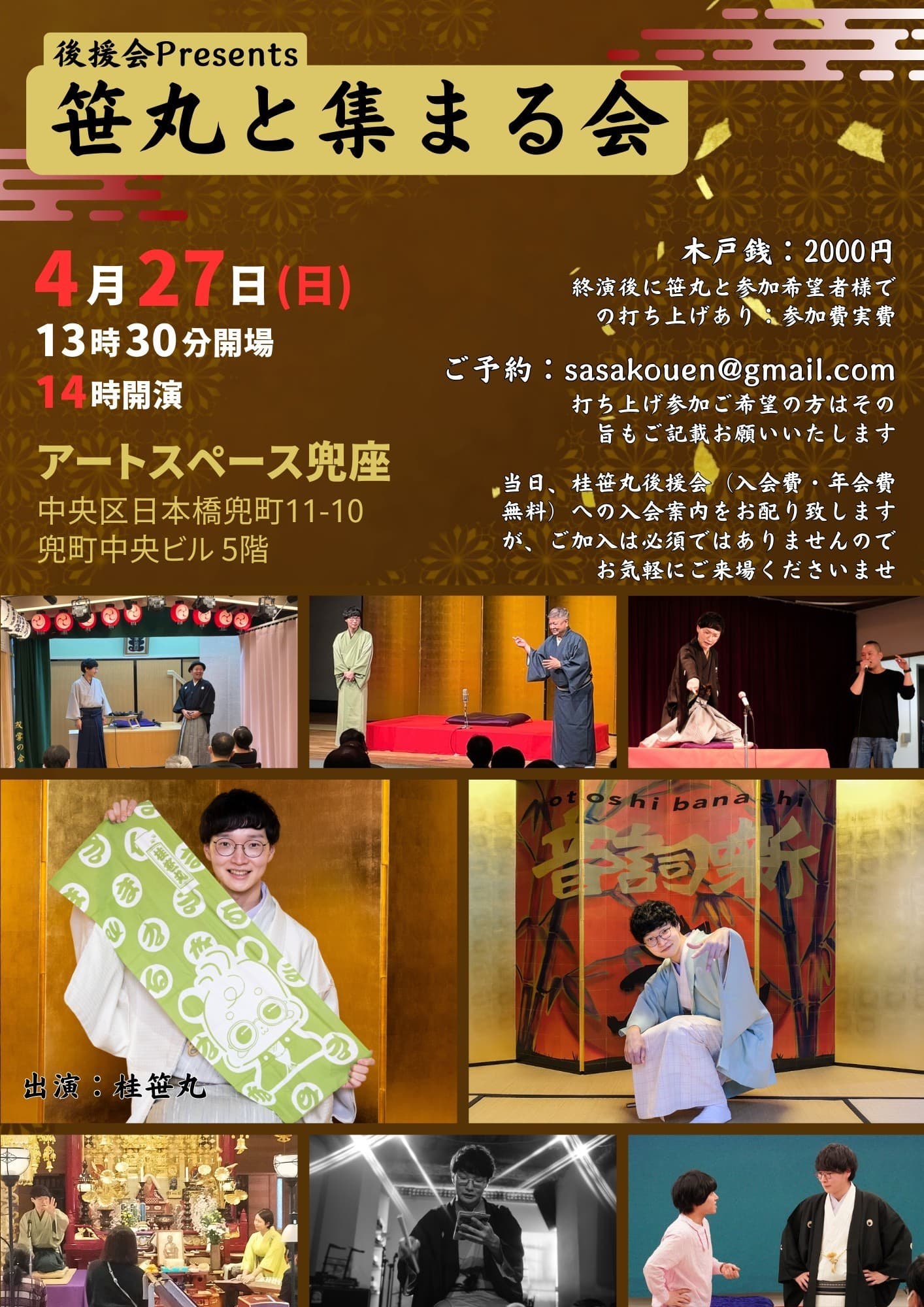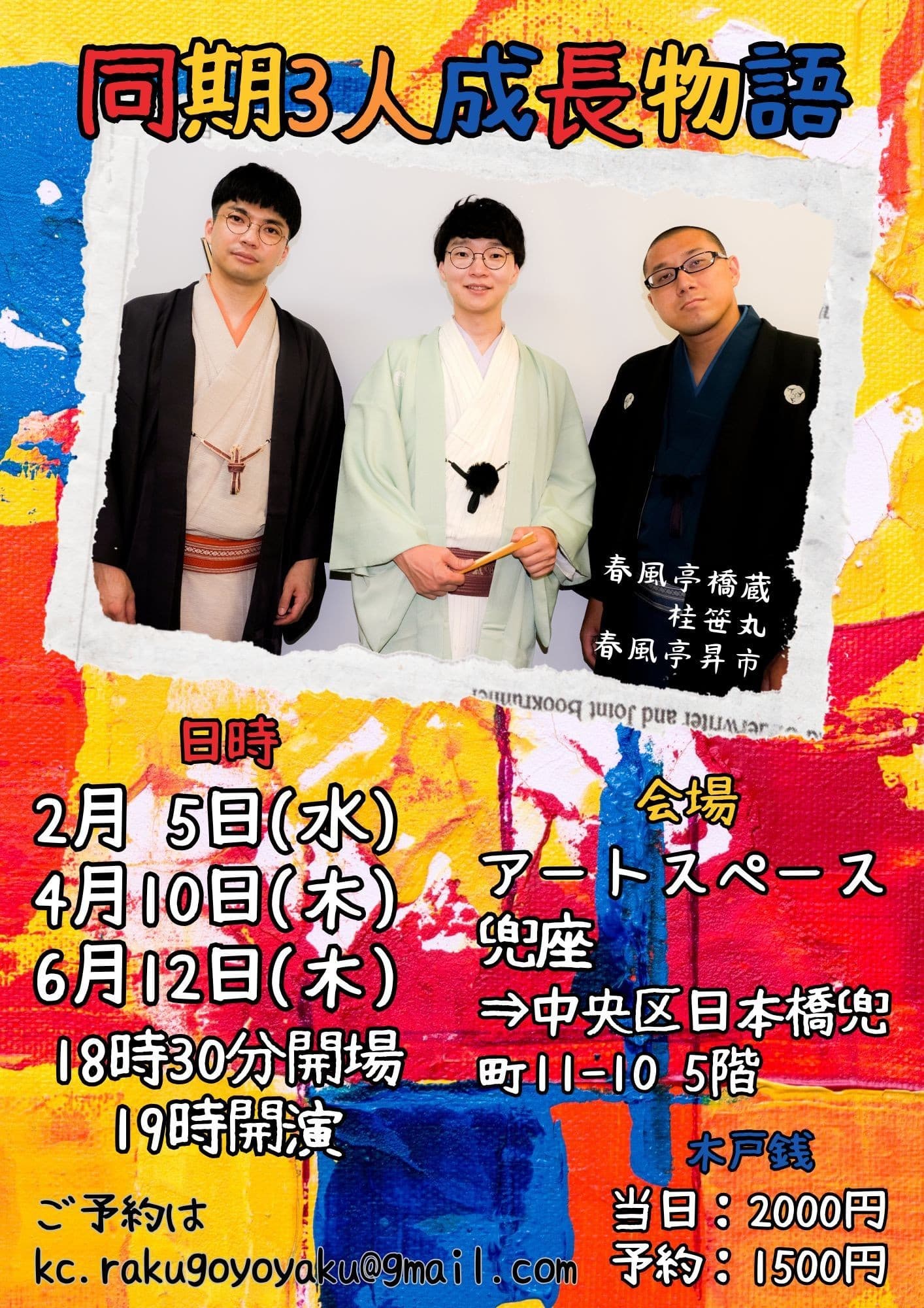 【第2部】18:30 開演16日(金)の第2部(18:30開演)は満席桂竹丸·桂竹千代·桂笹丸·桂竹紋 入場料一律3,000円※全席自由