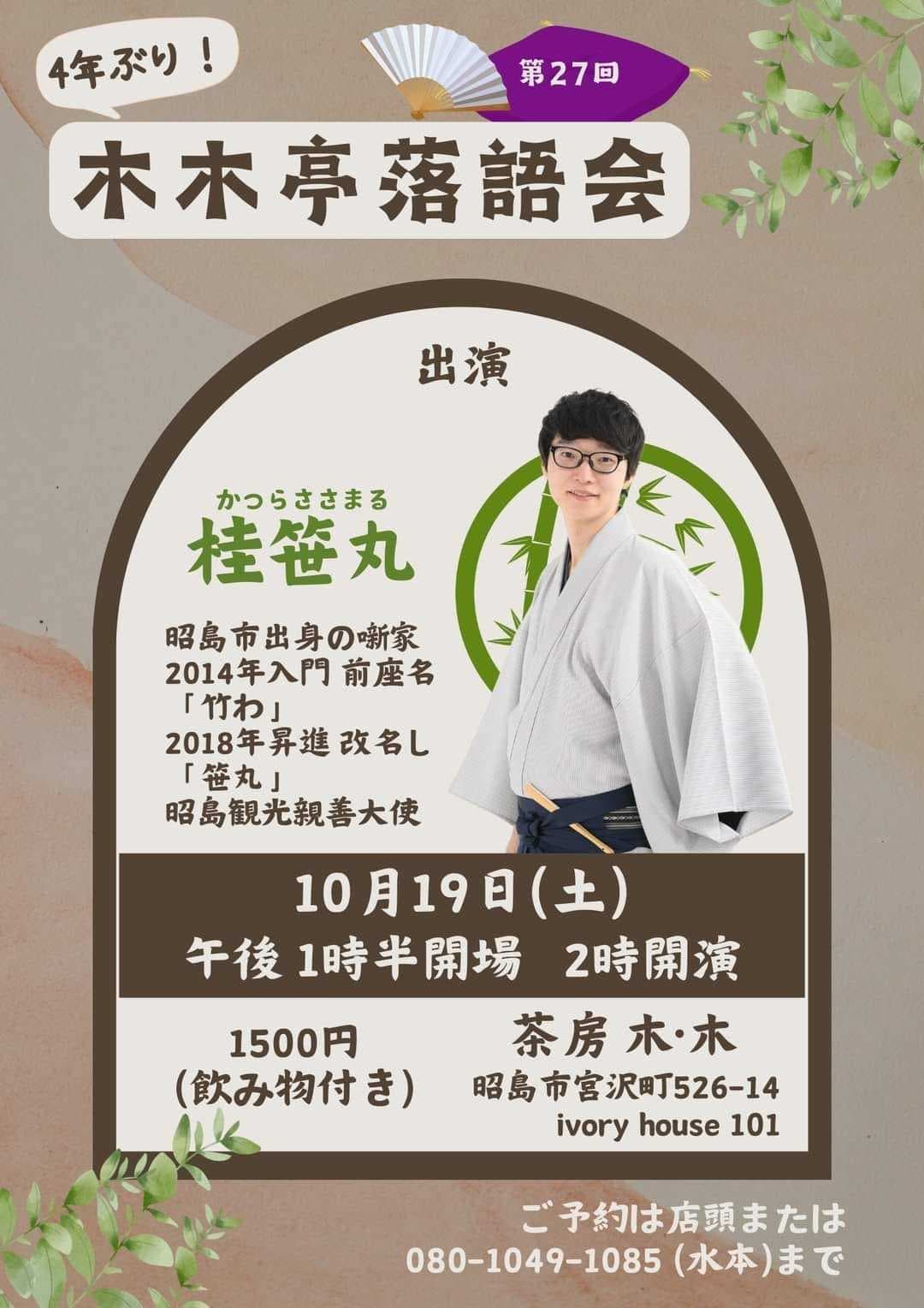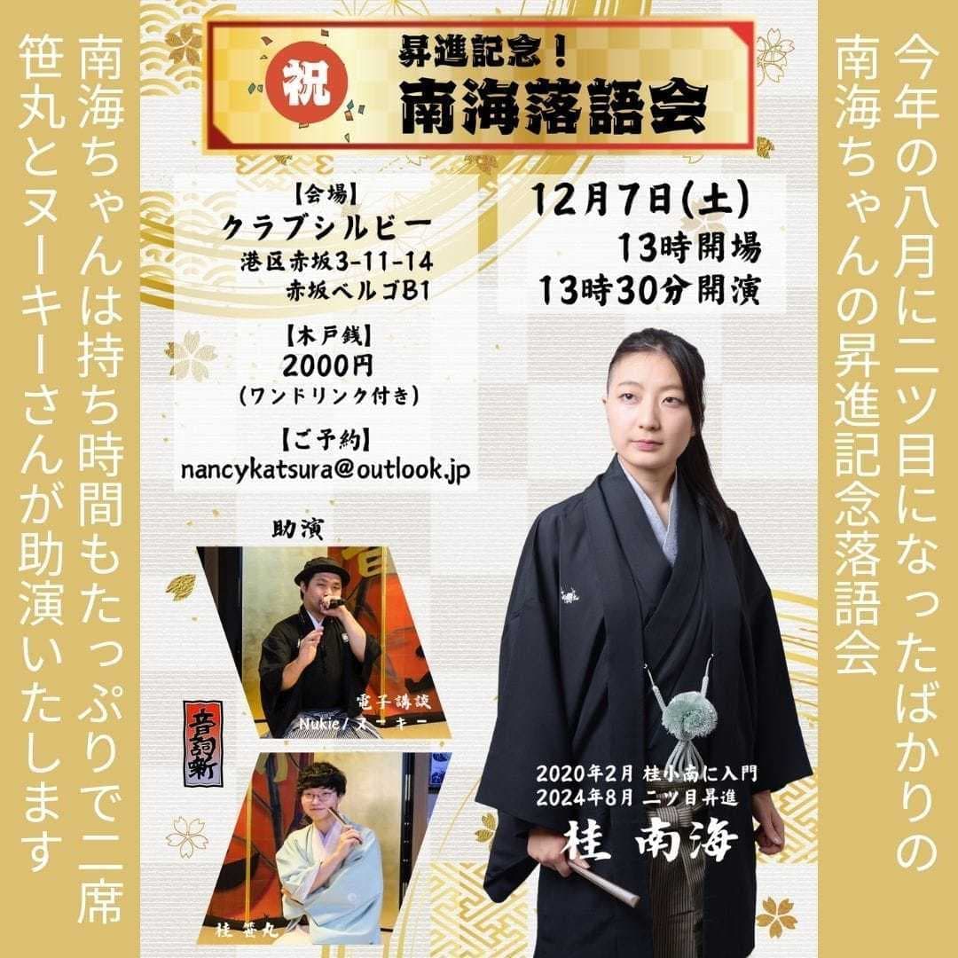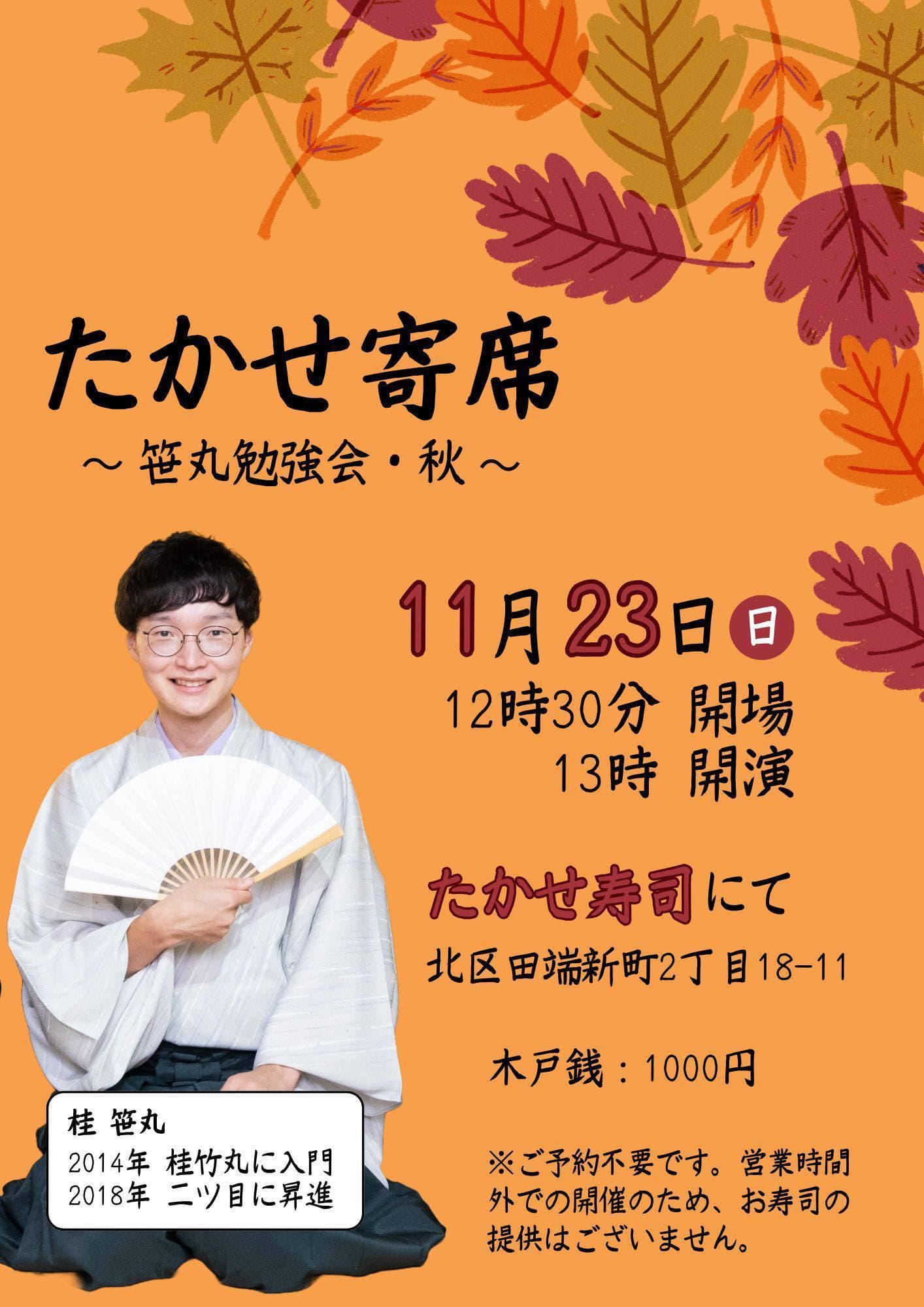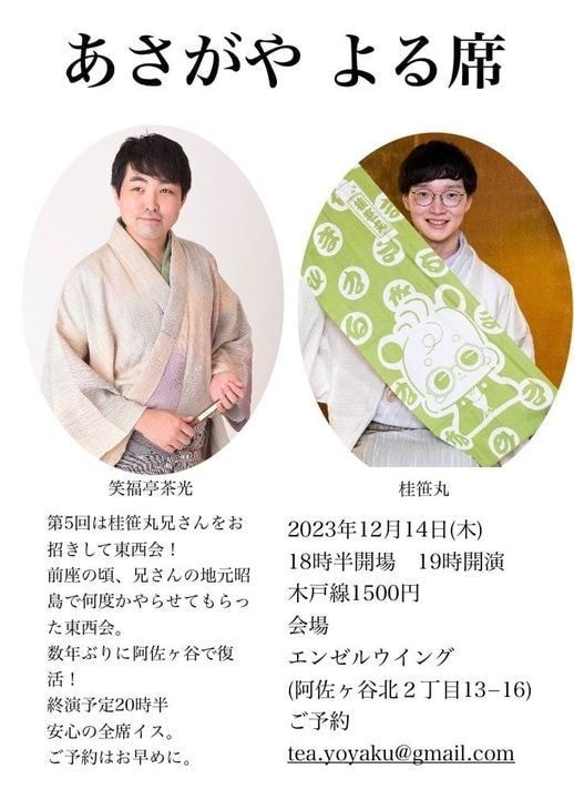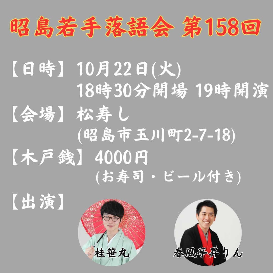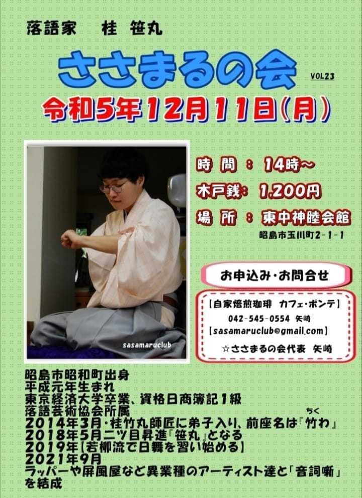 宮城県·仙台の皆様。花座にて一門会があります!是非とも観に来て下さい!桂竹丸一門会2022年12月15日(木)16日(金)【第1部】14:00 開演