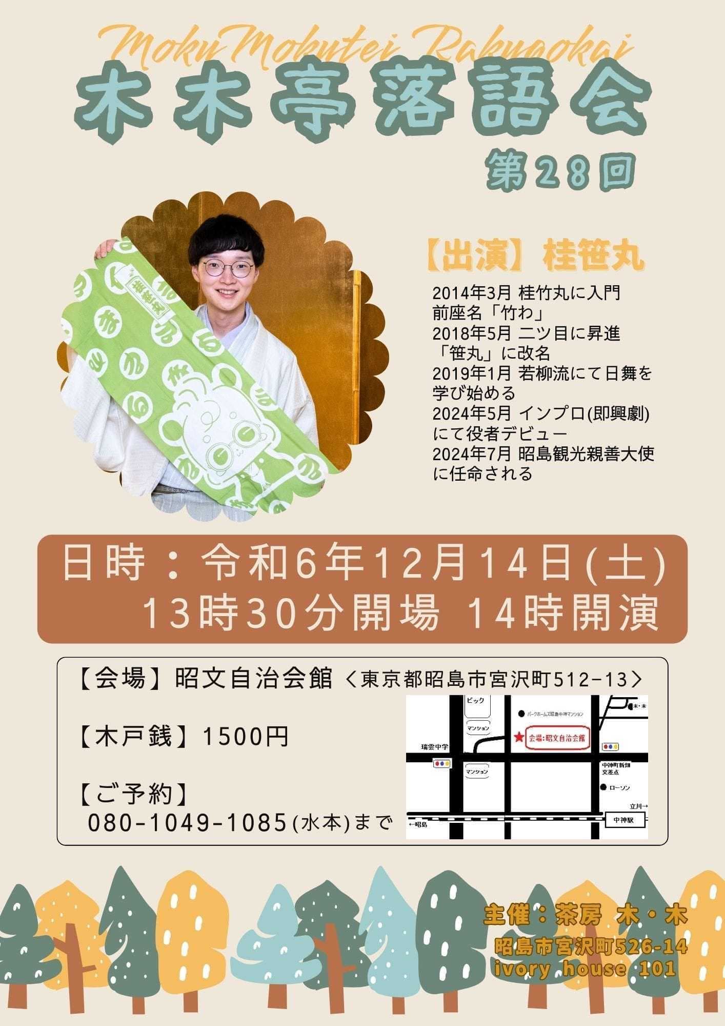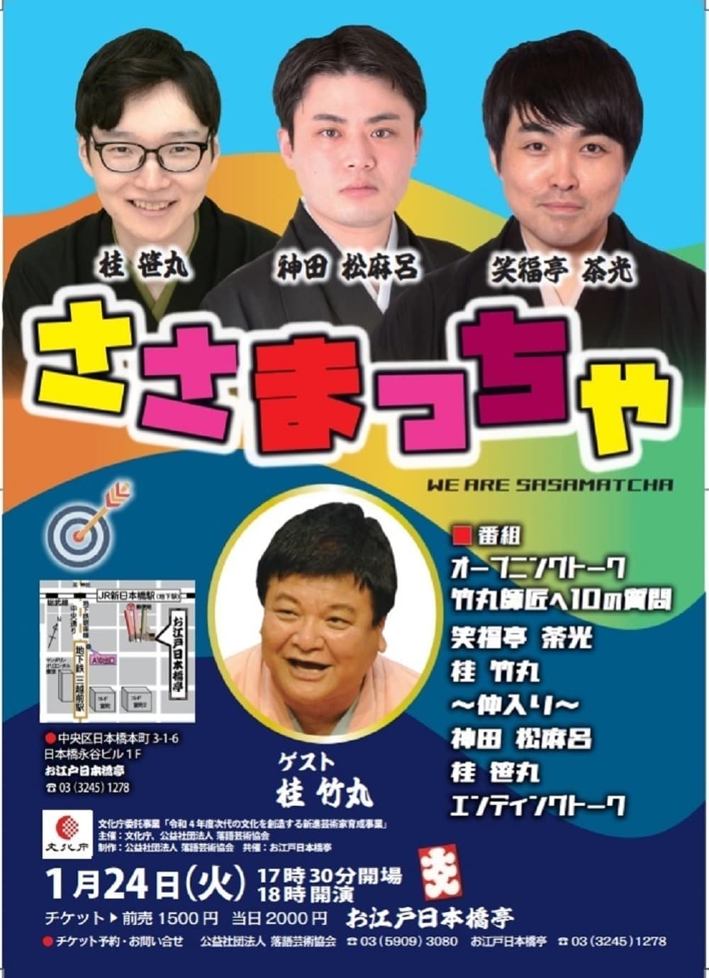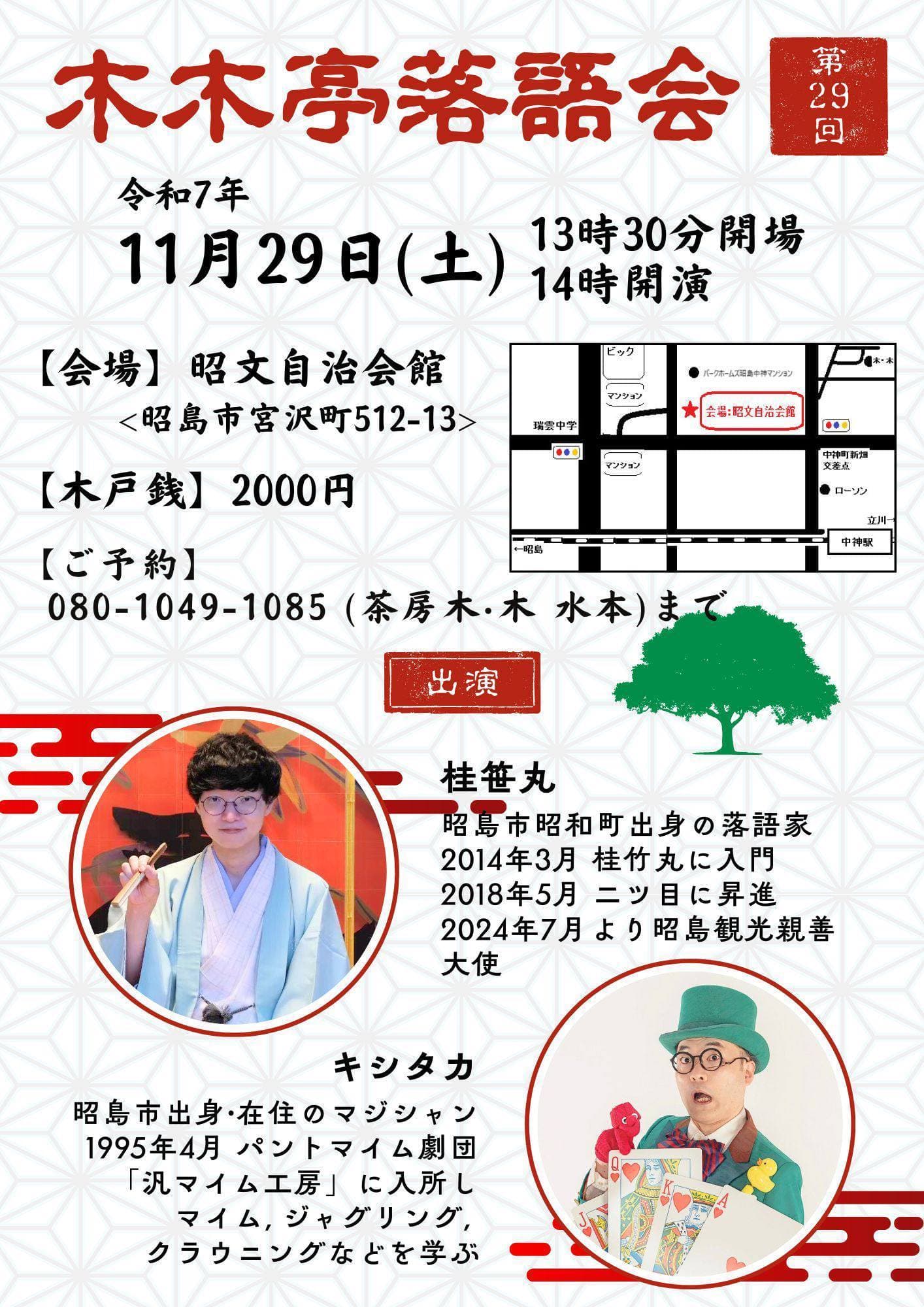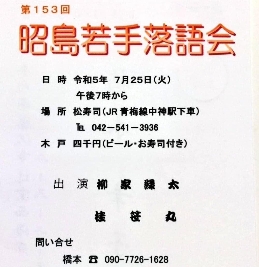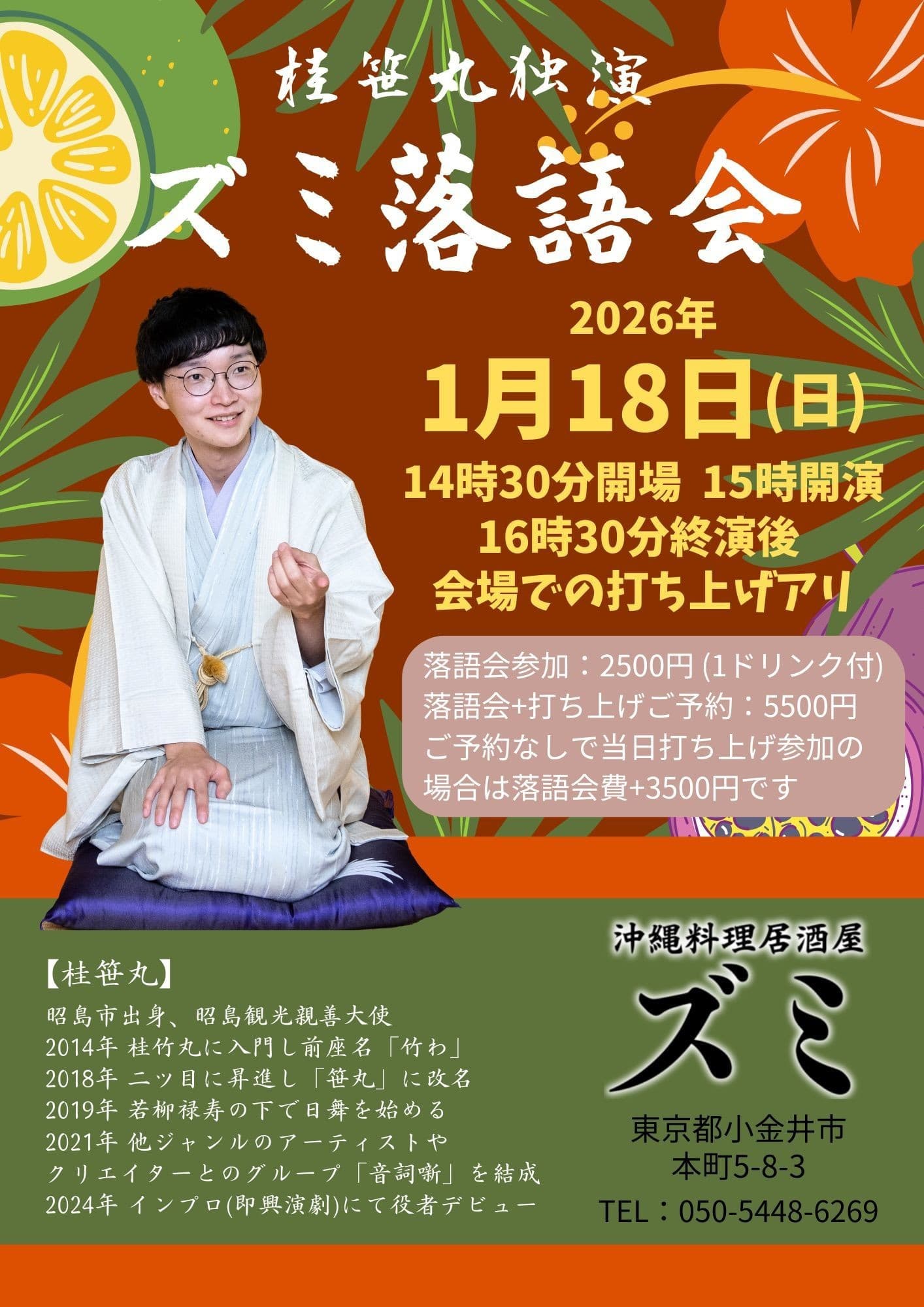 宮城県·仙台の皆様。花座にて一門会があります!是非とも観に来て下さい!桂竹丸一門会2022年12月15日(木)16日(金)【第1部】14:00 開演