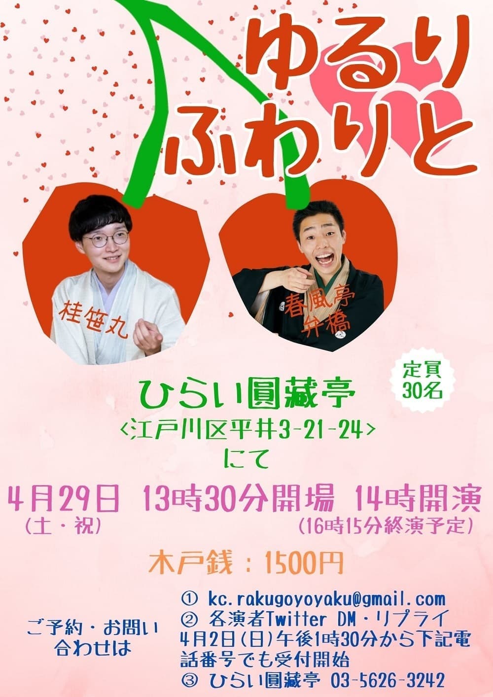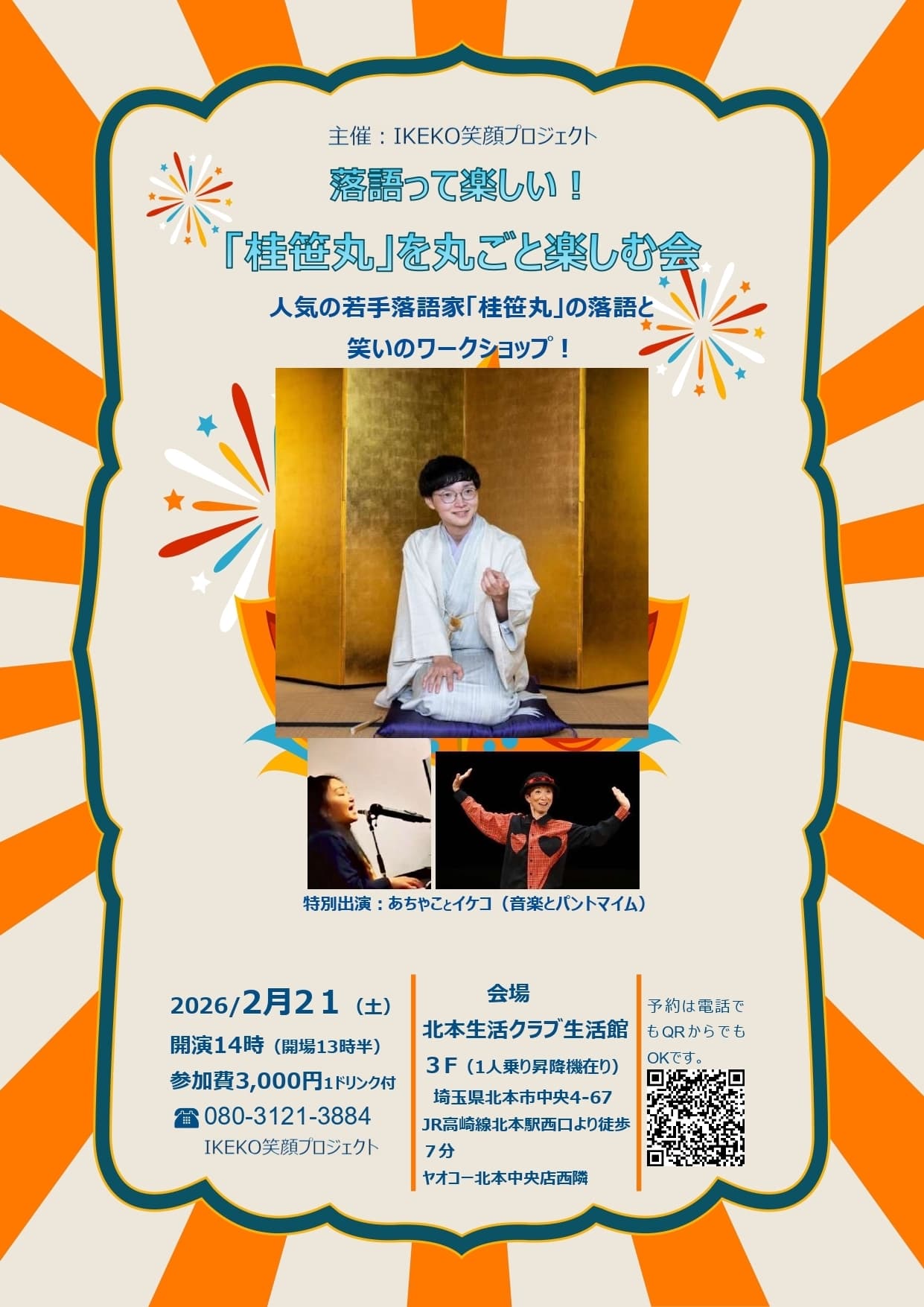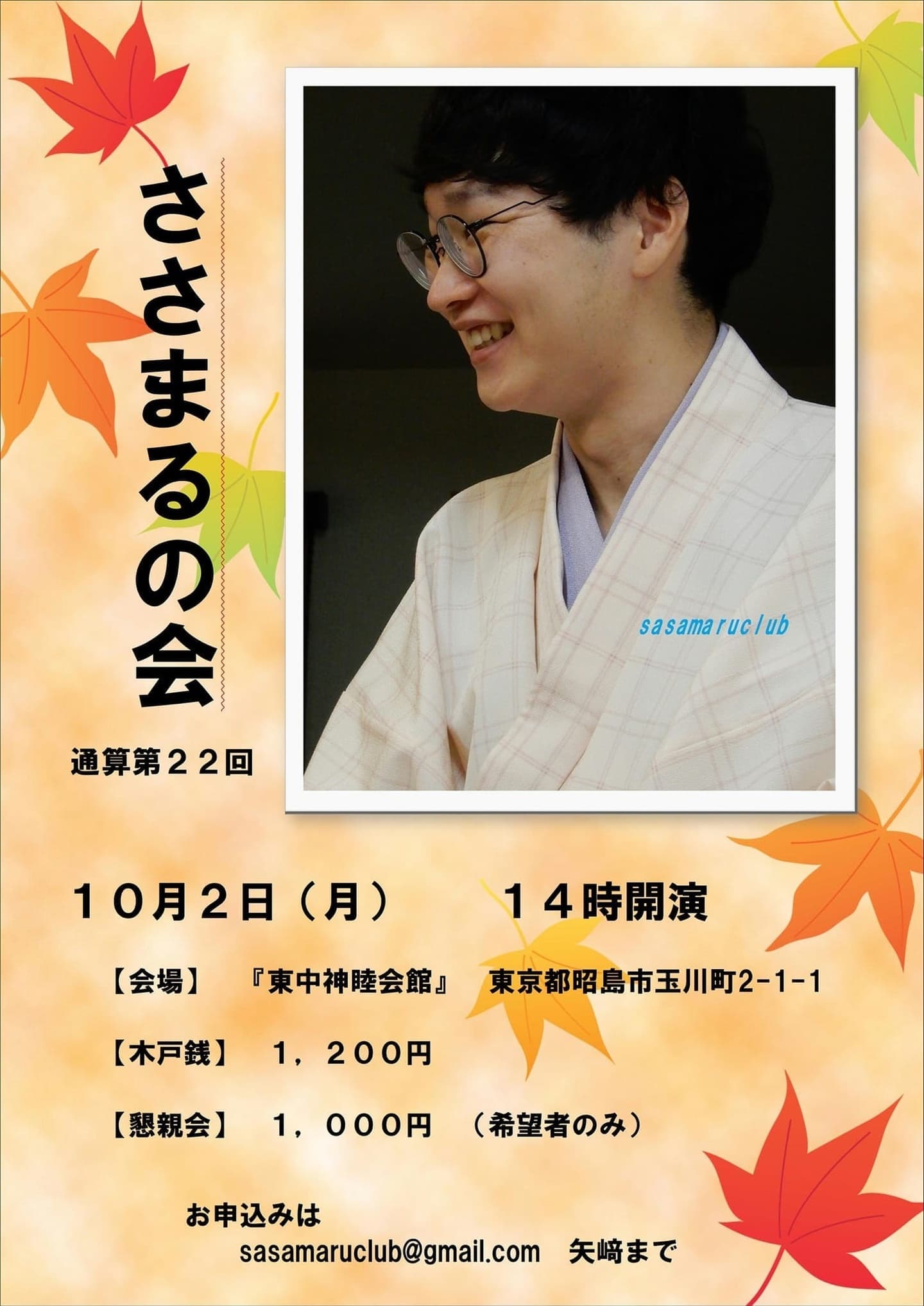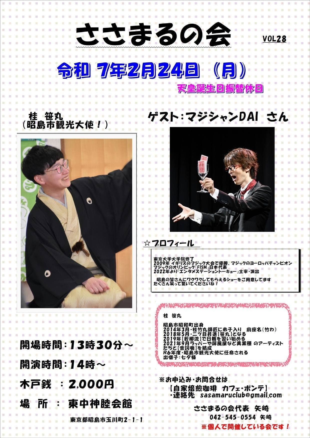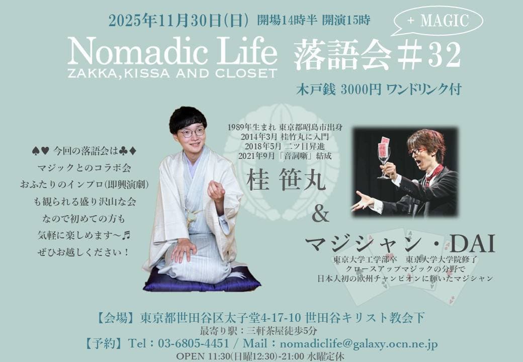 宮城県·仙台の皆様。花座にて一門会があります!是非とも観に来て下さい!桂竹丸一門会2022年12月15日(木)16日(金)【第1部】14:00 開演