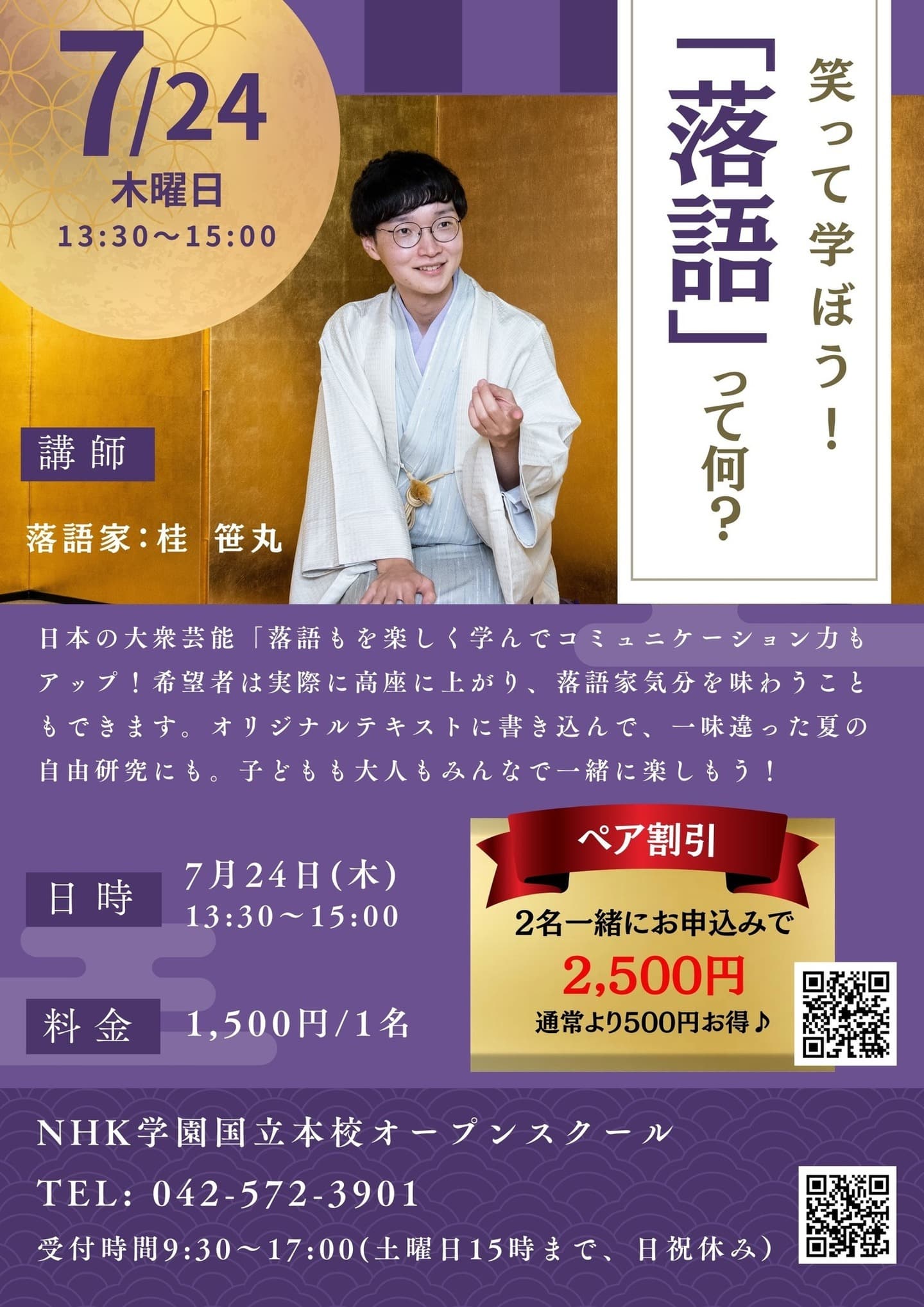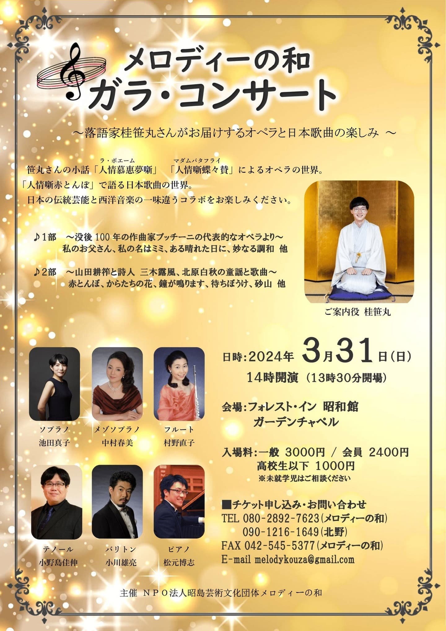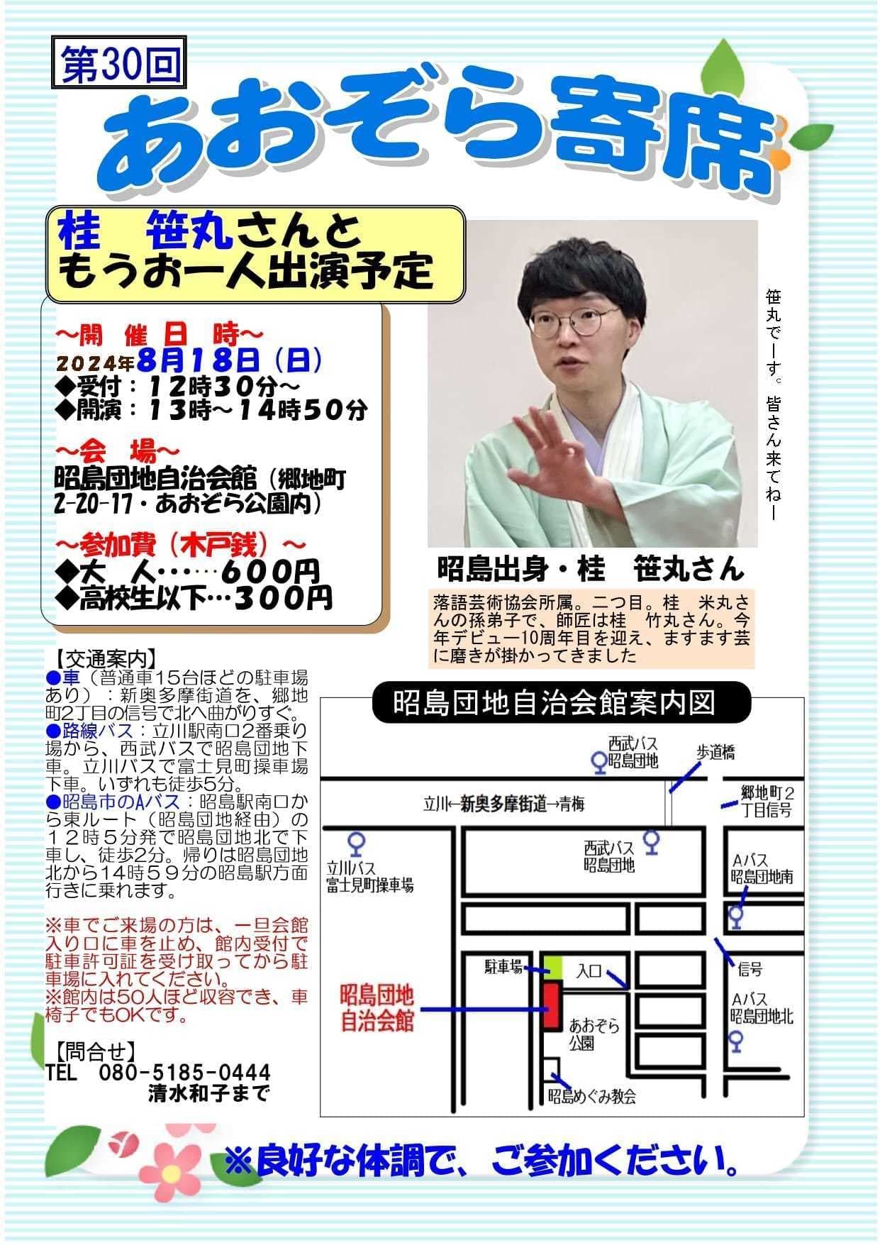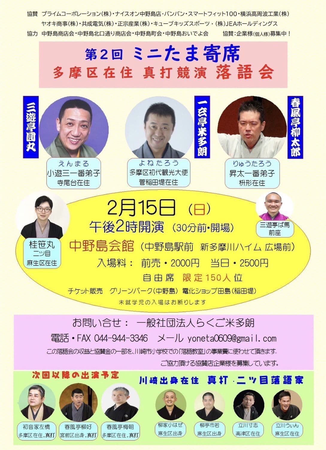 10月24日(月)19時から立川市のRISURUホールで師匠・竹丸との親子会やります!