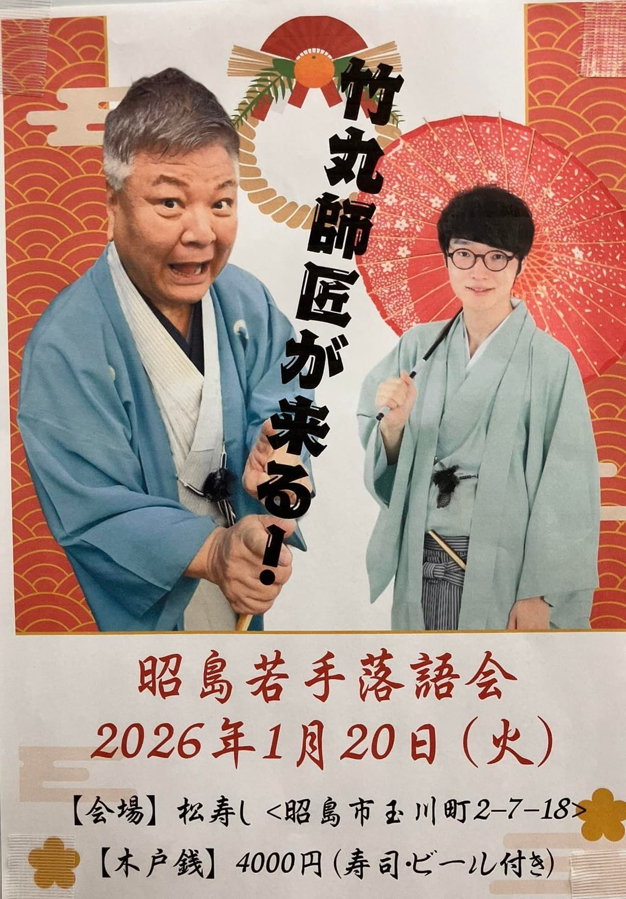 師匠にこっち方面の会に出ていただくのは、2018年昭島市で行った昇進披露の会以来!