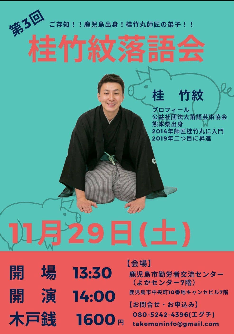 熊本の芦北にて落語会開催!本当に有り難いです!是非とも県南の皆様観に来て下さい!この日のみ無料です!