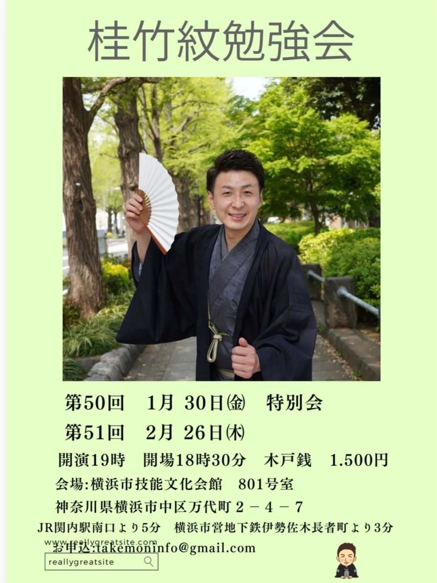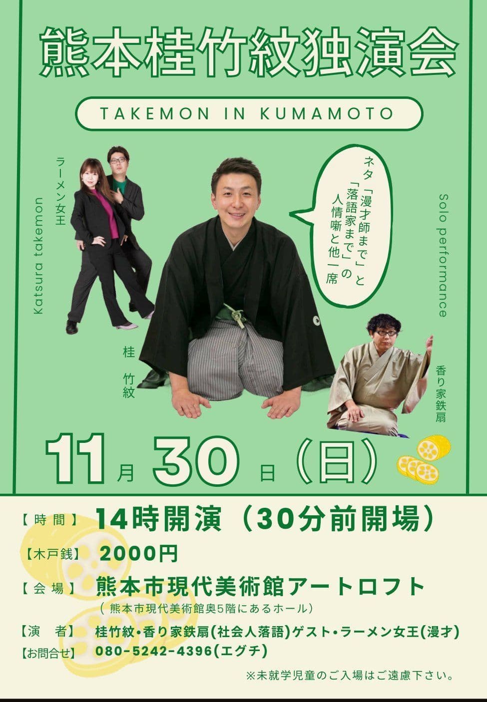 演者·桂竹千代·桂竹紋·香り家鉄扇(社会人落語)ラーメン女王(漫才)その他