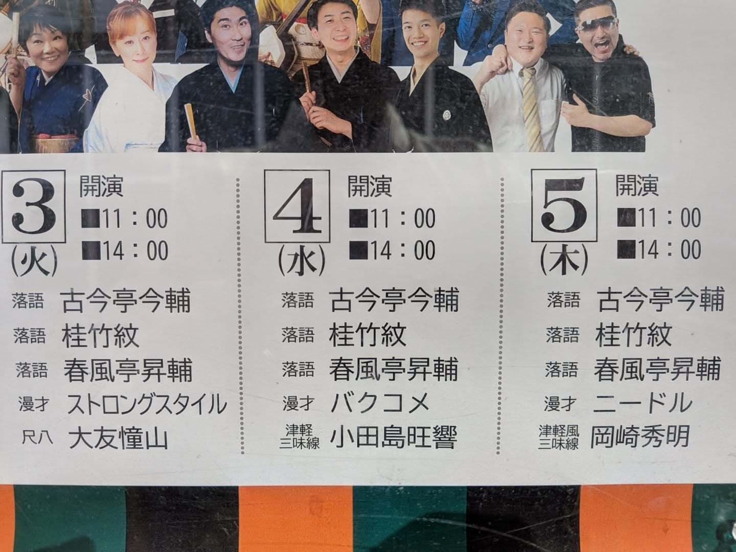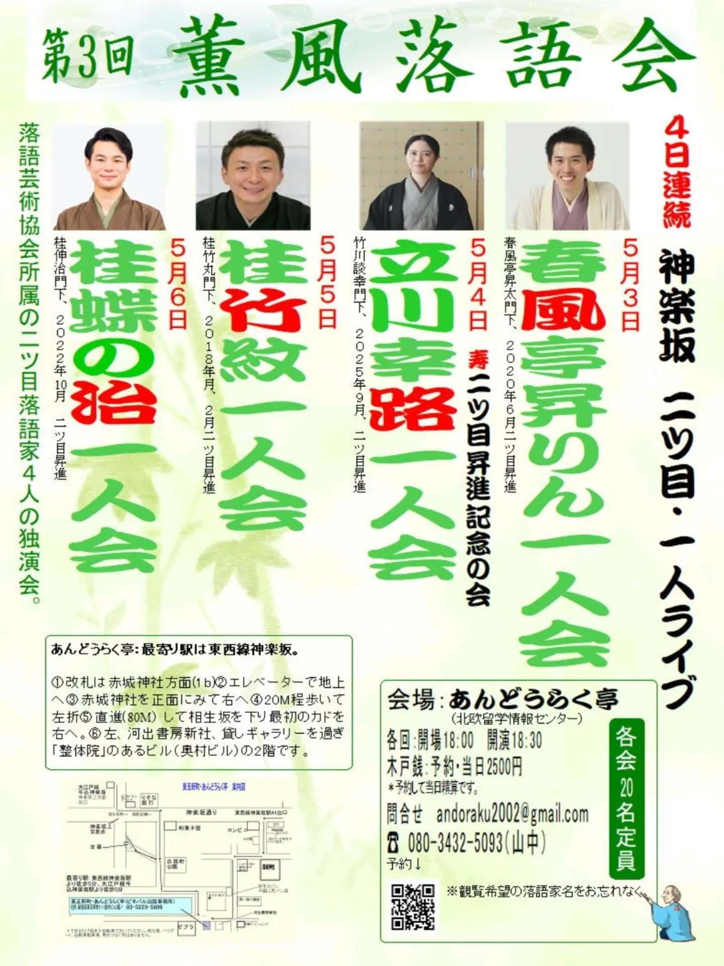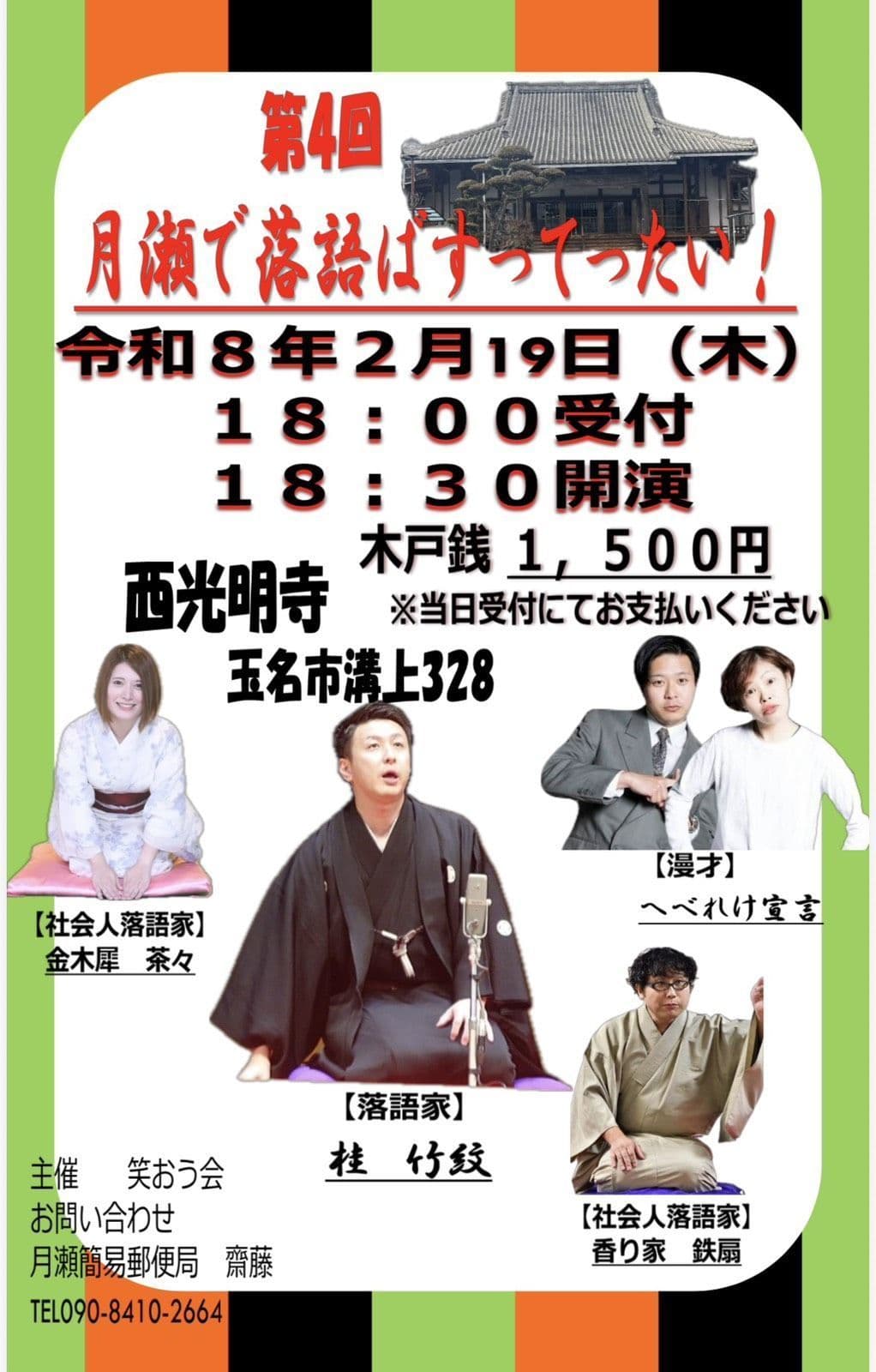出演 桂竹紋、三遊亭萬丸、三遊亭好青年、古今亭雛菊、三遊亭兼矢