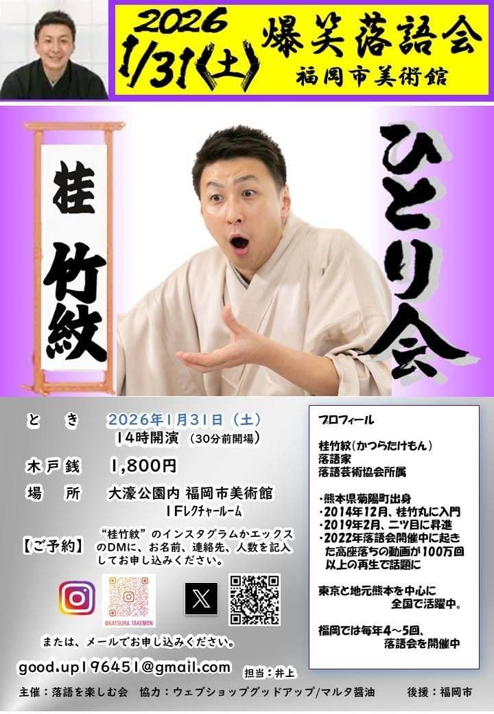 福岡でも落語会させて頂きます。お近くの皆様九州の皆様是非とも観に来て頂けましたら幸いです!!