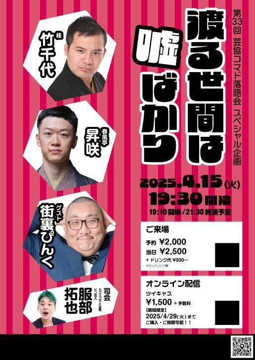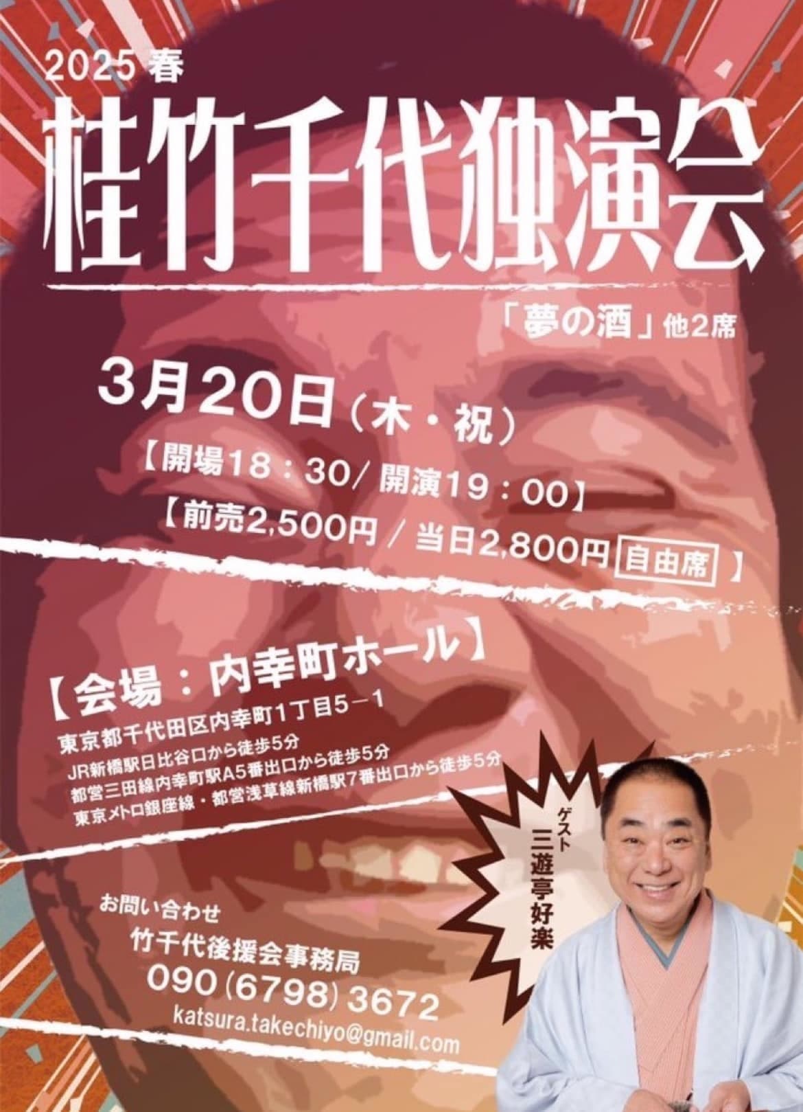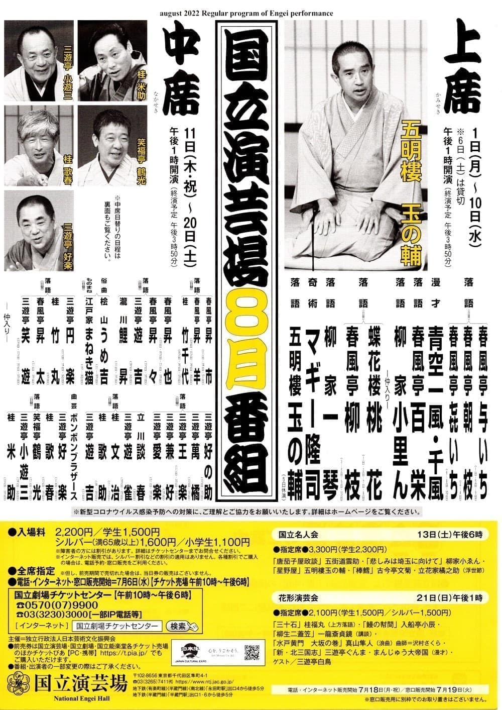 ※公演時間は20時00分~20時45分となります。(出典・落語芸術協会)