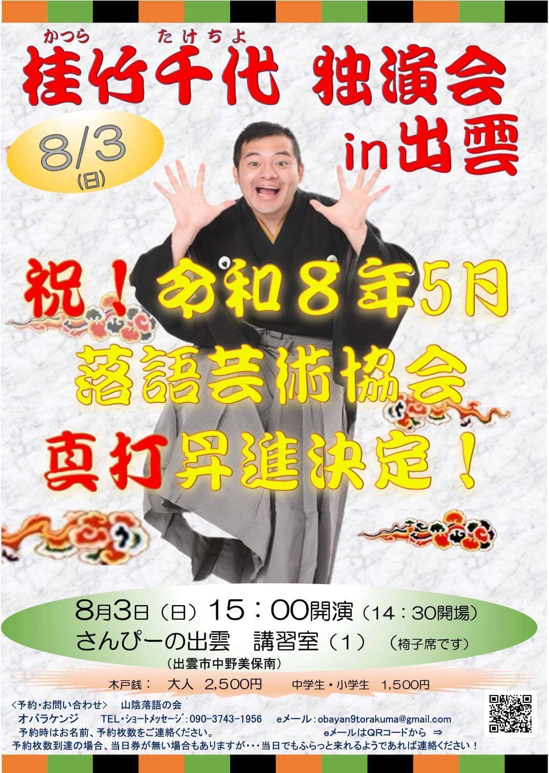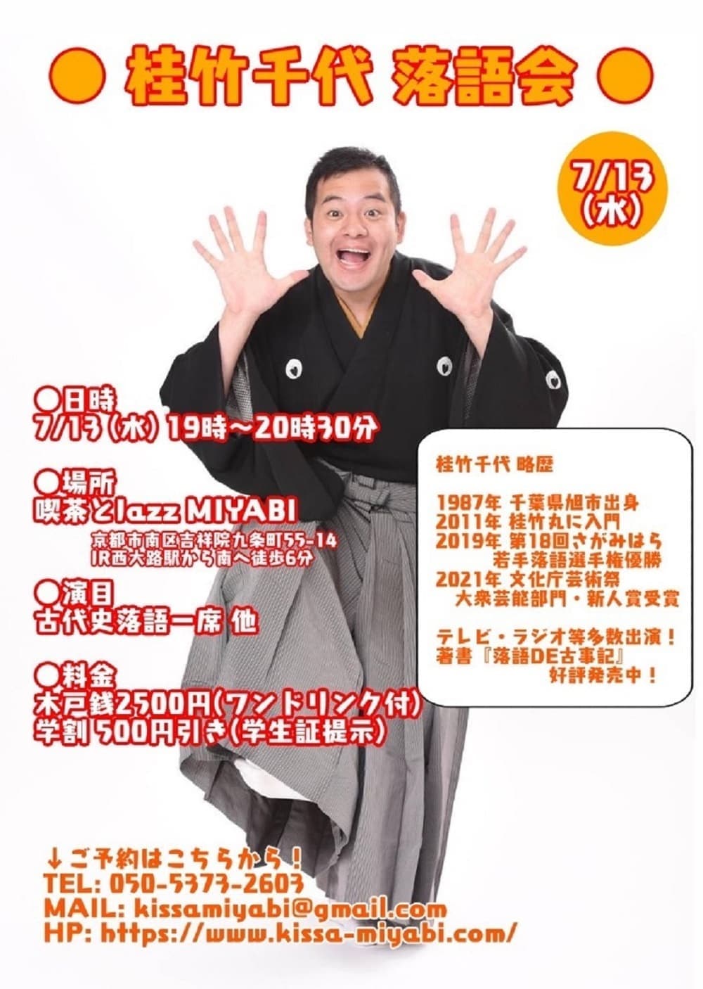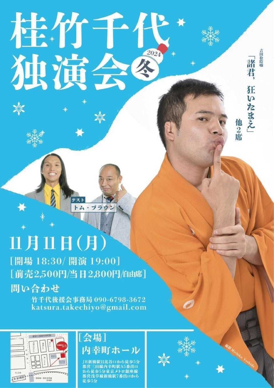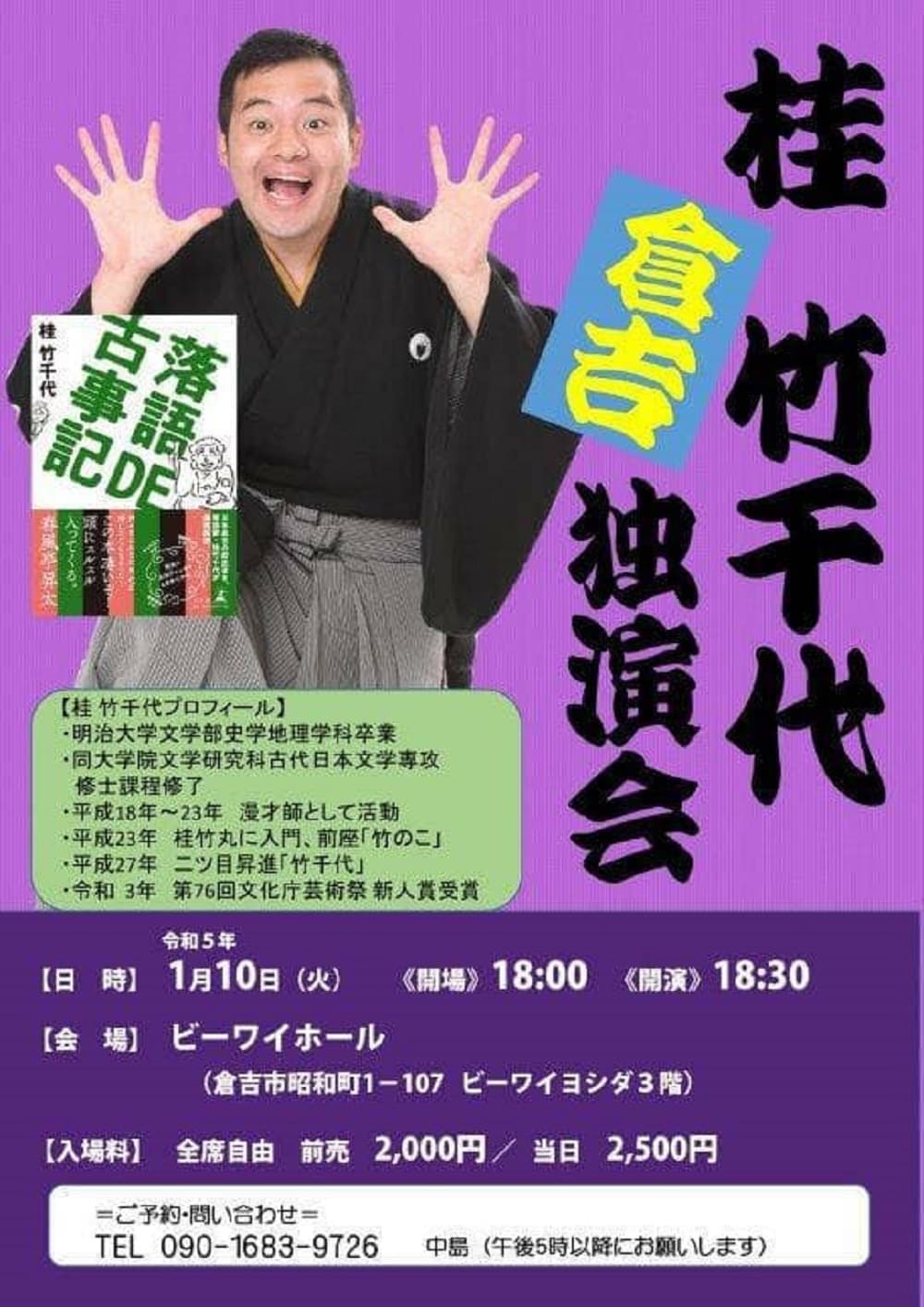柔道(弐段)、文学修士、学芸員、社会教育主事、温泉ソムリエなどを所持している。千葉県旭市観光大使。同じ落語芸術協会に所属する二つ目10人(他のメンバーは、瀧川鯉津、春風亭昇吾、昔昔亭喜太郎、瀧川鯉白、三遊亭遊子、桂鷹治、古今亭今いち、立川幸之進、笑福亭希光)で「芸協カデンツァ」というユニットを組んでいる。実質的に「成金」の後継にあたる。2021年12月9日、ご当地落語「赤倉温泉」で、現地滞在4日間で創り演じた新作落語『おさいど祭』が、『湯守の宿三之丞賞』を受賞。2021年、令和3年度(第76回)文化庁芸術祭の大衆芸能部門新人賞を受賞。芸歴10周年を迎えた11月9日に、東京・内幸町ホールで開いた「桂竹千代独演会2021冬」(「鮑のし」「古事記~完全版」を口演)が評価された。(出典:ウィキペディア)
