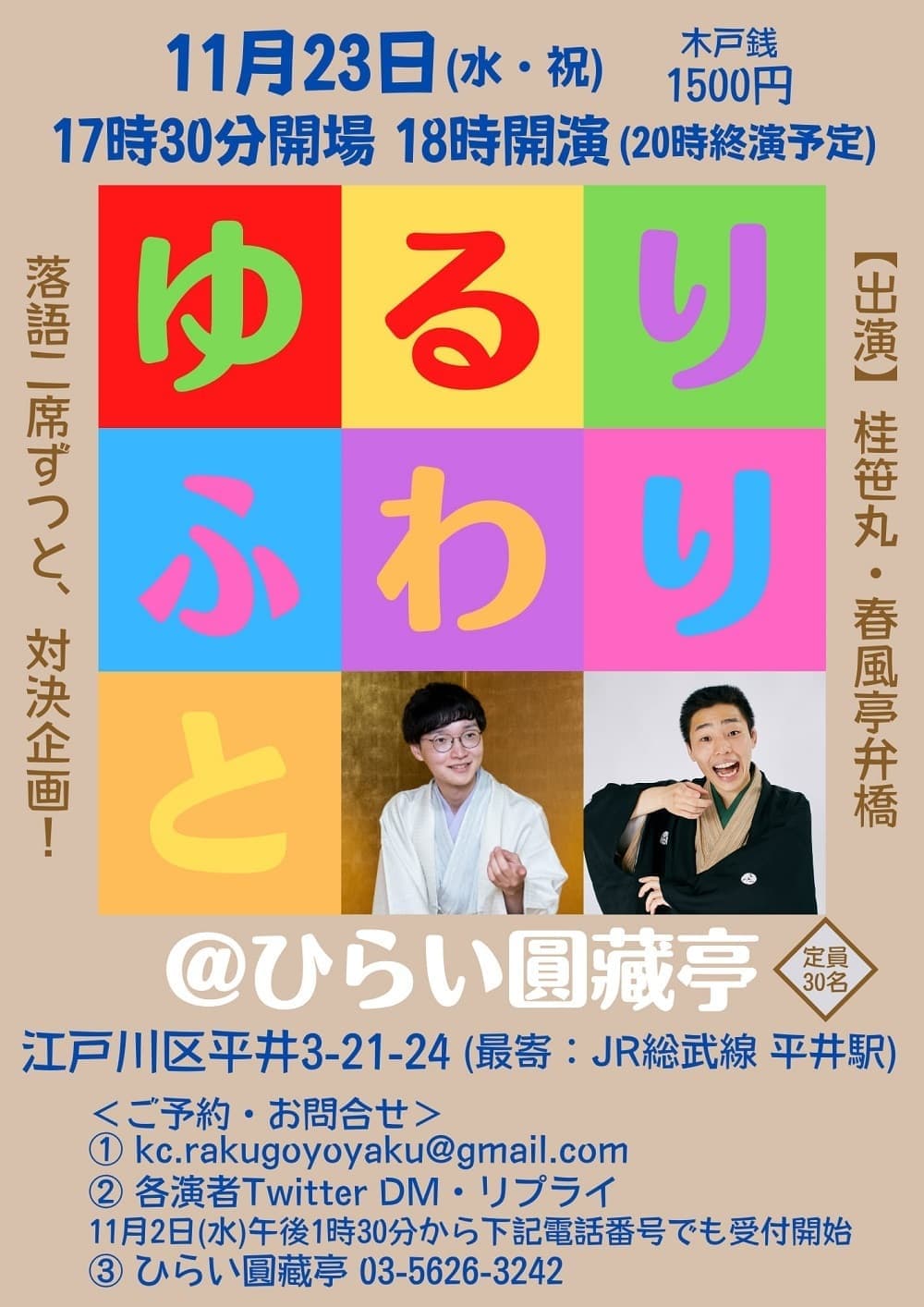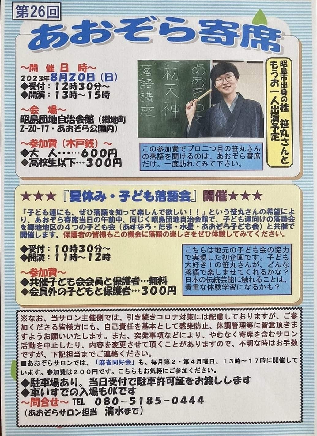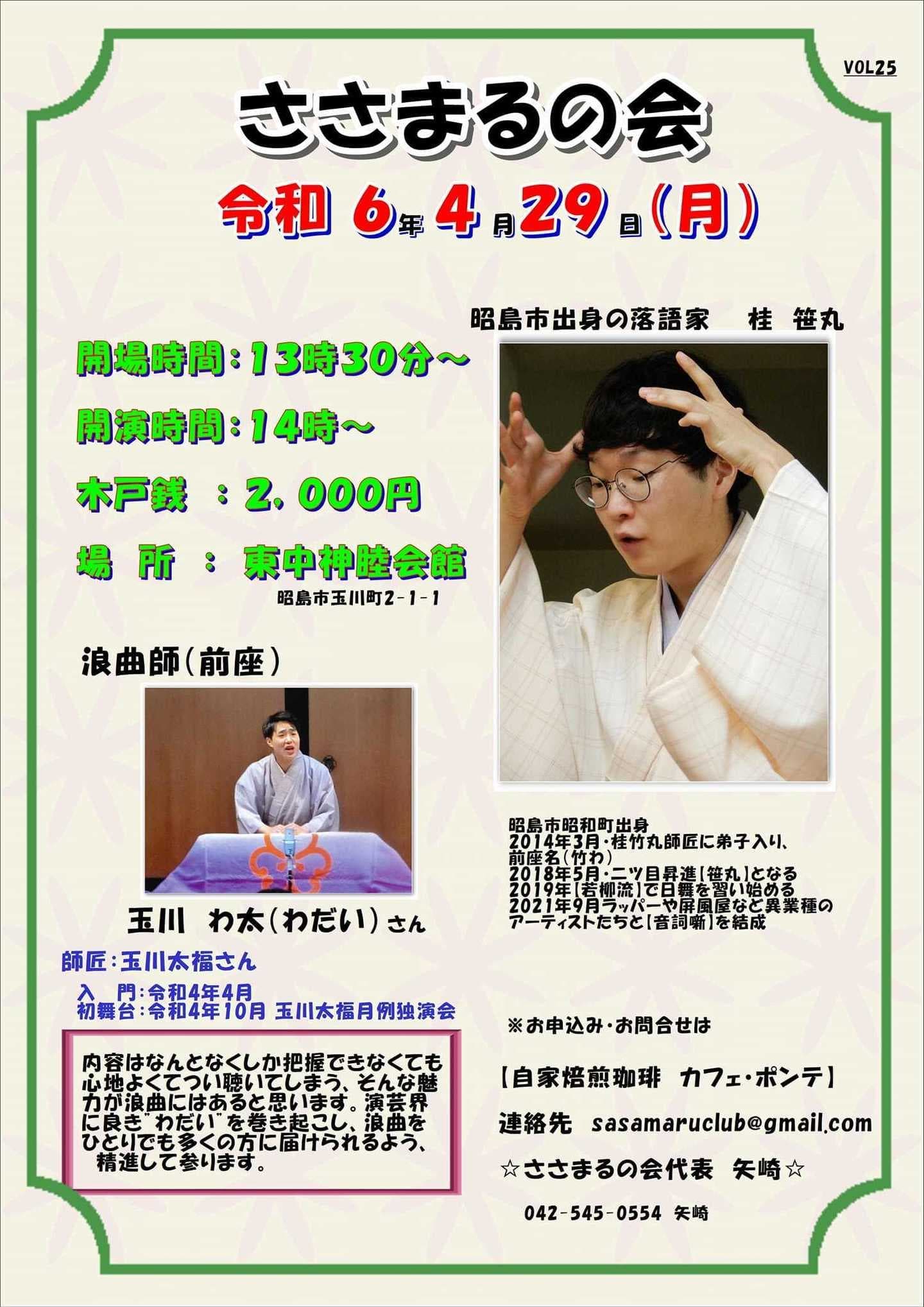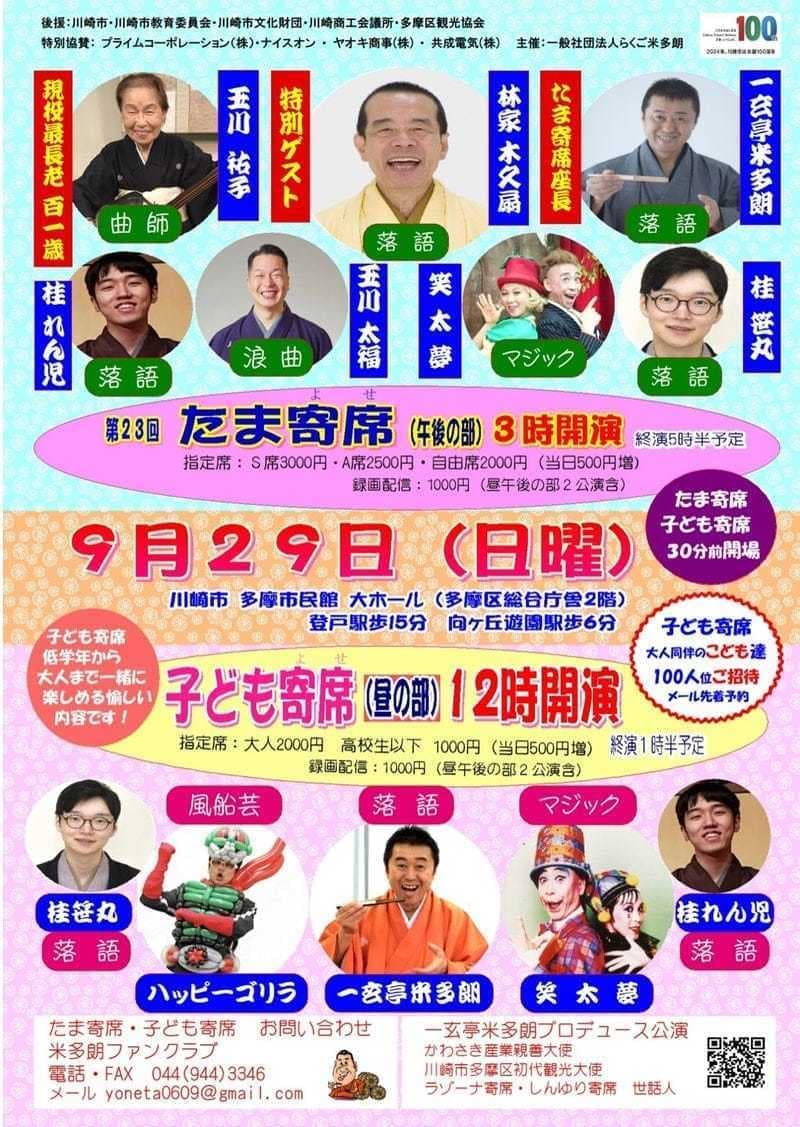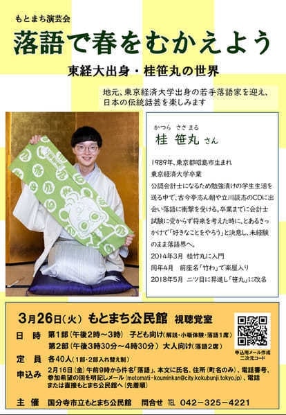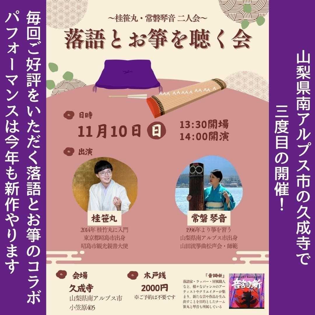 10月24日(月)19時から立川市のRISURUホールで師匠・竹丸との親子会やります!