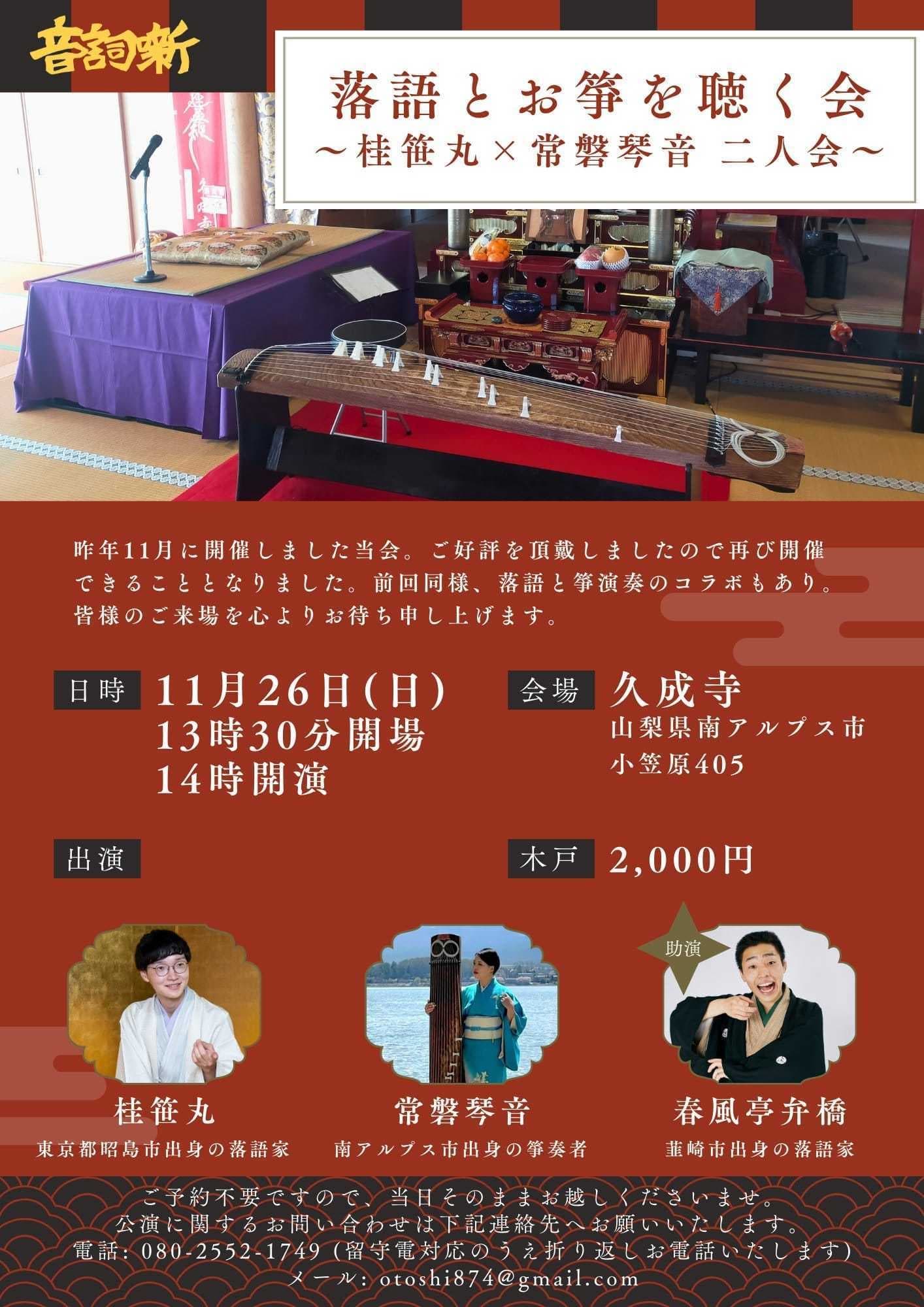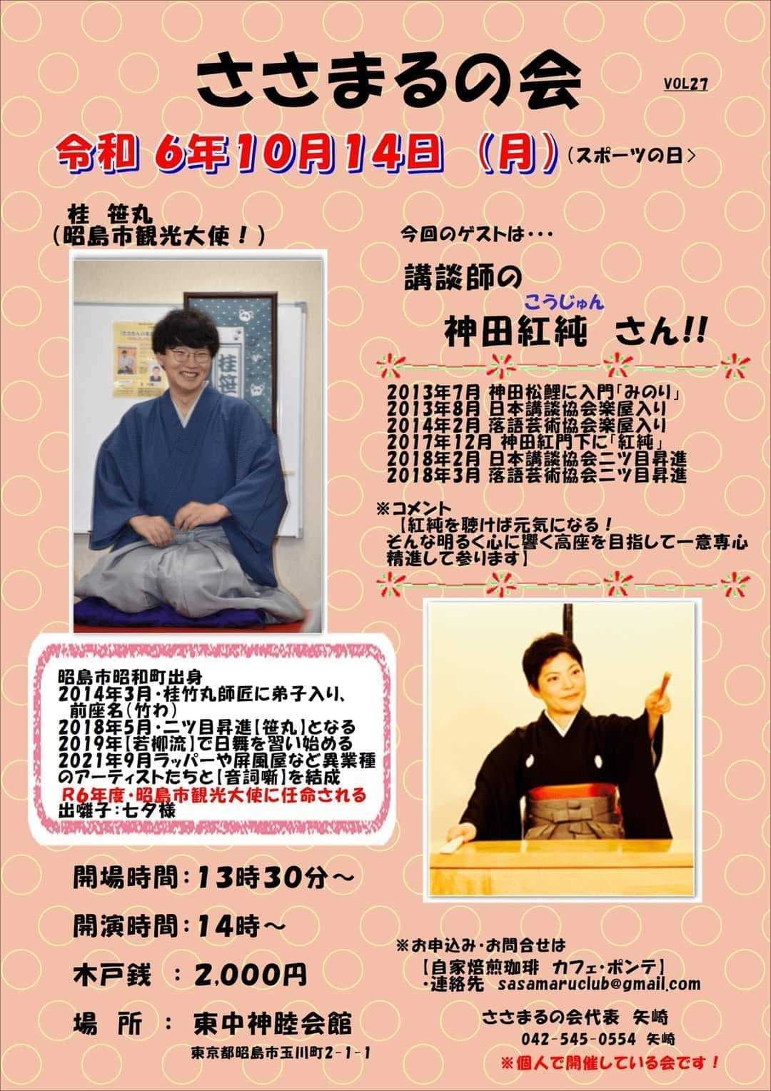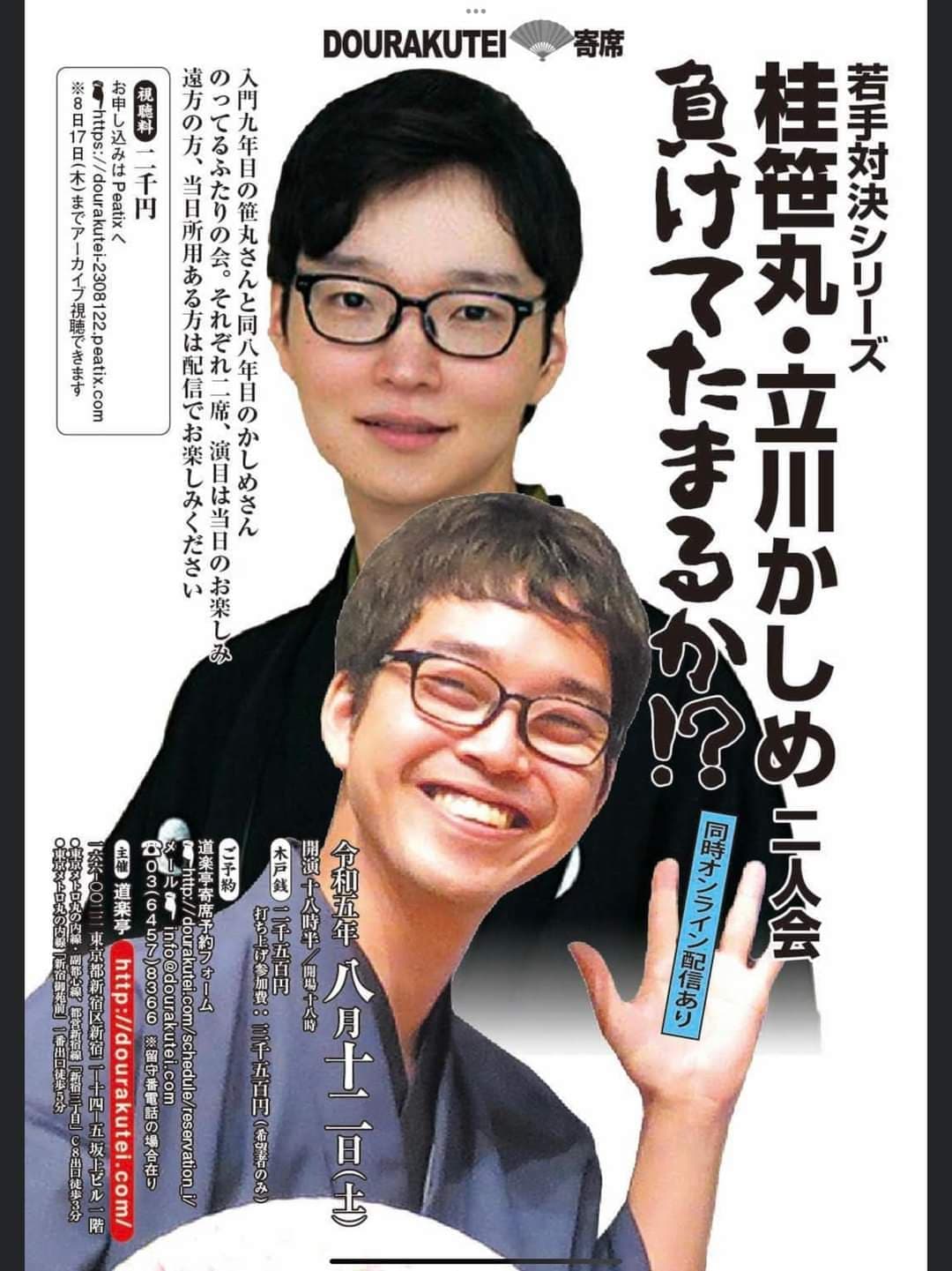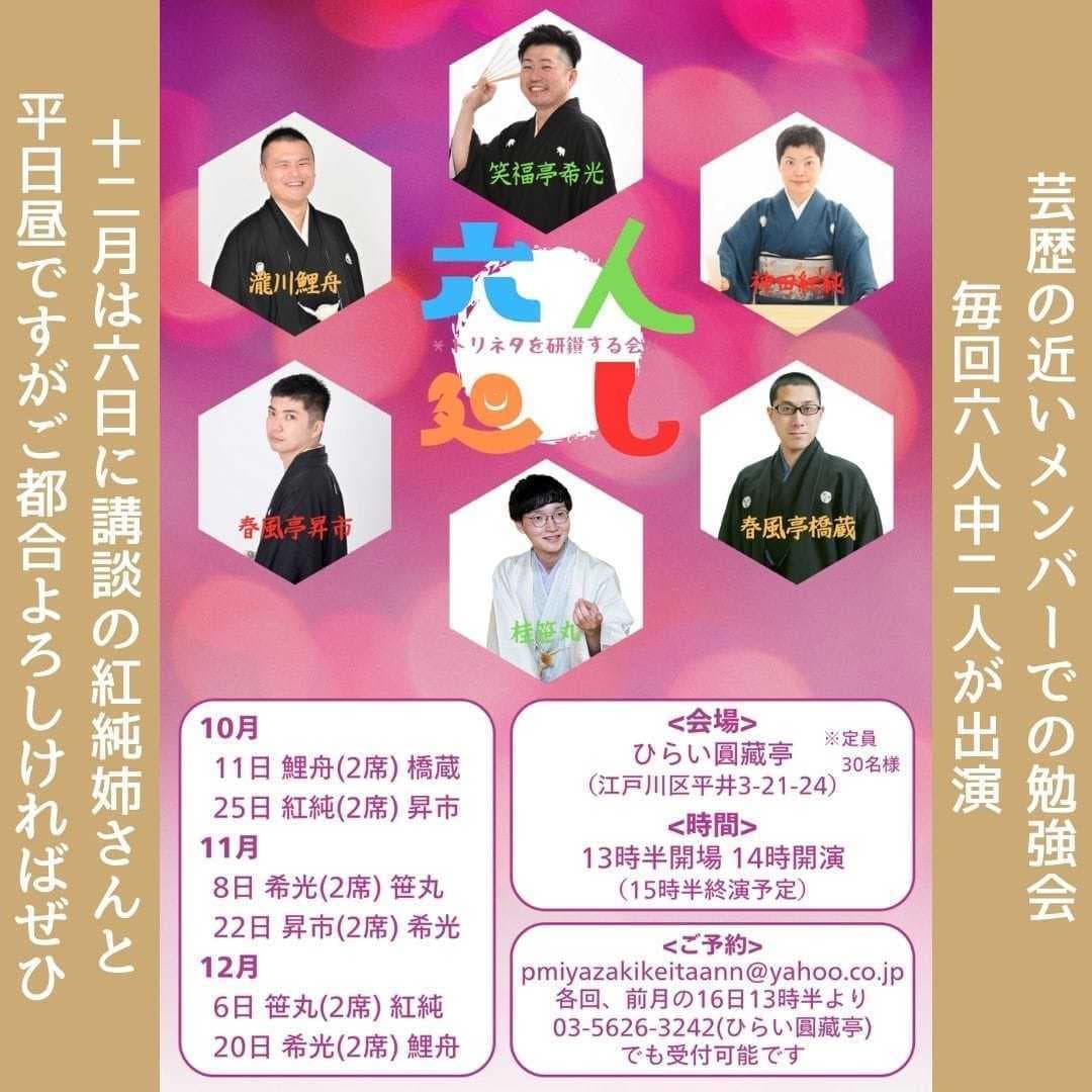 宮城県·仙台の皆様。花座にて一門会があります!是非とも観に来て下さい!桂竹丸一門会2022年12月15日(木)16日(金)【第1部】14:00 開演