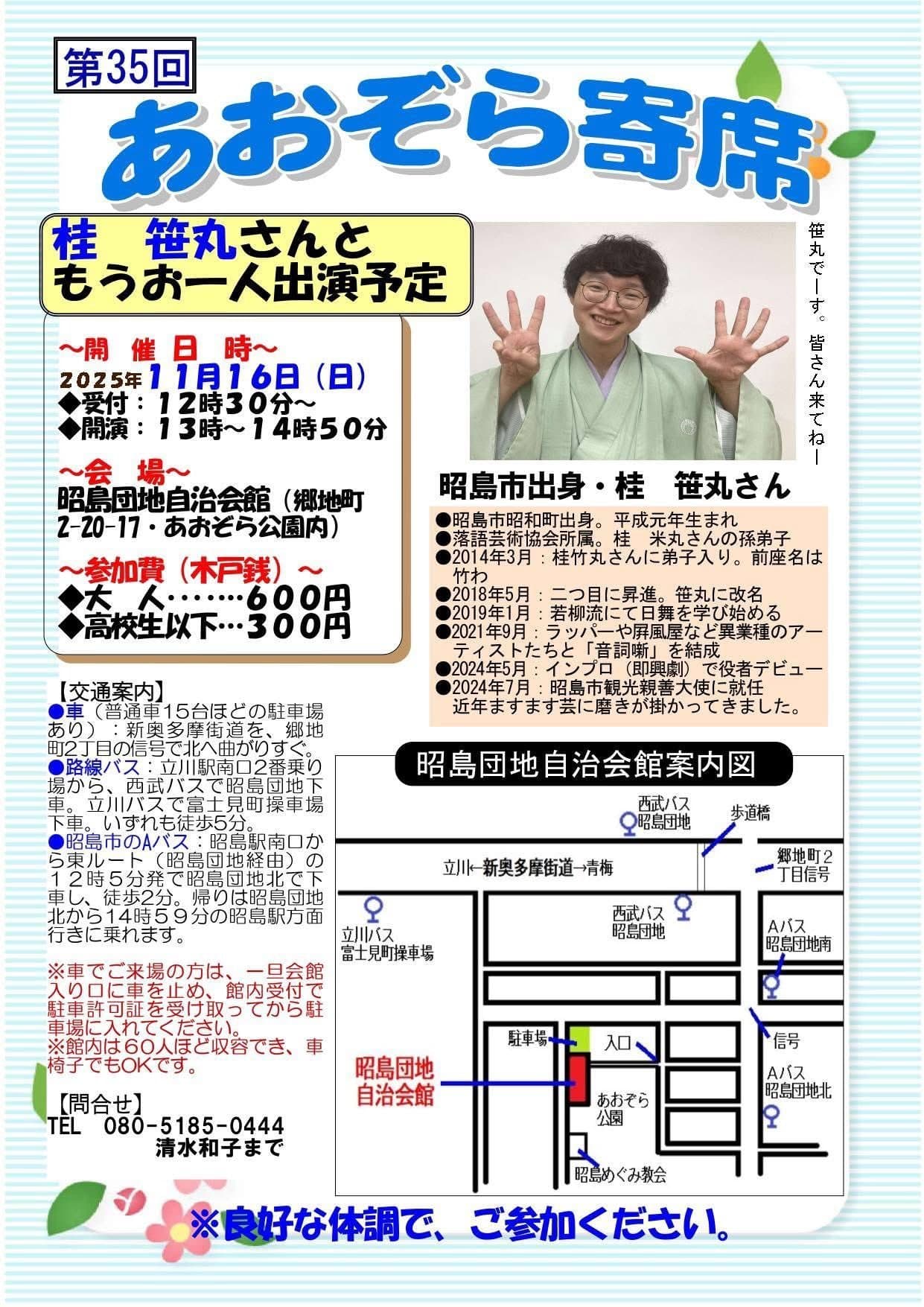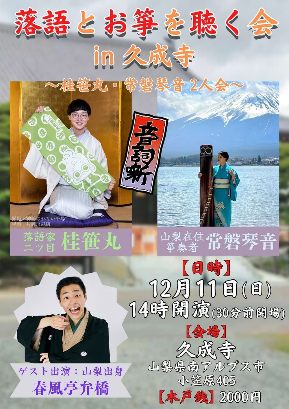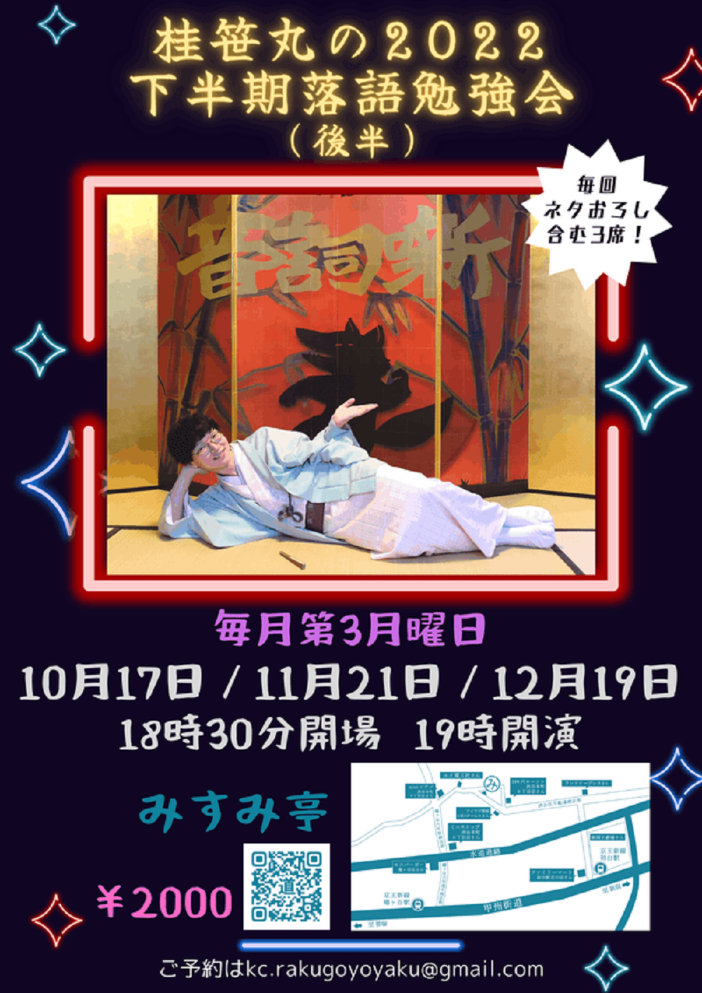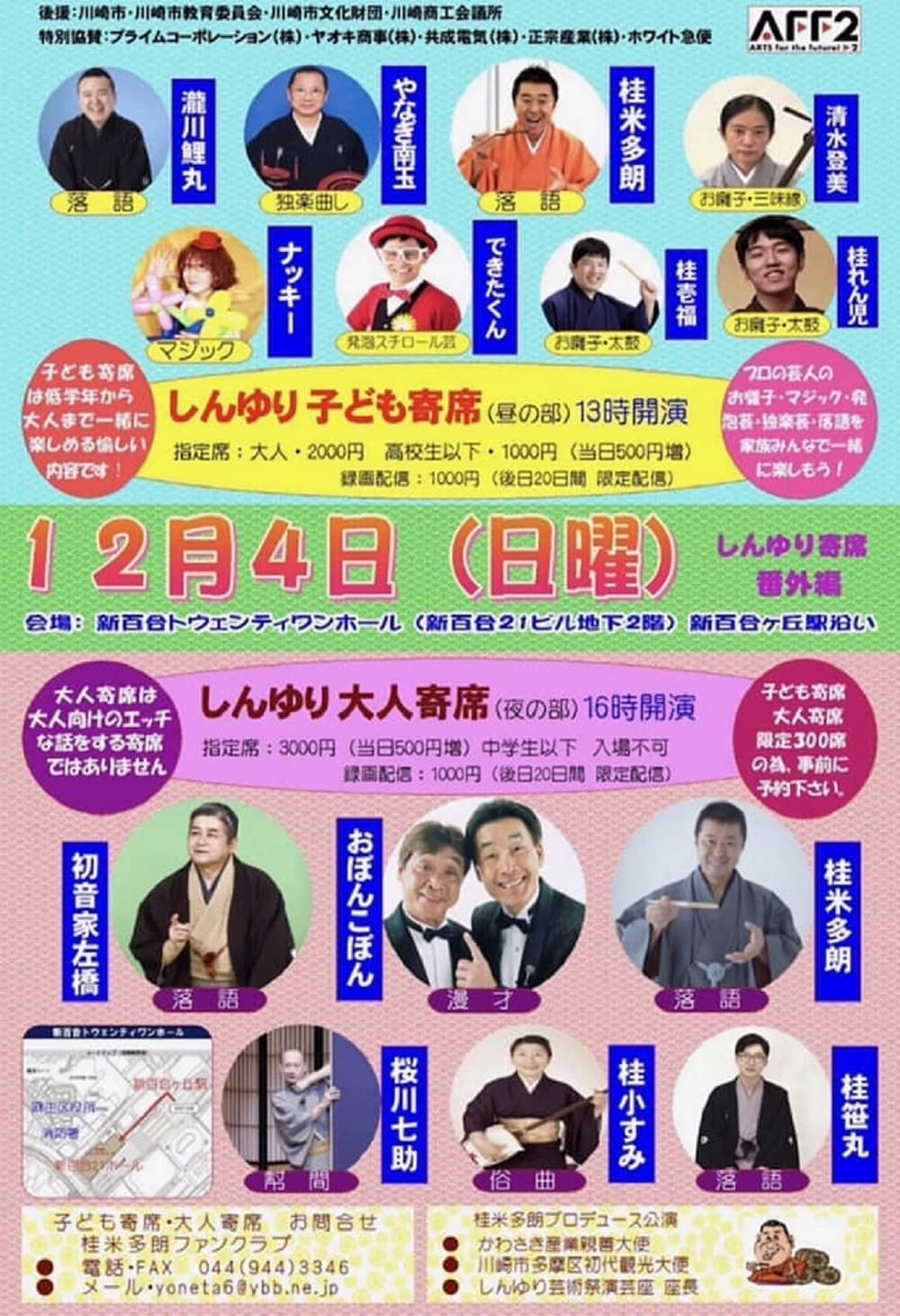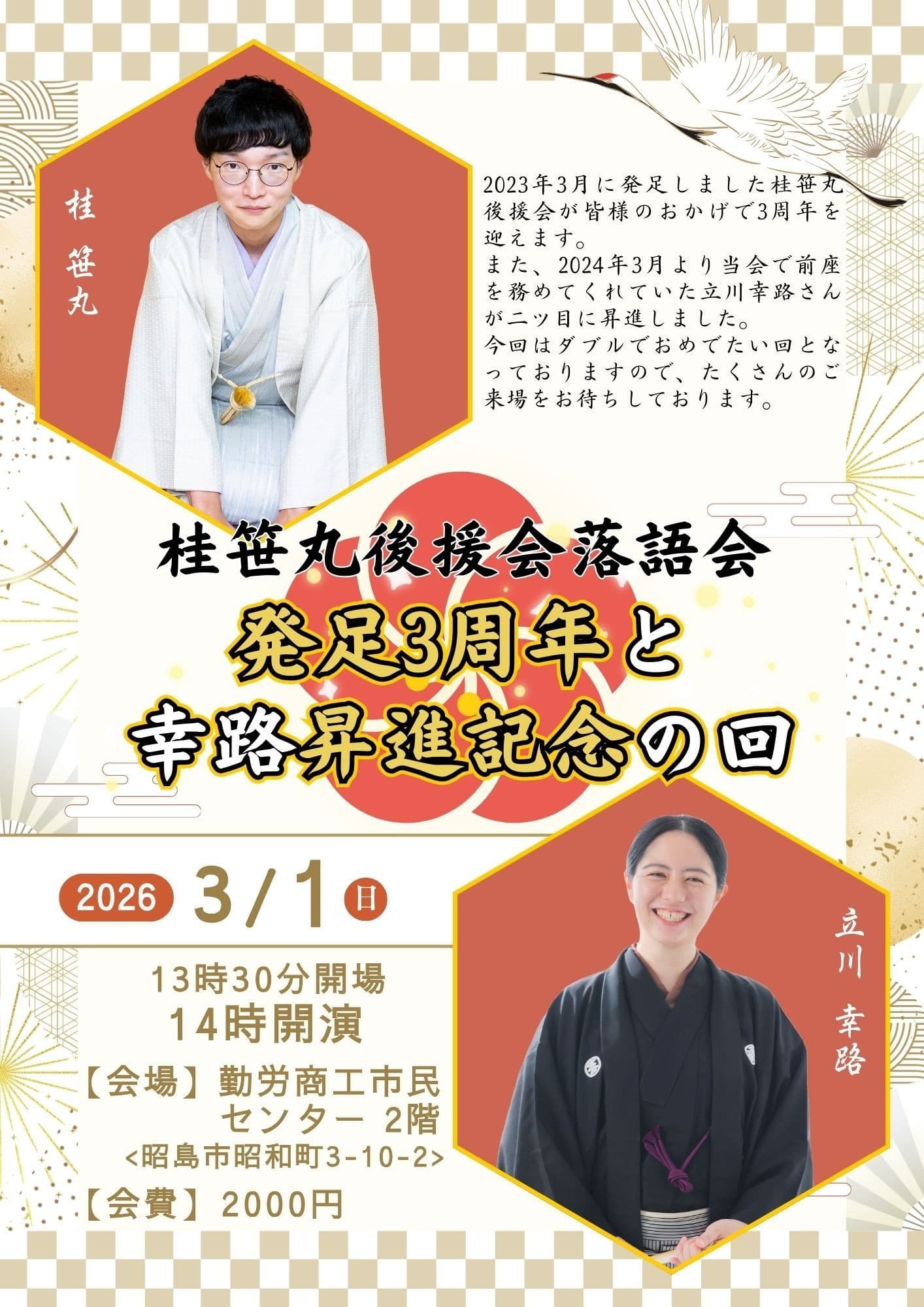 宮城県·仙台の皆様。花座にて一門会があります!是非とも観に来て下さい!桂竹丸一門会2022年12月15日(木)16日(金)【第1部】14:00 開演