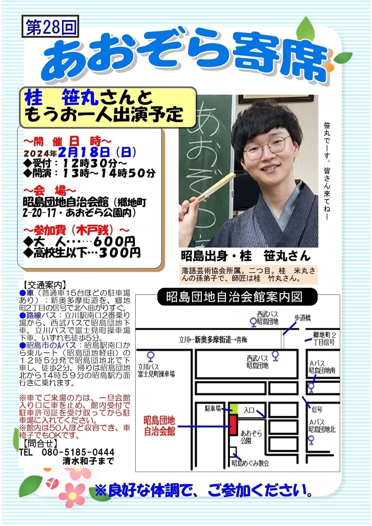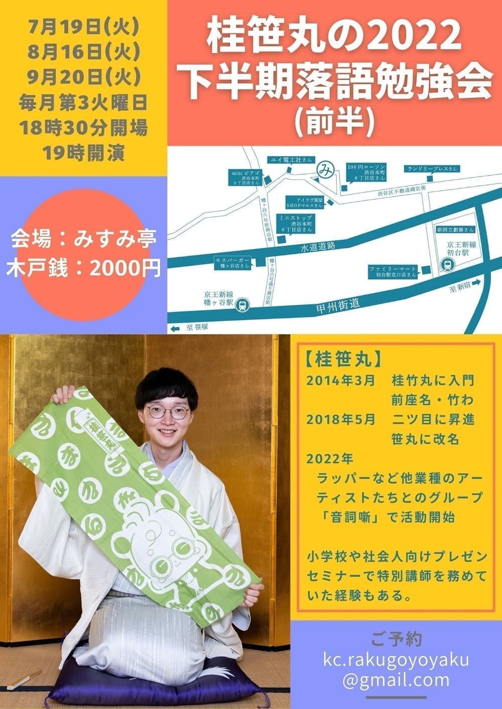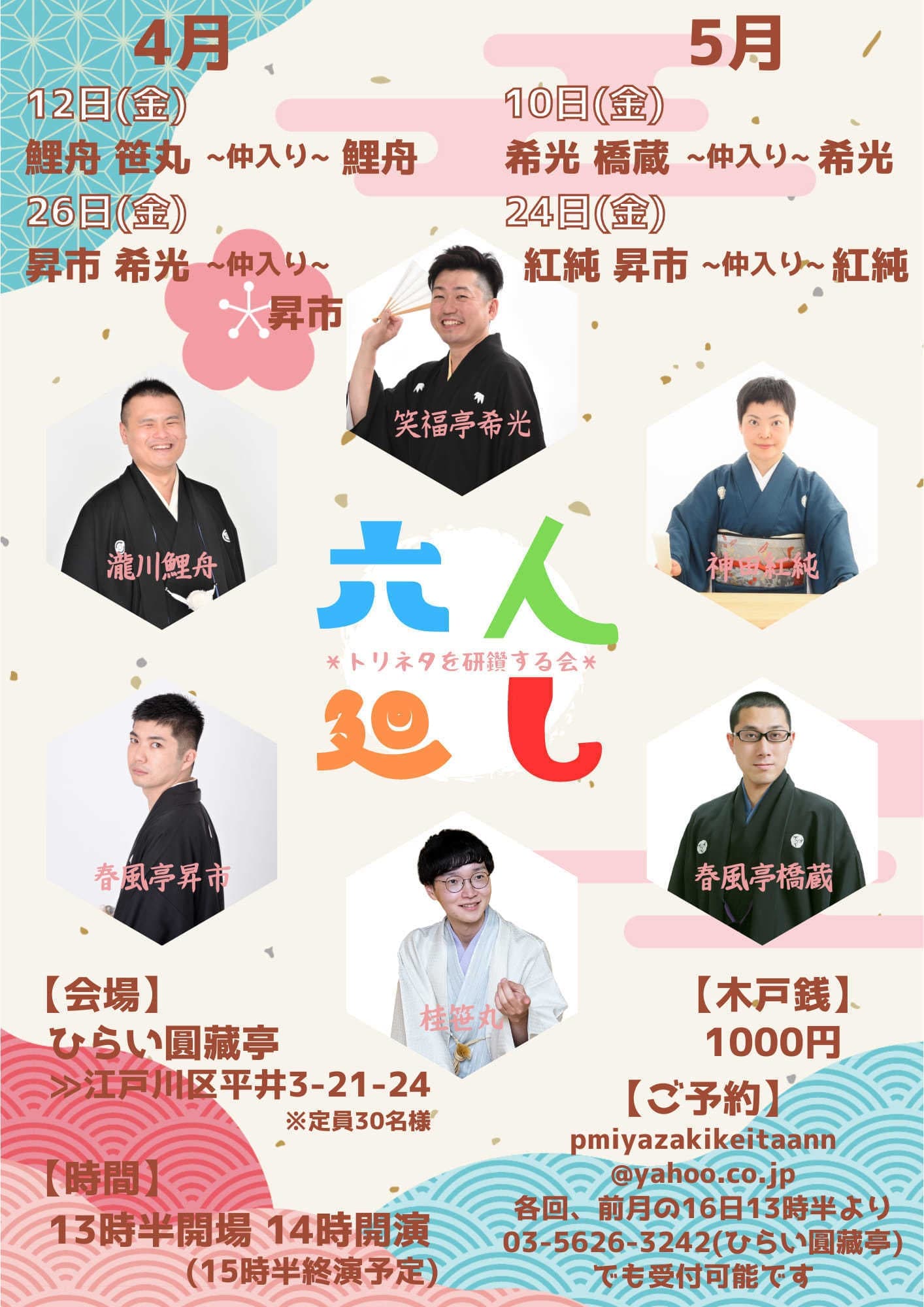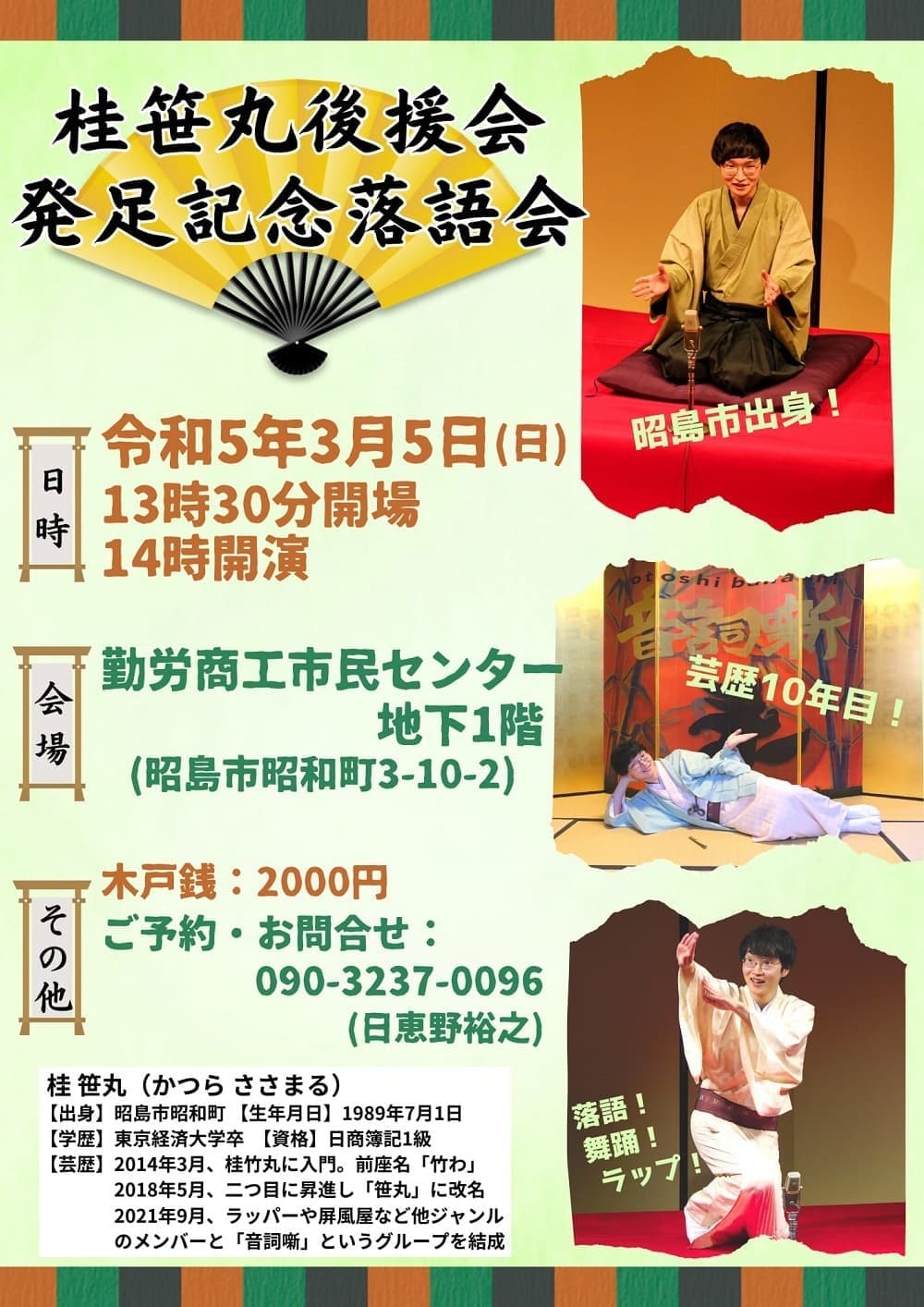 宮城県·仙台の皆様。花座にて一門会があります!是非とも観に来て下さい!桂竹丸一門会2022年12月15日(木)16日(金)【第1部】14:00 開演