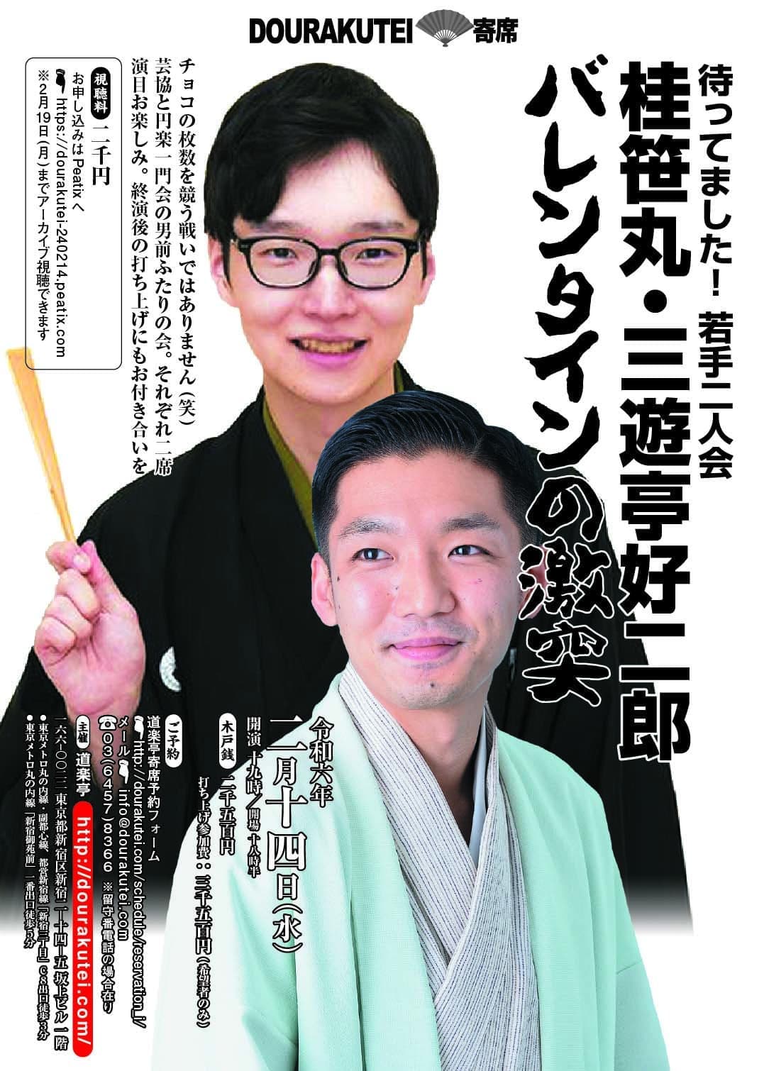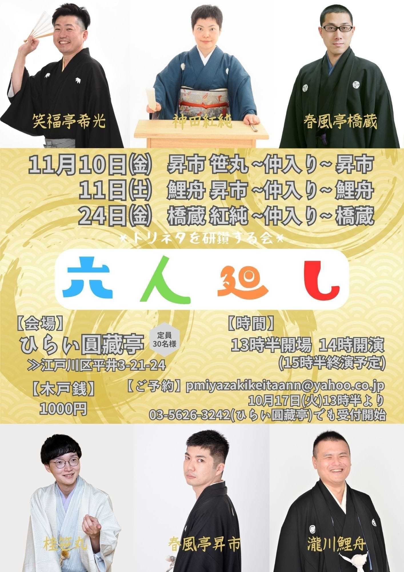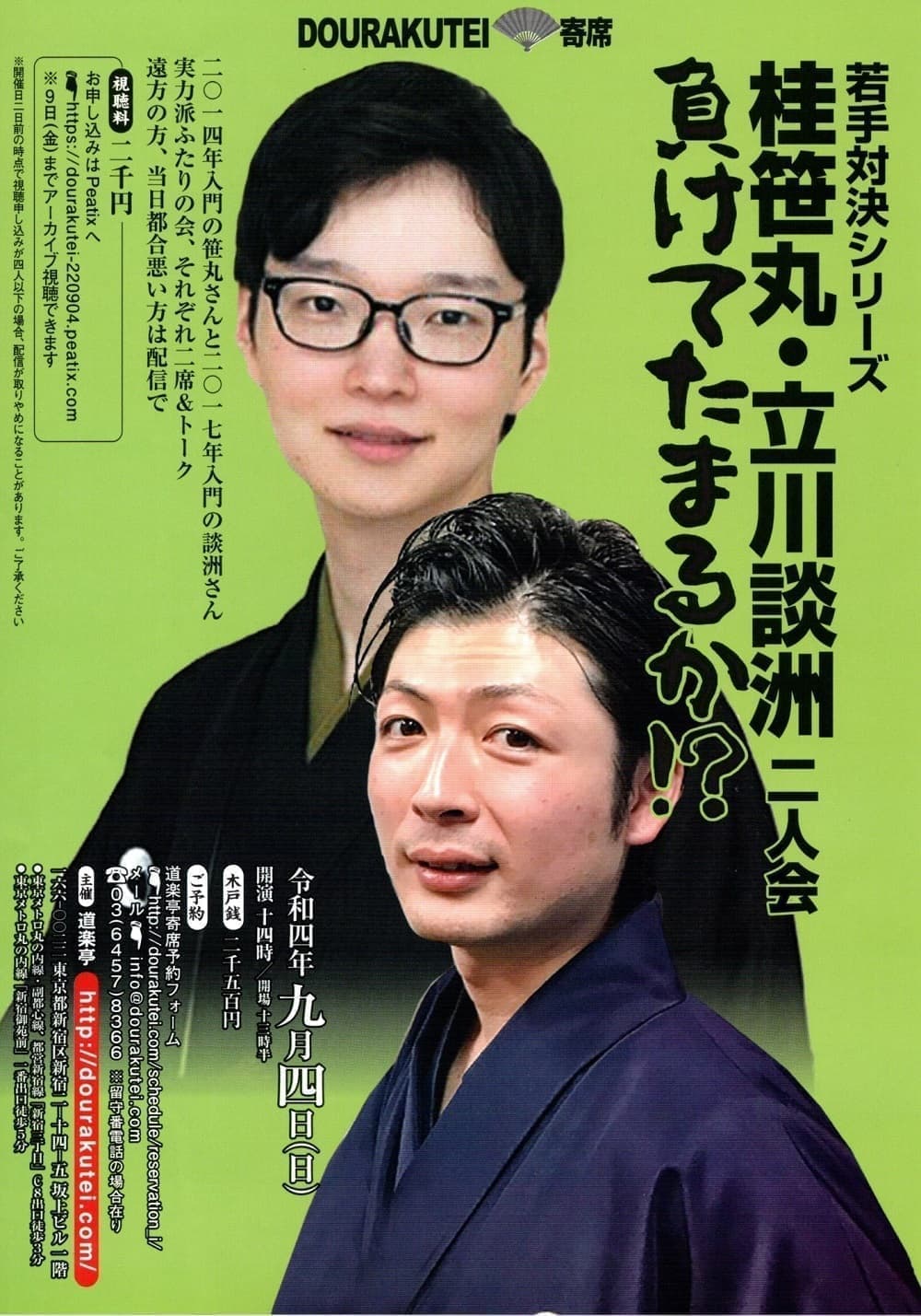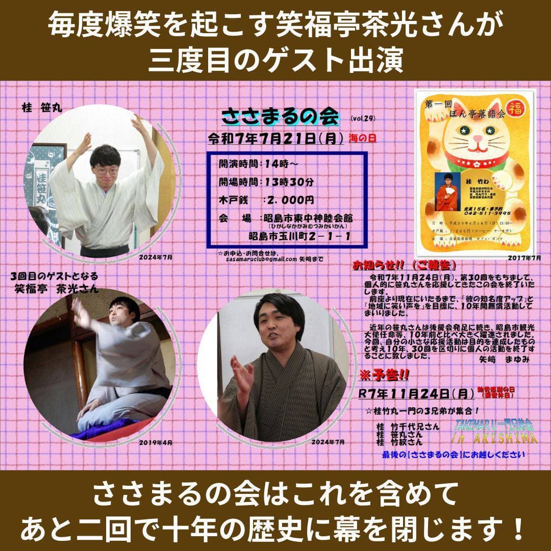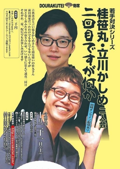 【第2部】18:30 開演16日(金)の第2部(18:30開演)は満席桂竹丸·桂竹千代·桂笹丸·桂竹紋 入場料一律3,000円※全席自由