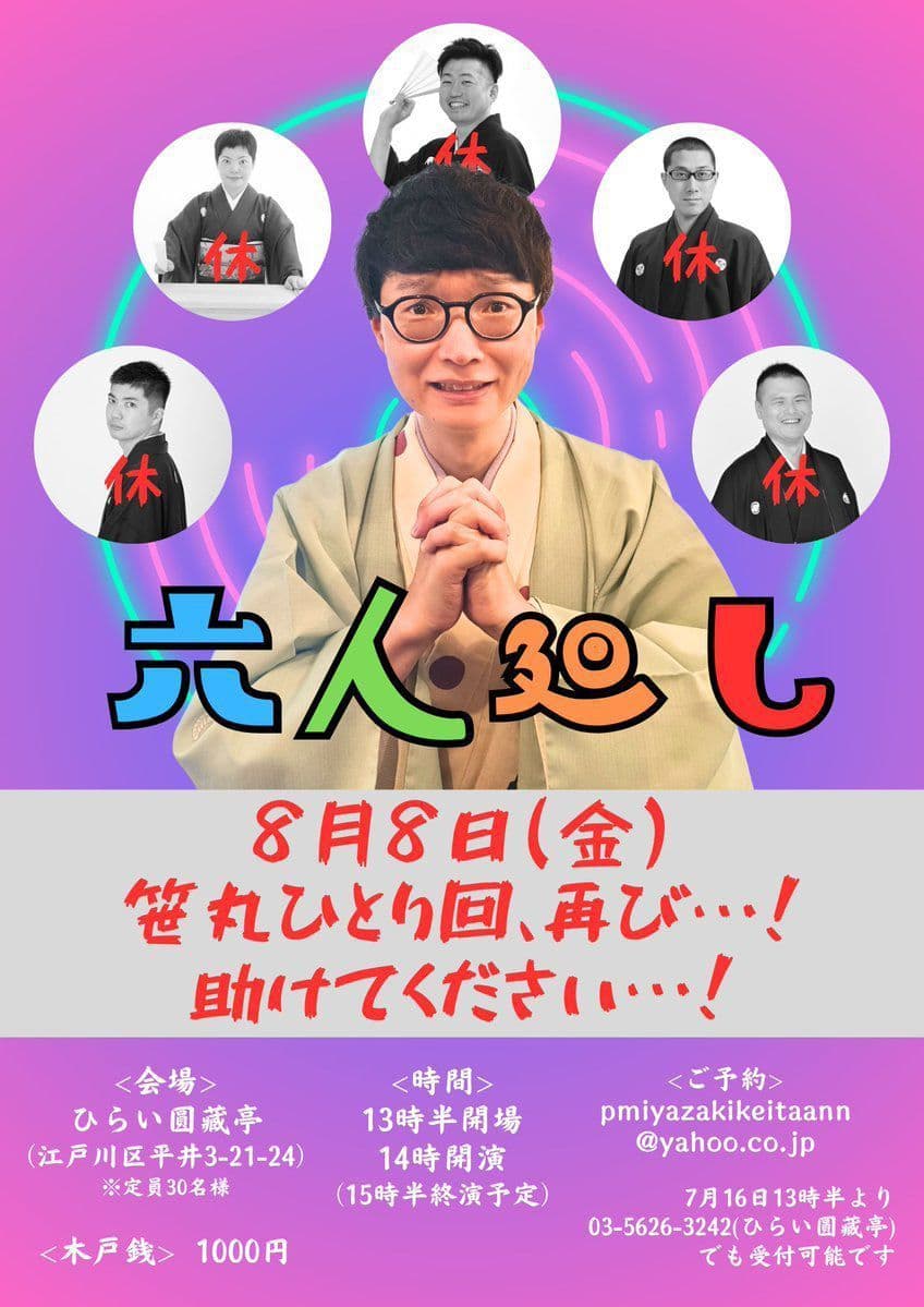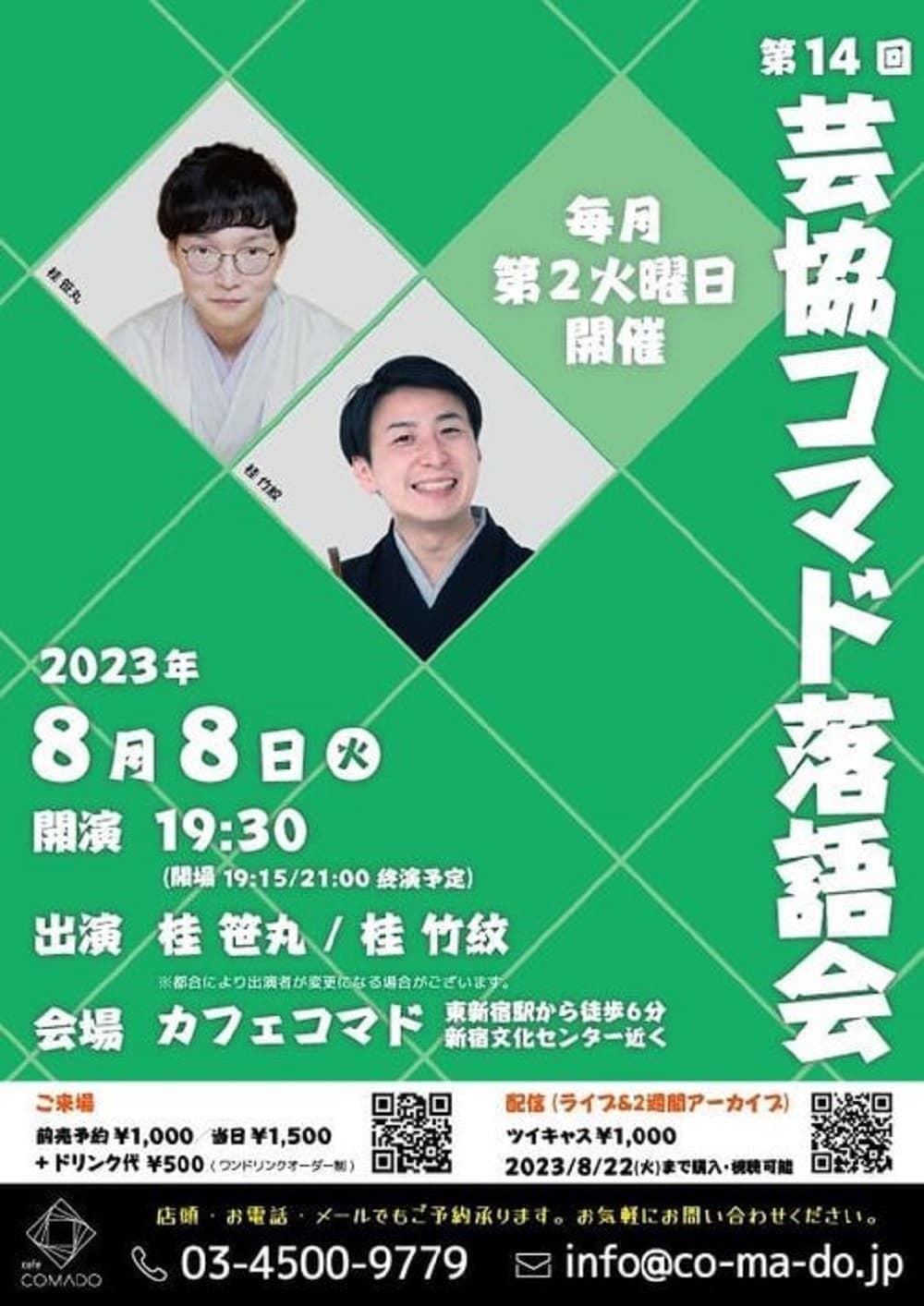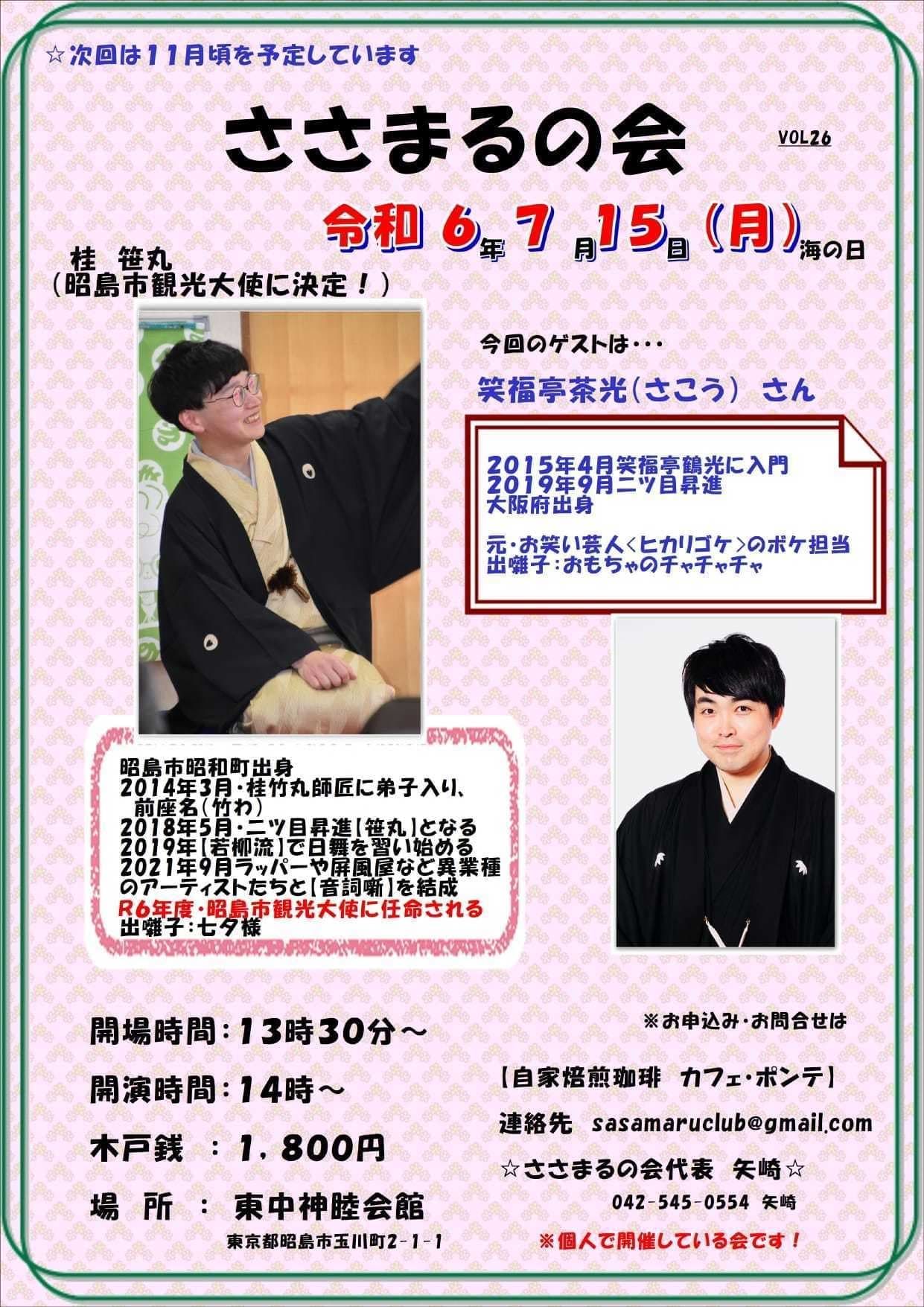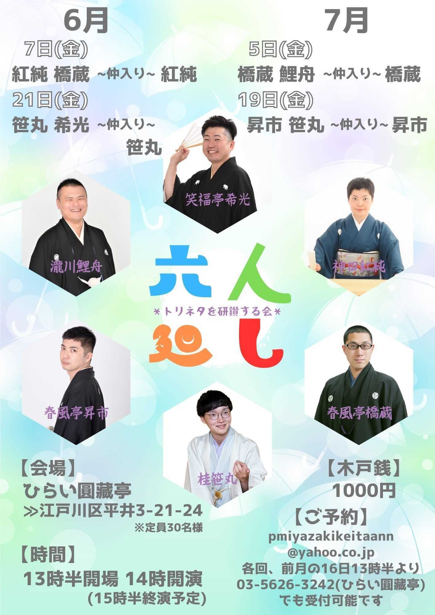 【第2部】18:30 開演16日(金)の第2部(18:30開演)は満席桂竹丸·桂竹千代·桂笹丸·桂竹紋 入場料一律3,000円※全席自由