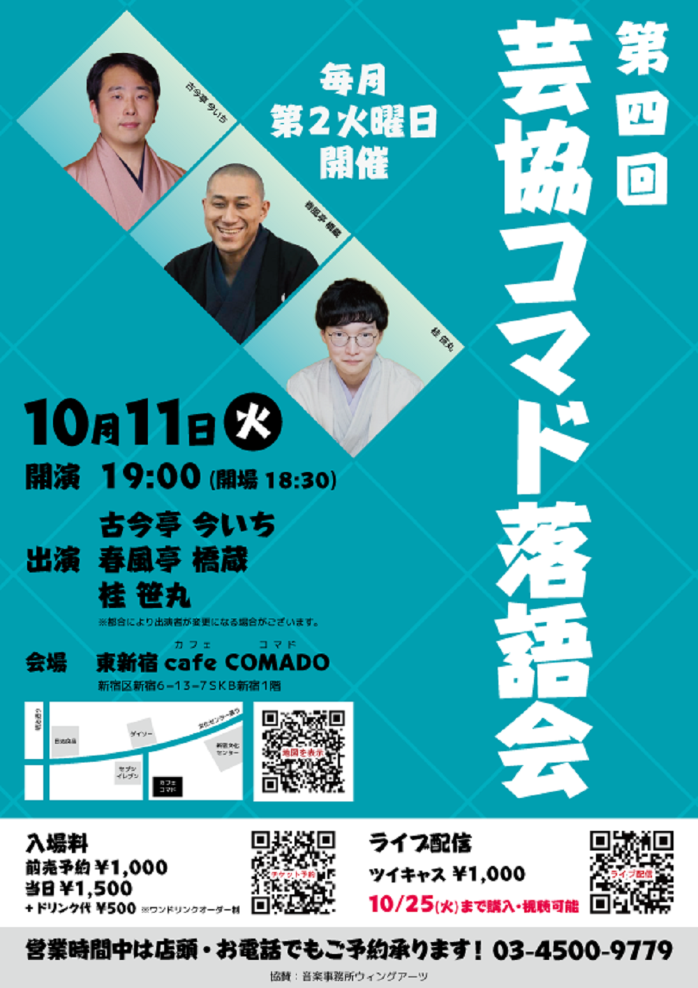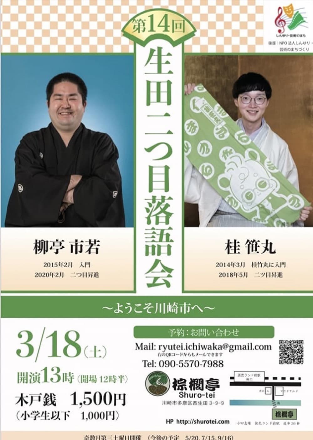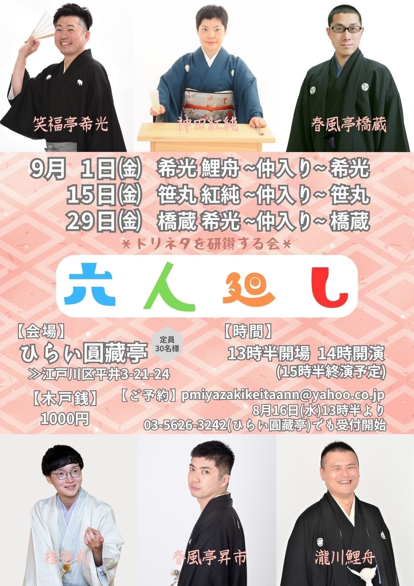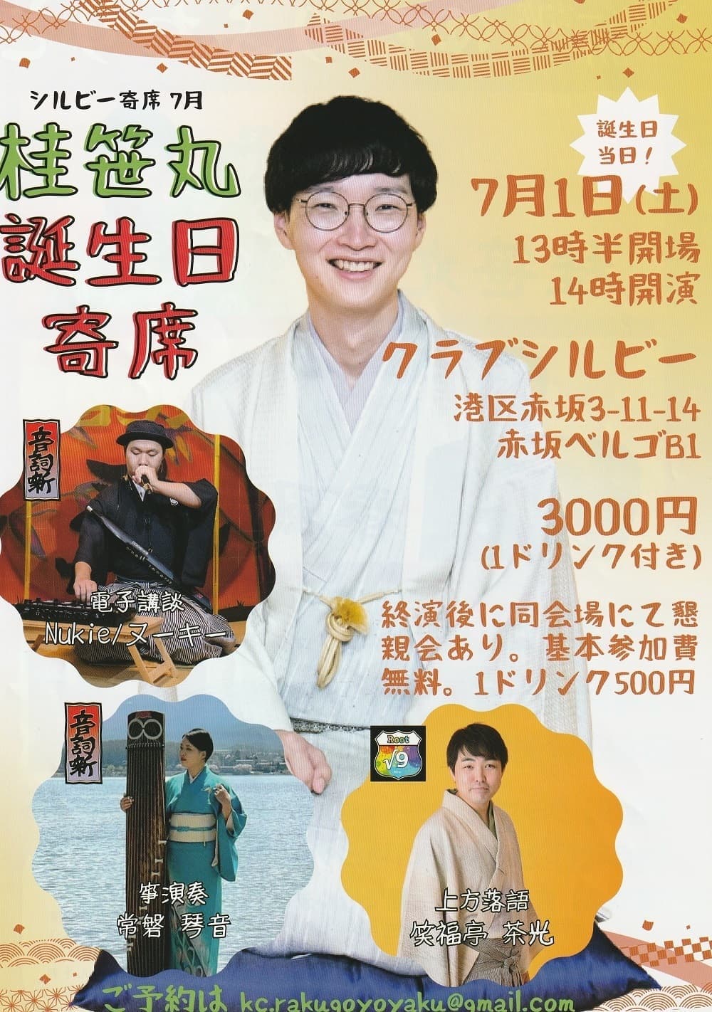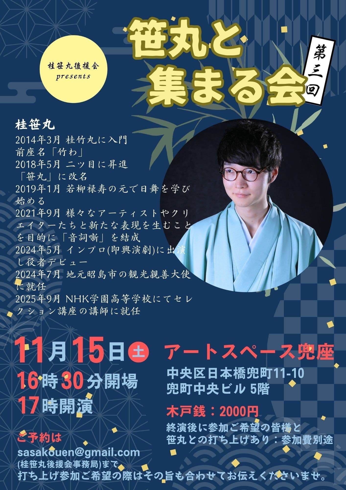 【第2部】18:30 開演16日(金)の第2部(18:30開演)は満席桂竹丸·桂竹千代·桂笹丸·桂竹紋 入場料一律3,000円※全席自由