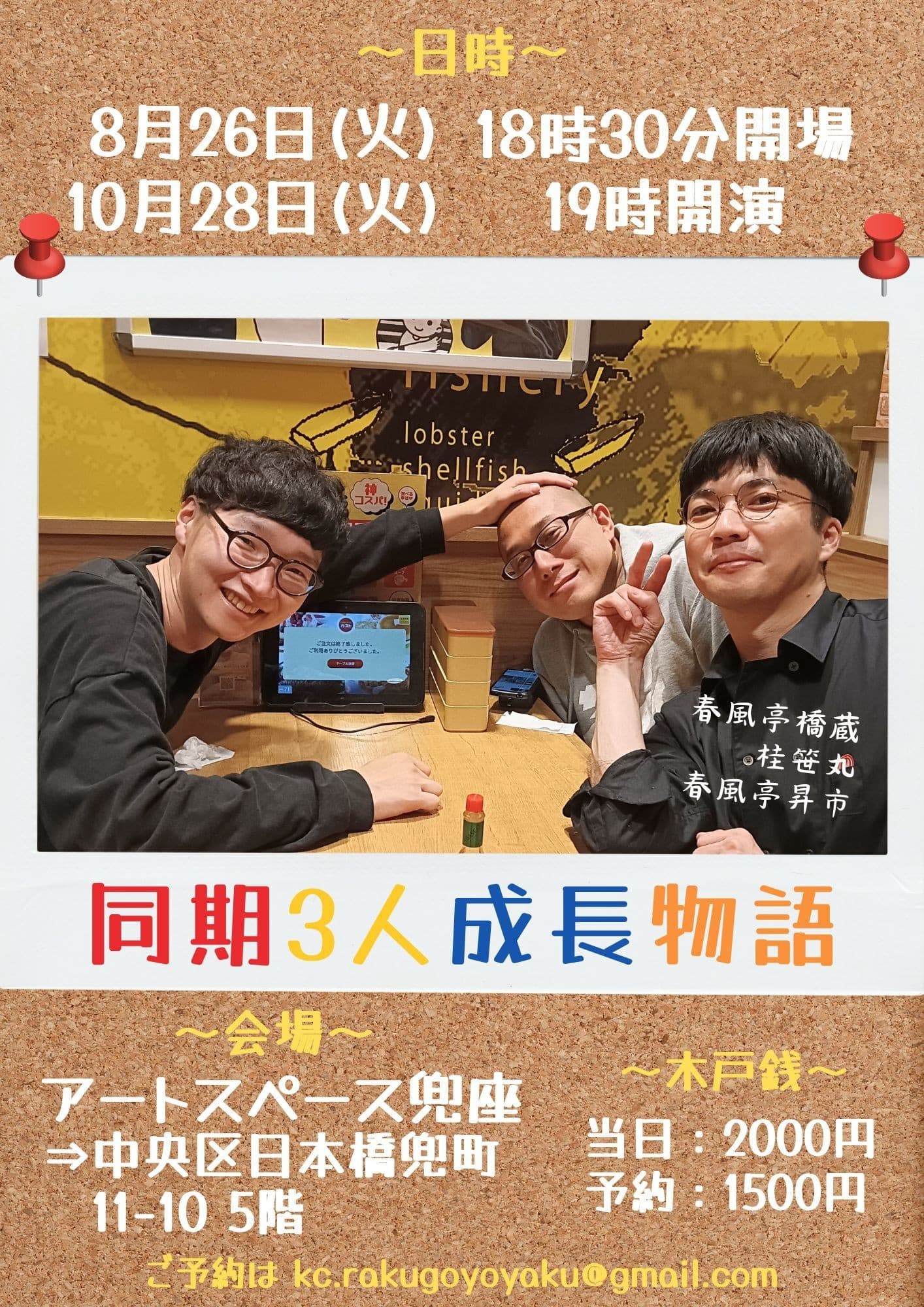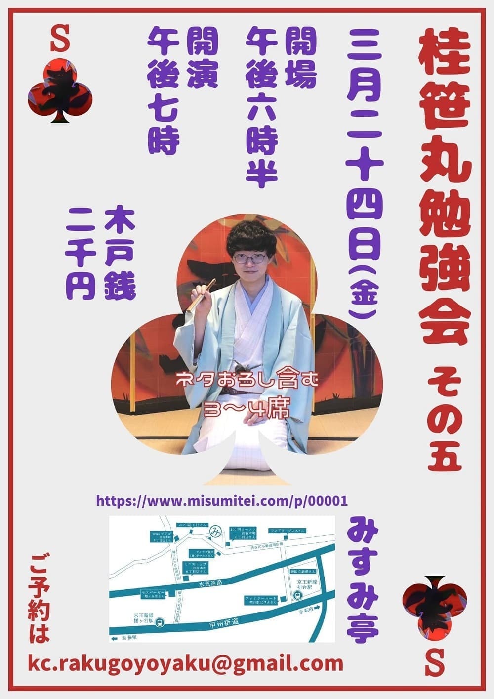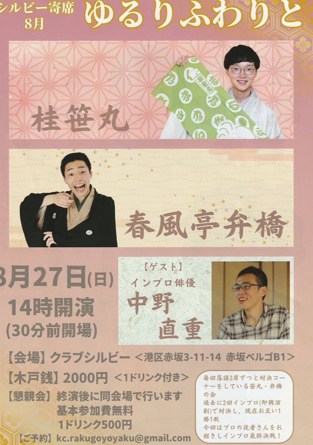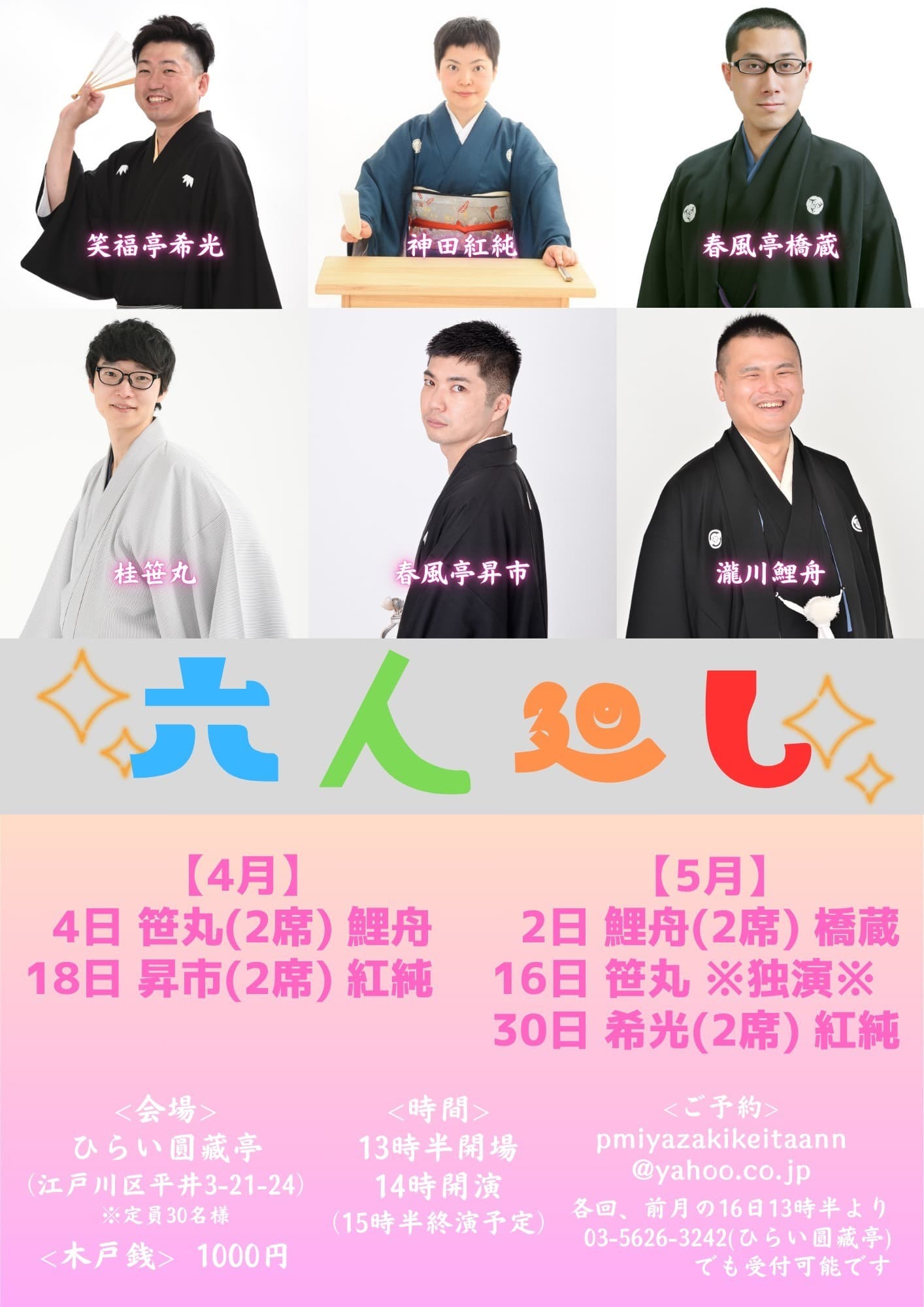 【第2部】18:30 開演16日(金)の第2部(18:30開演)は満席桂竹丸·桂竹千代·桂笹丸·桂竹紋 入場料一律3,000円※全席自由