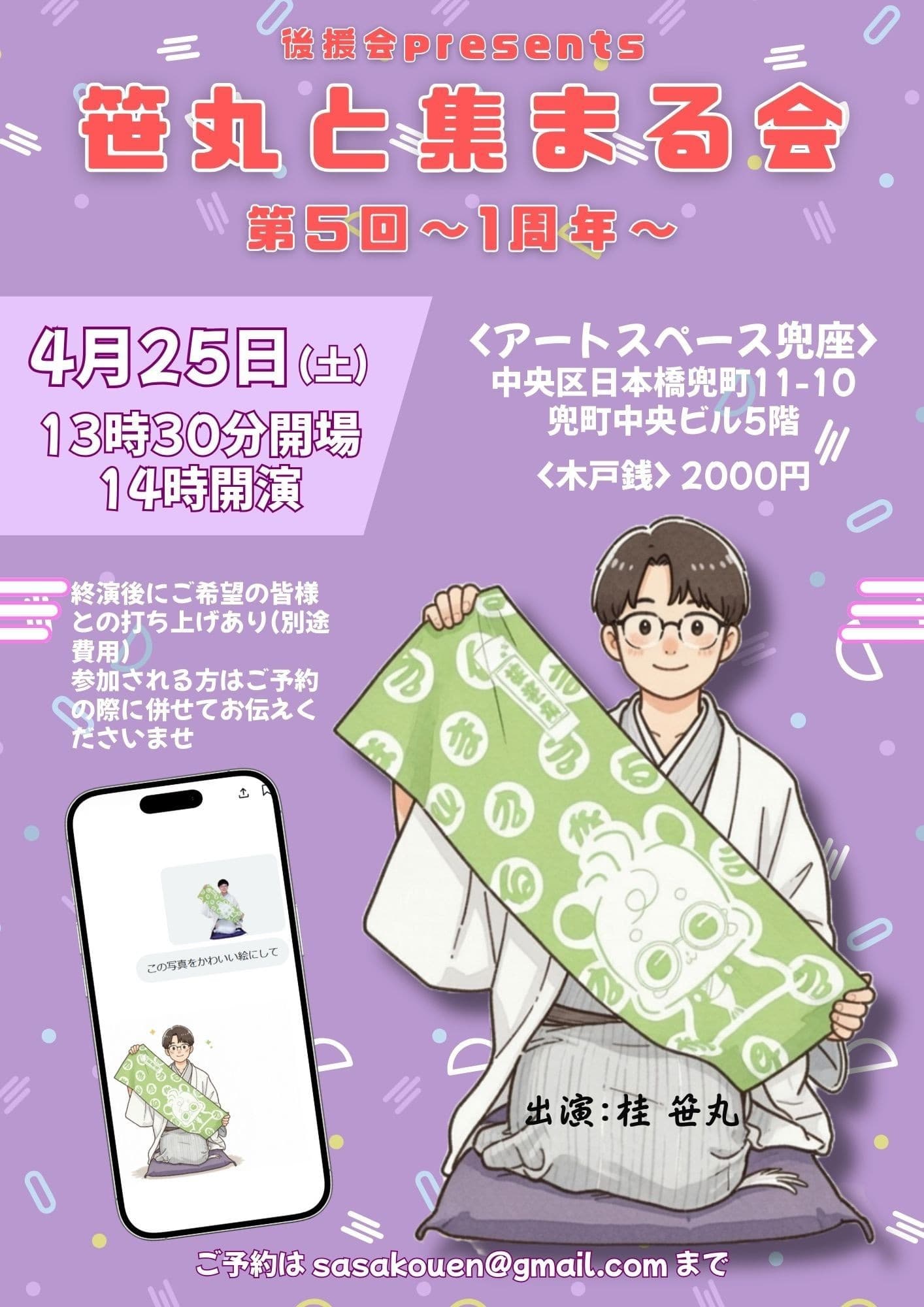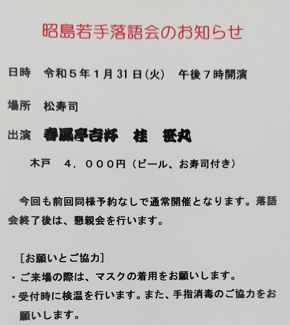 師匠にこっち方面の会に出ていただくのは、2018年昭島市で行った昇進披露の会以来!