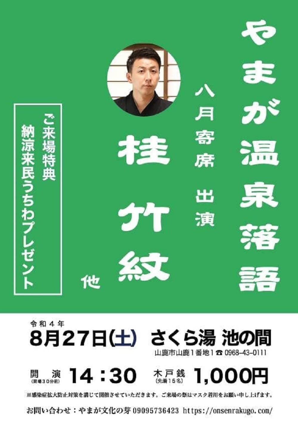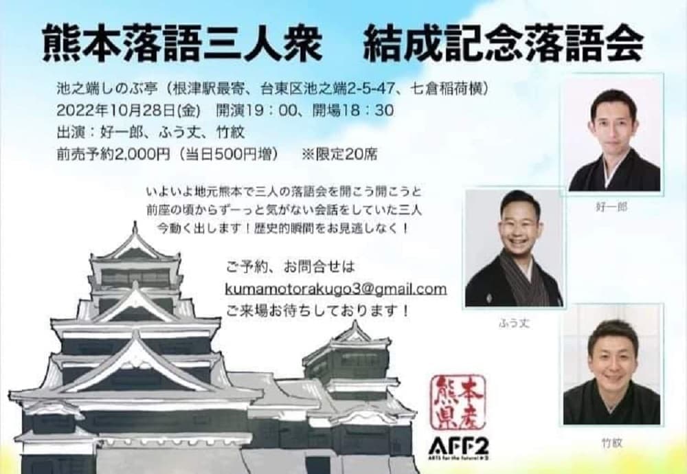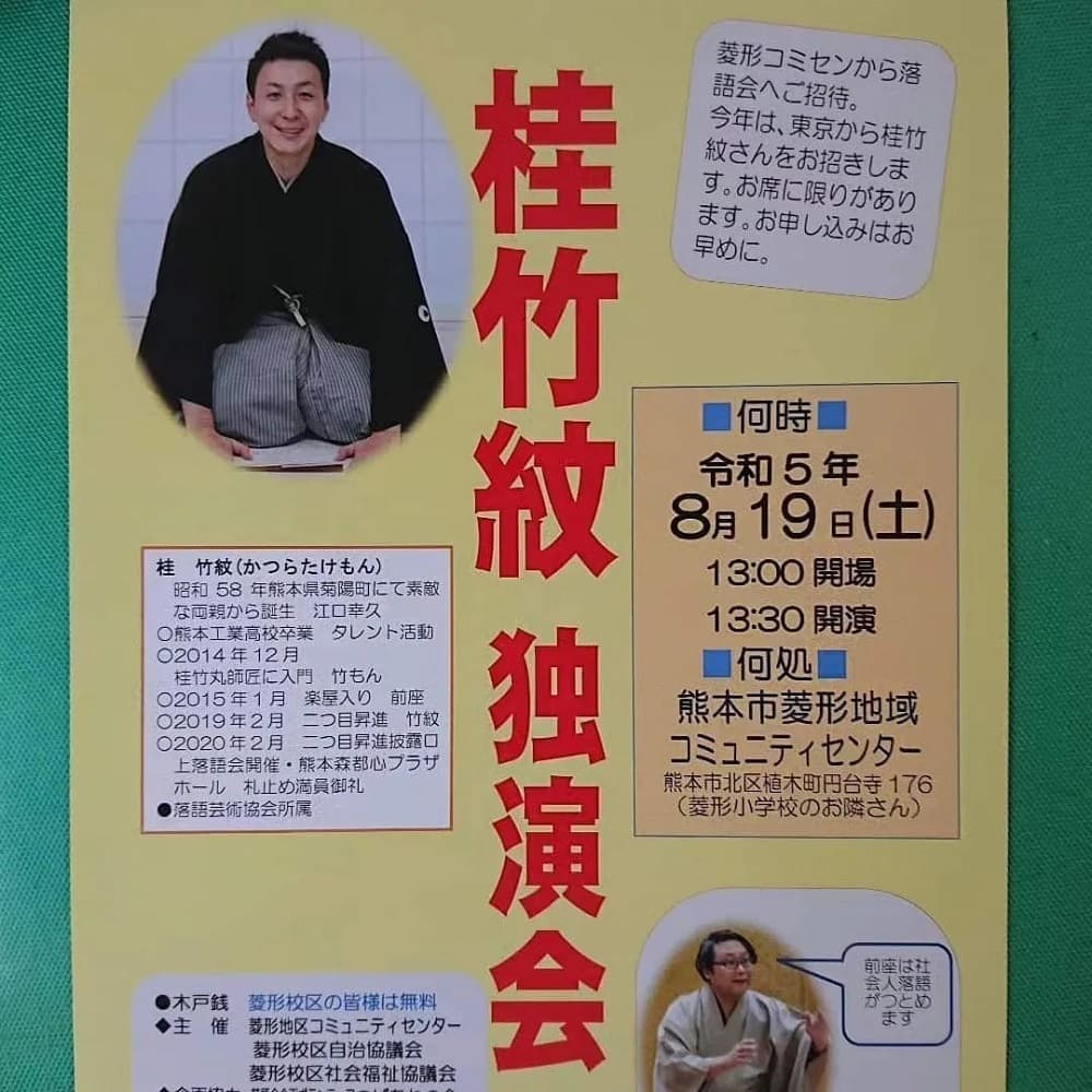 熊本の芦北にて落語会開催!本当に有り難いです!是非とも県南の皆様観に来て下さい!この日のみ無料です!
