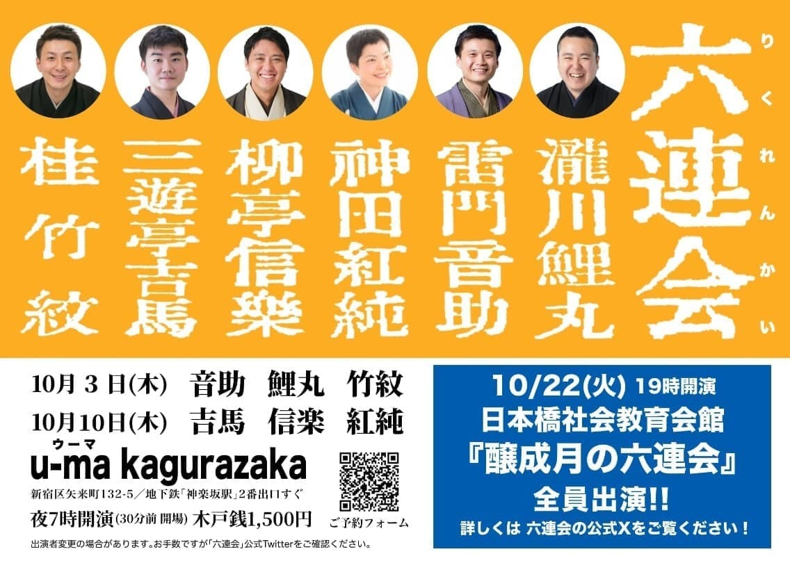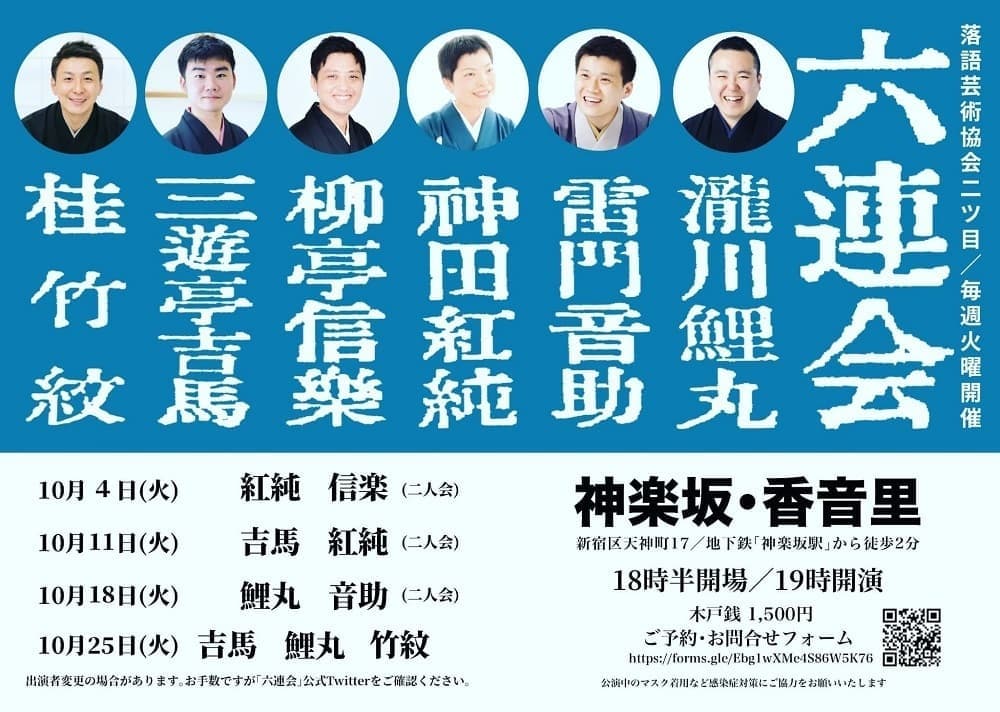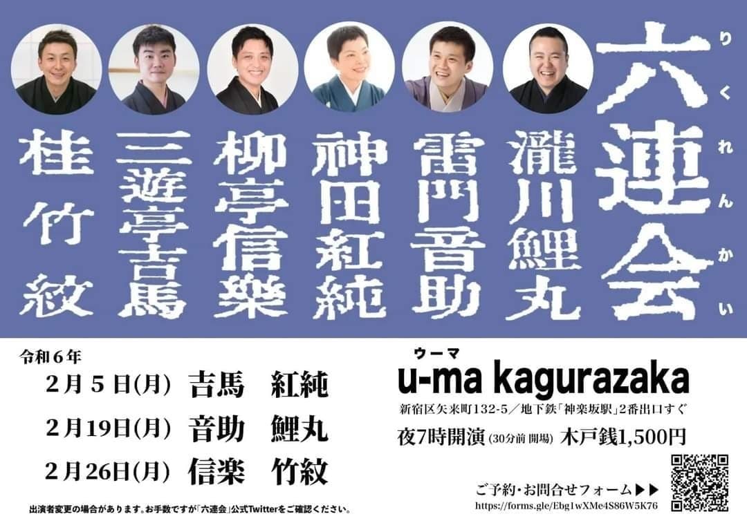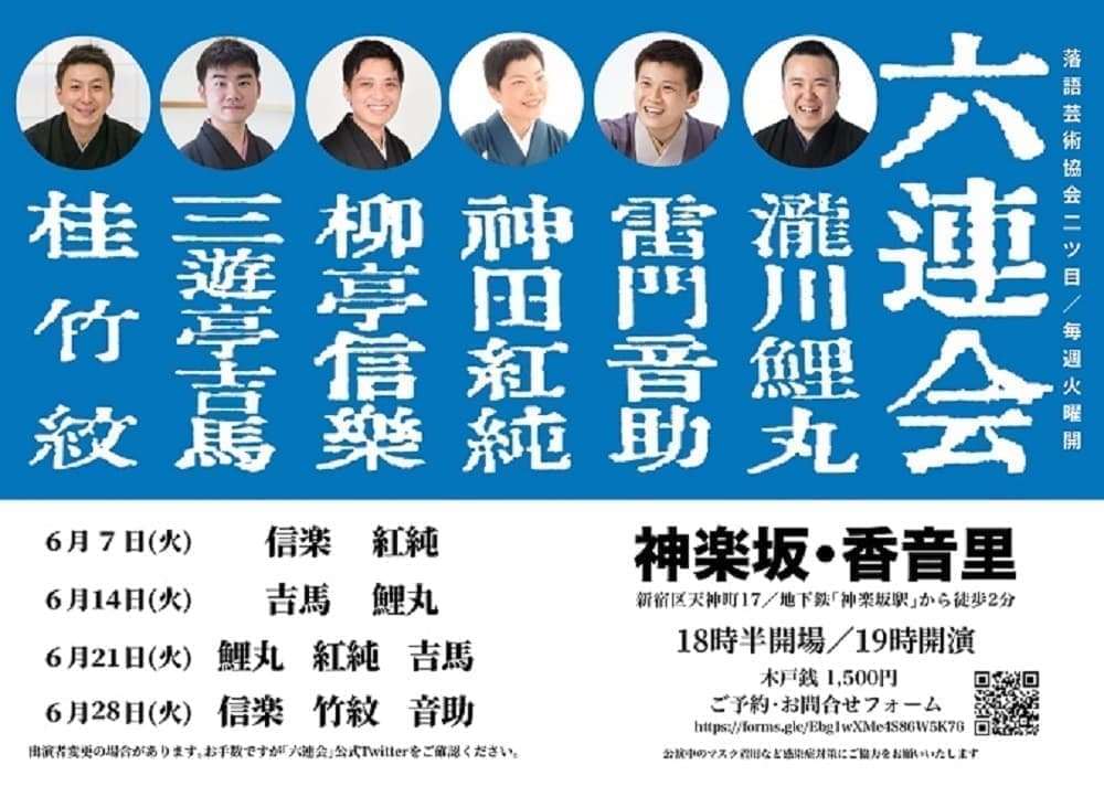 明日の6日と20日は六連会に出ます!よかったら是非とも!