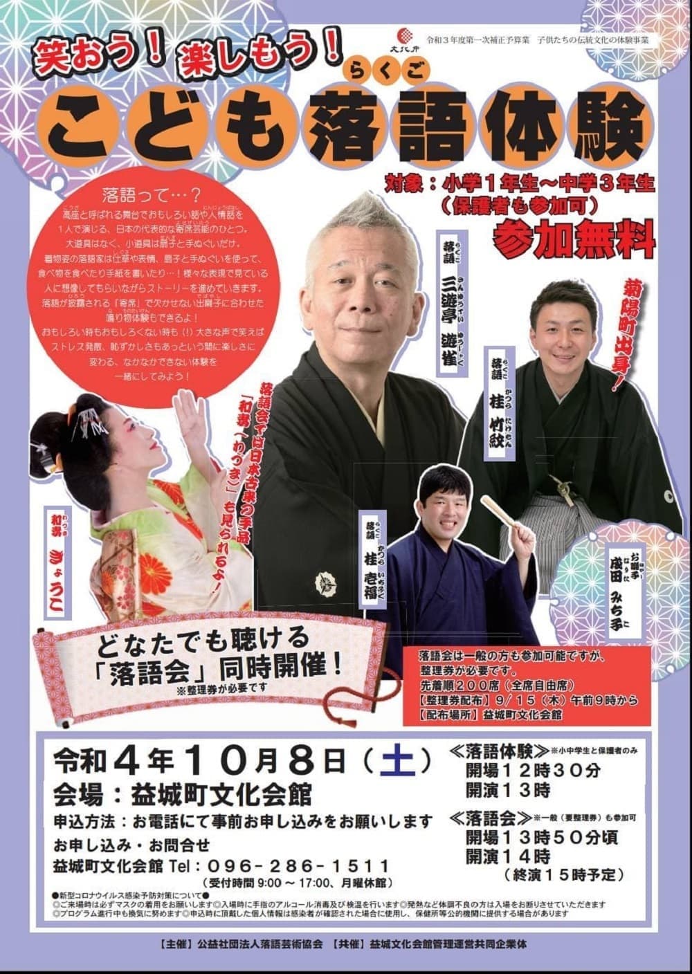 熊本益城町にて、こども落語体験の会に出させて頂きます。是非とも観に来て下さい!