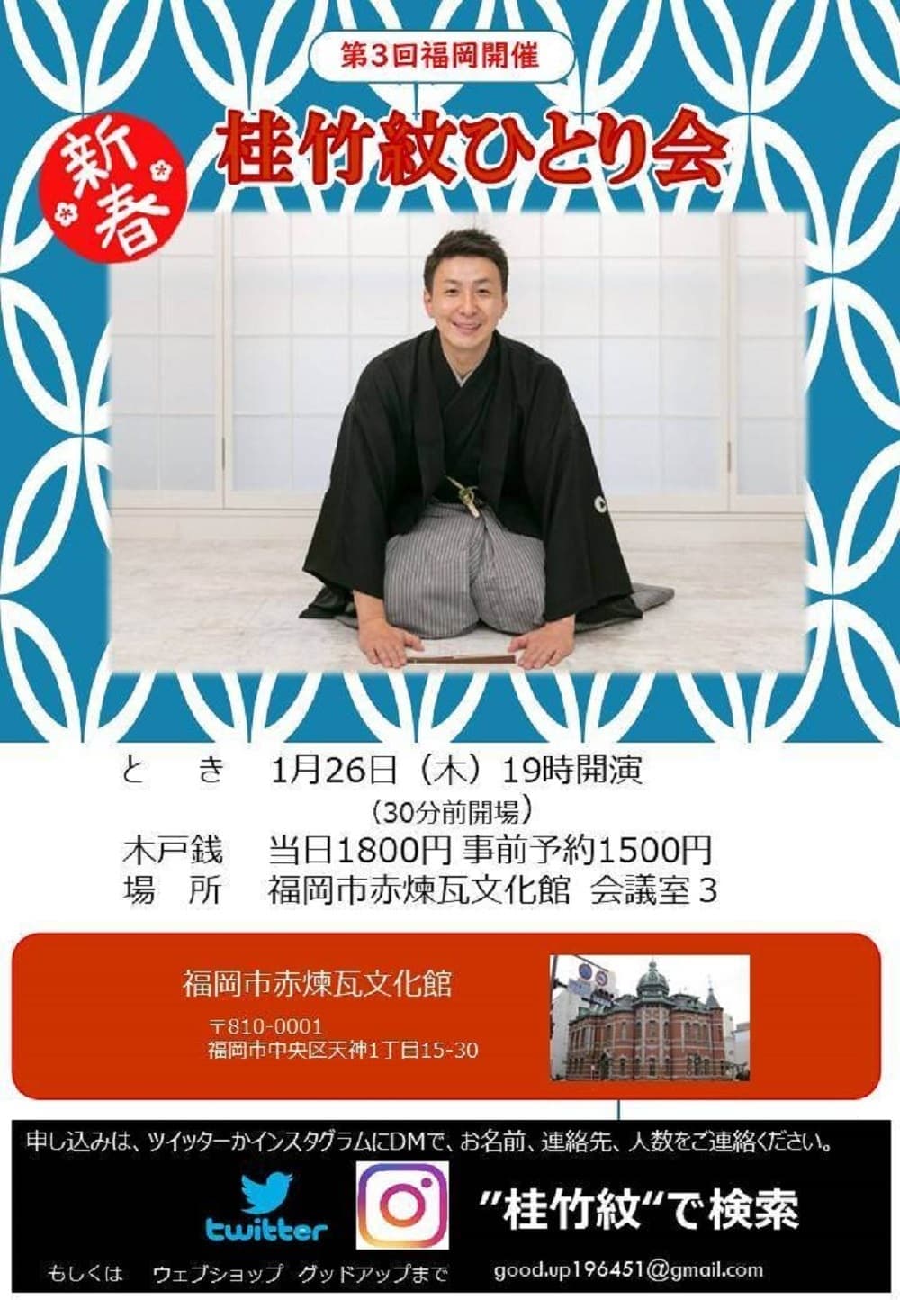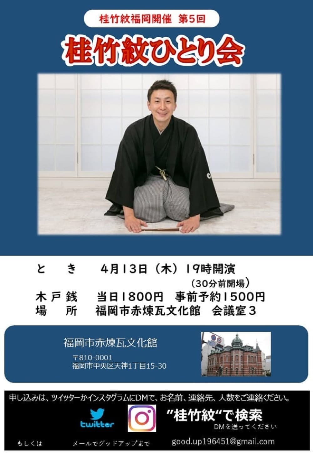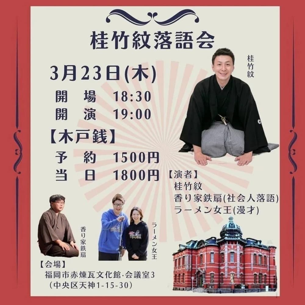 福岡でも落語会させて頂きます。お近くの皆様九州の皆様是非とも観に来て頂けましたら幸いです!!