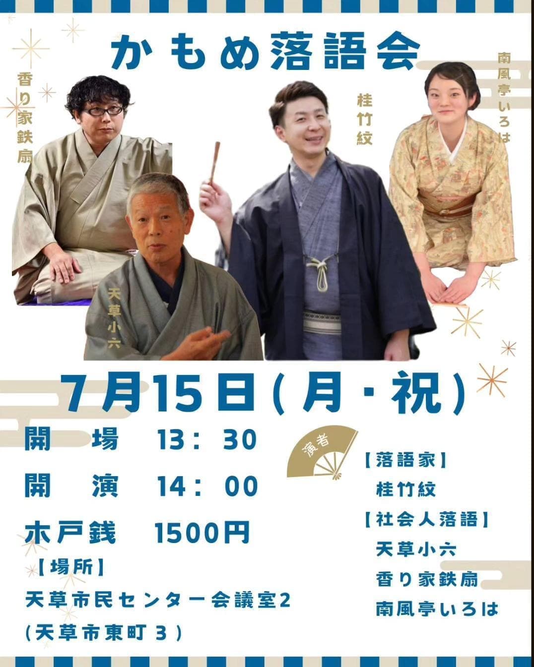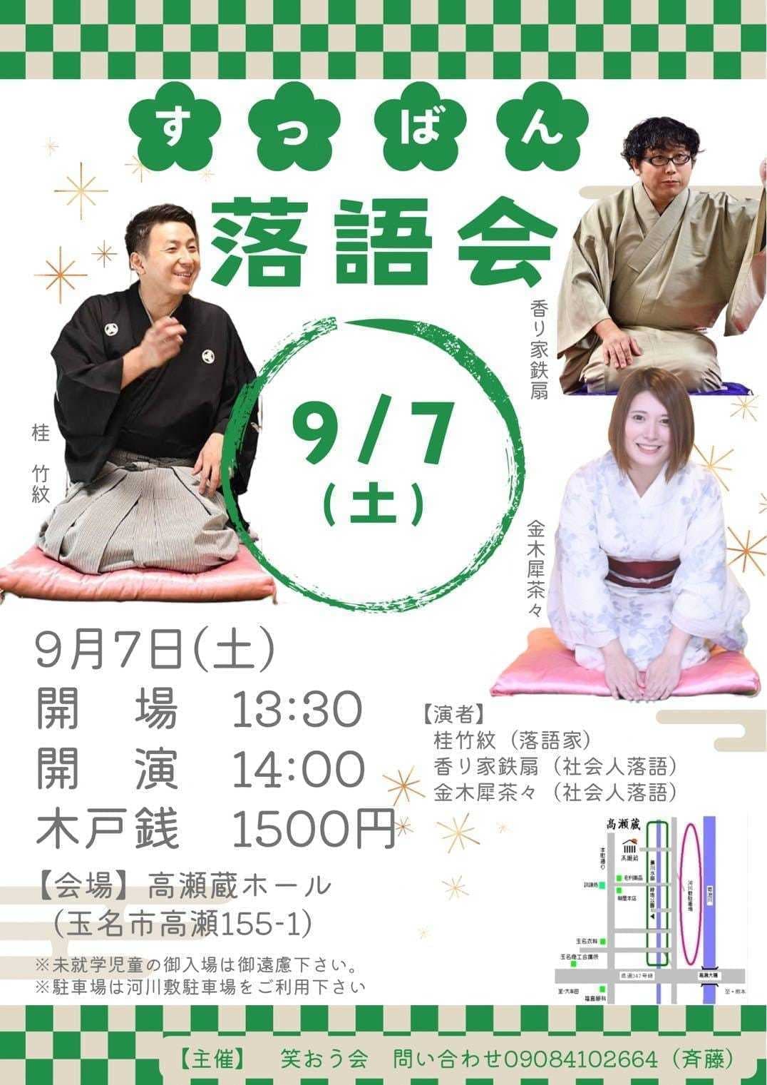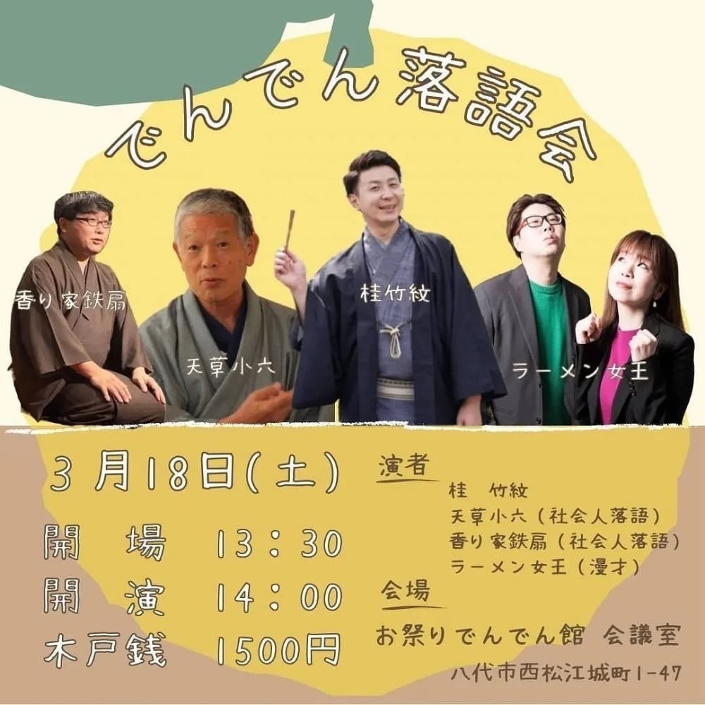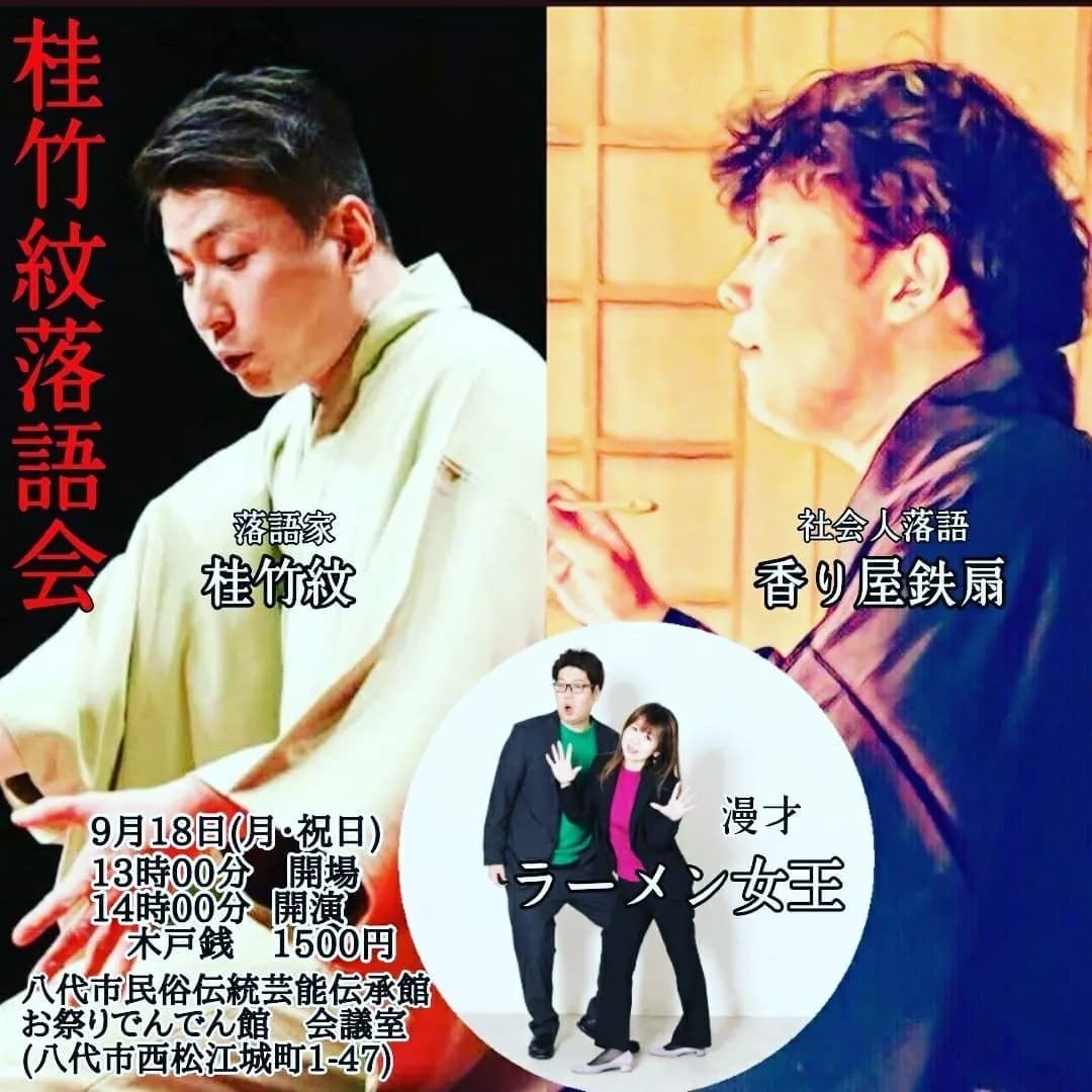 演者·桂竹千代·桂竹紋·香り家鉄扇(社会人落語)ラーメン女王(漫才)その他