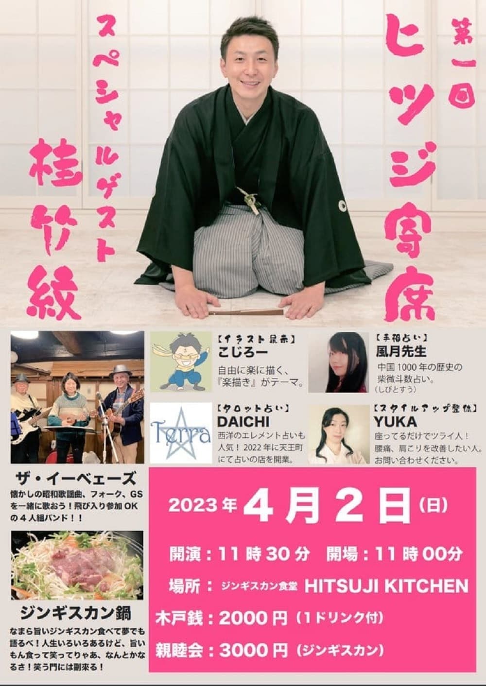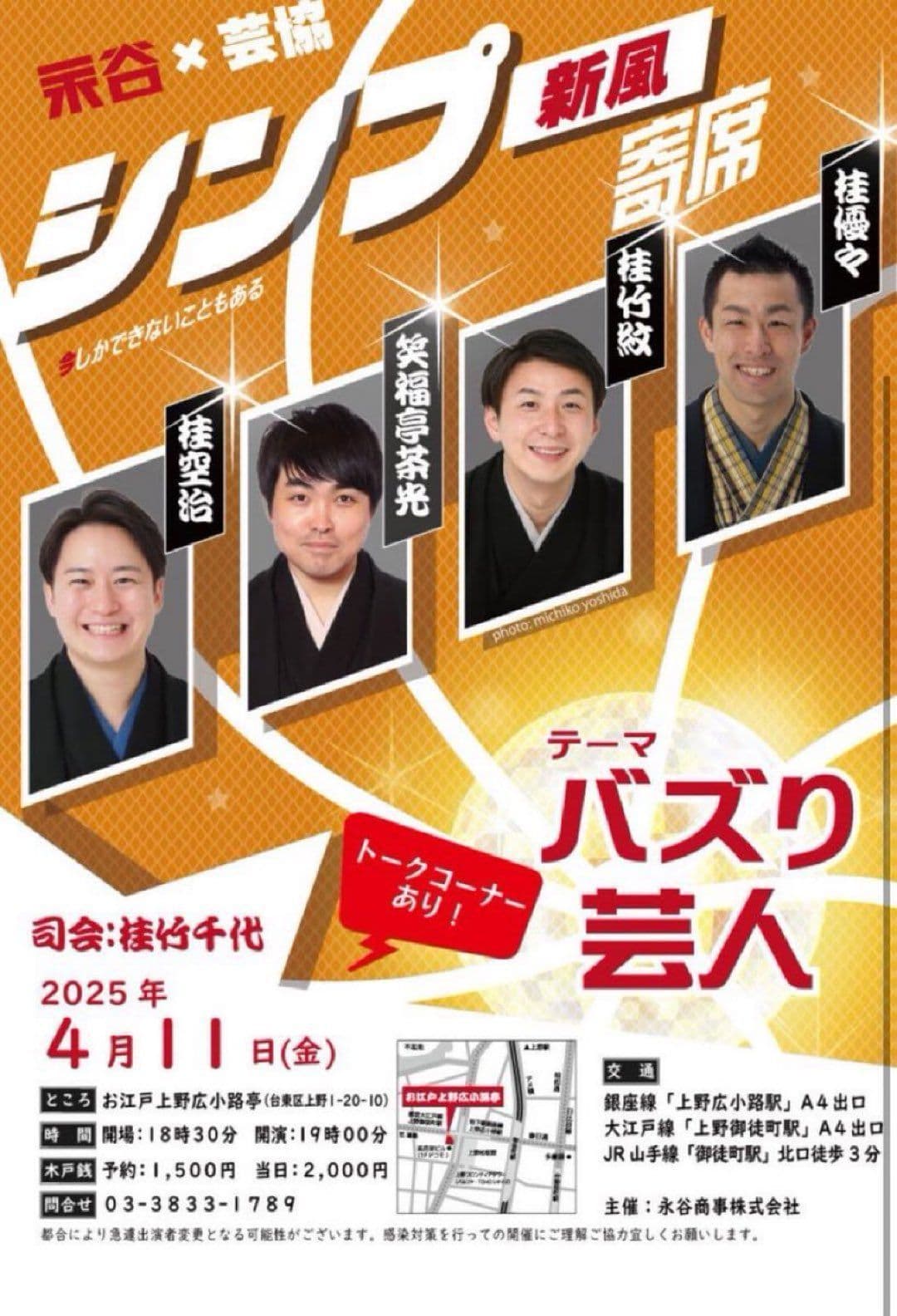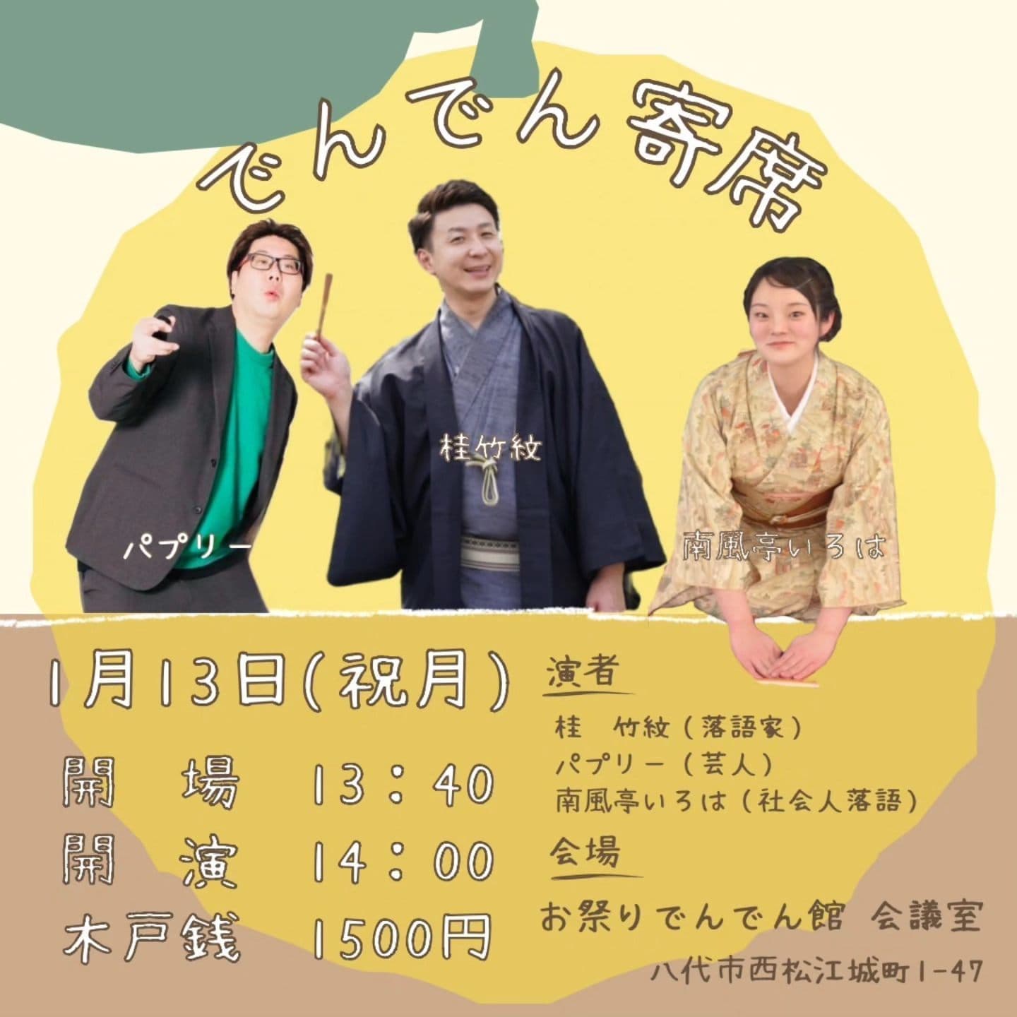 演者·桂竹千代·桂竹紋·香り家鉄扇(社会人落語)ラーメン女王(漫才)その他
