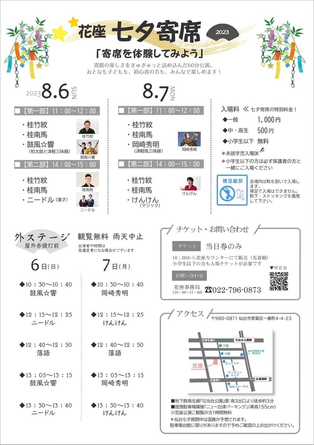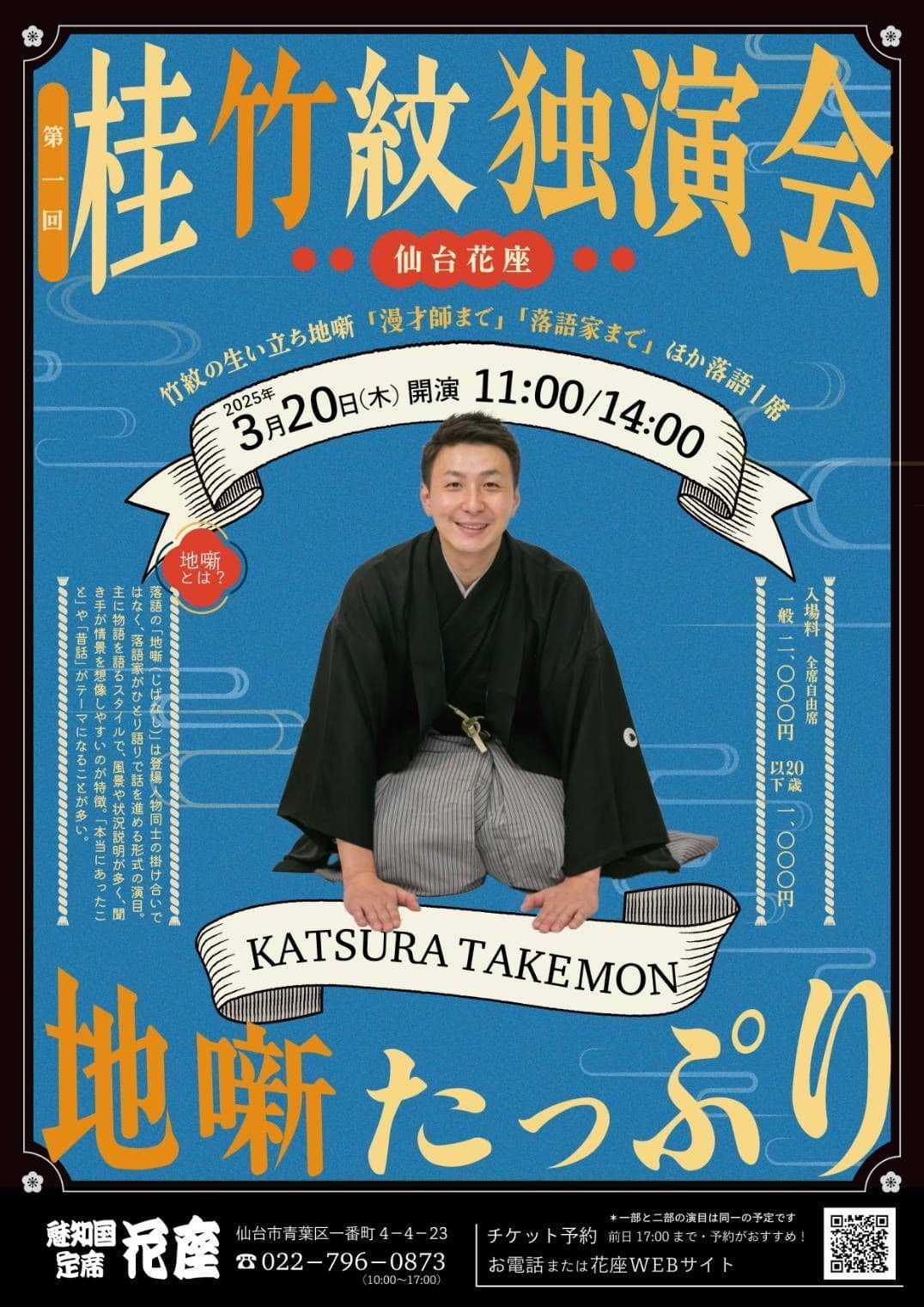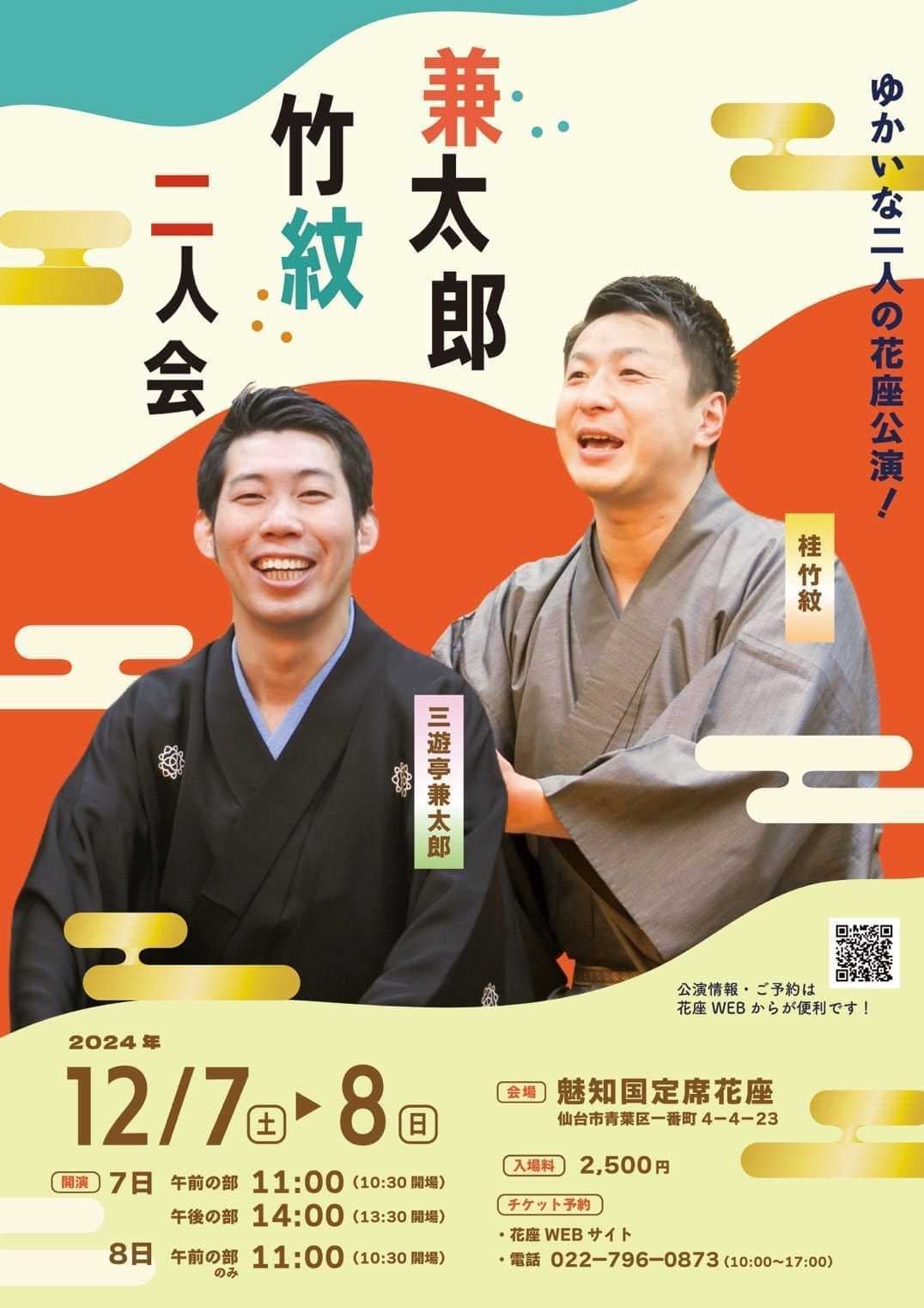宮城県·仙台の皆様。花座にて一門会があります!是非とも観に来て下さい!桂竹丸一門会2022年12月15日(木)16日(金)【第1部】14:00 開演