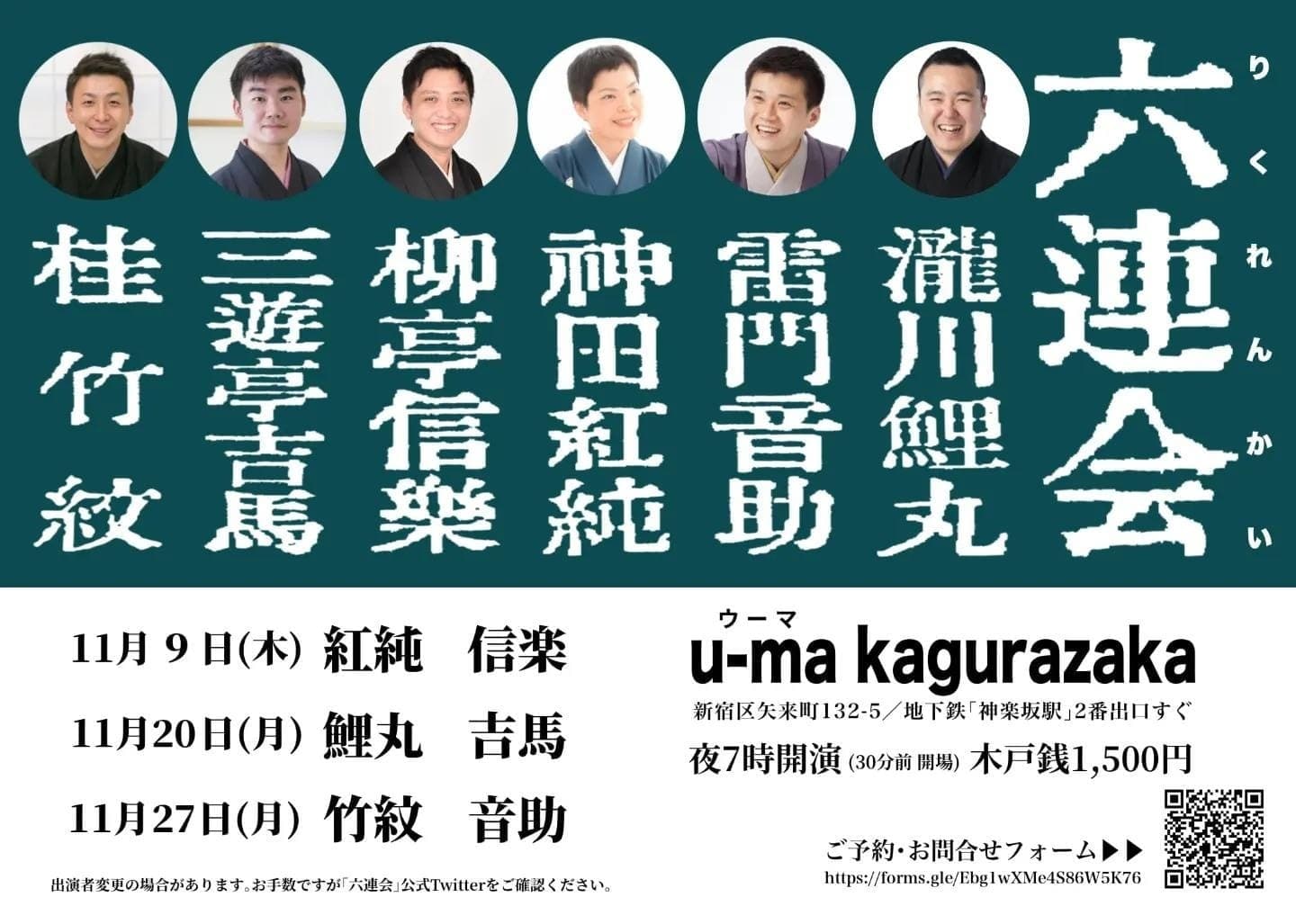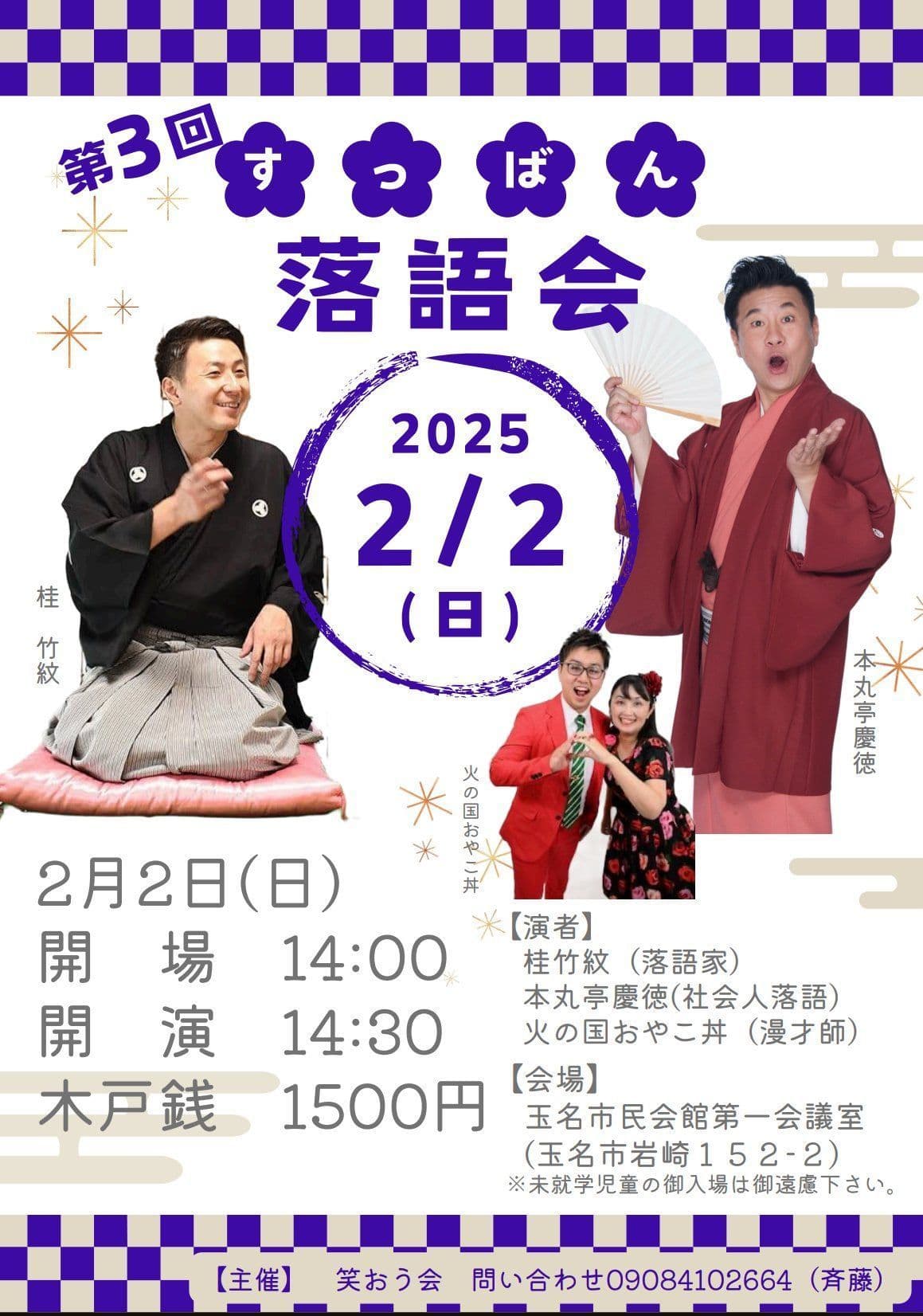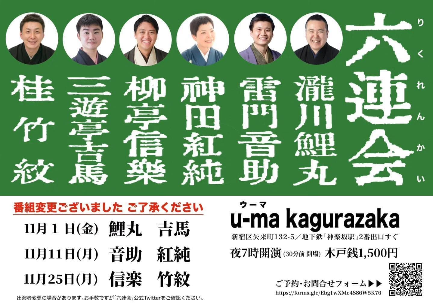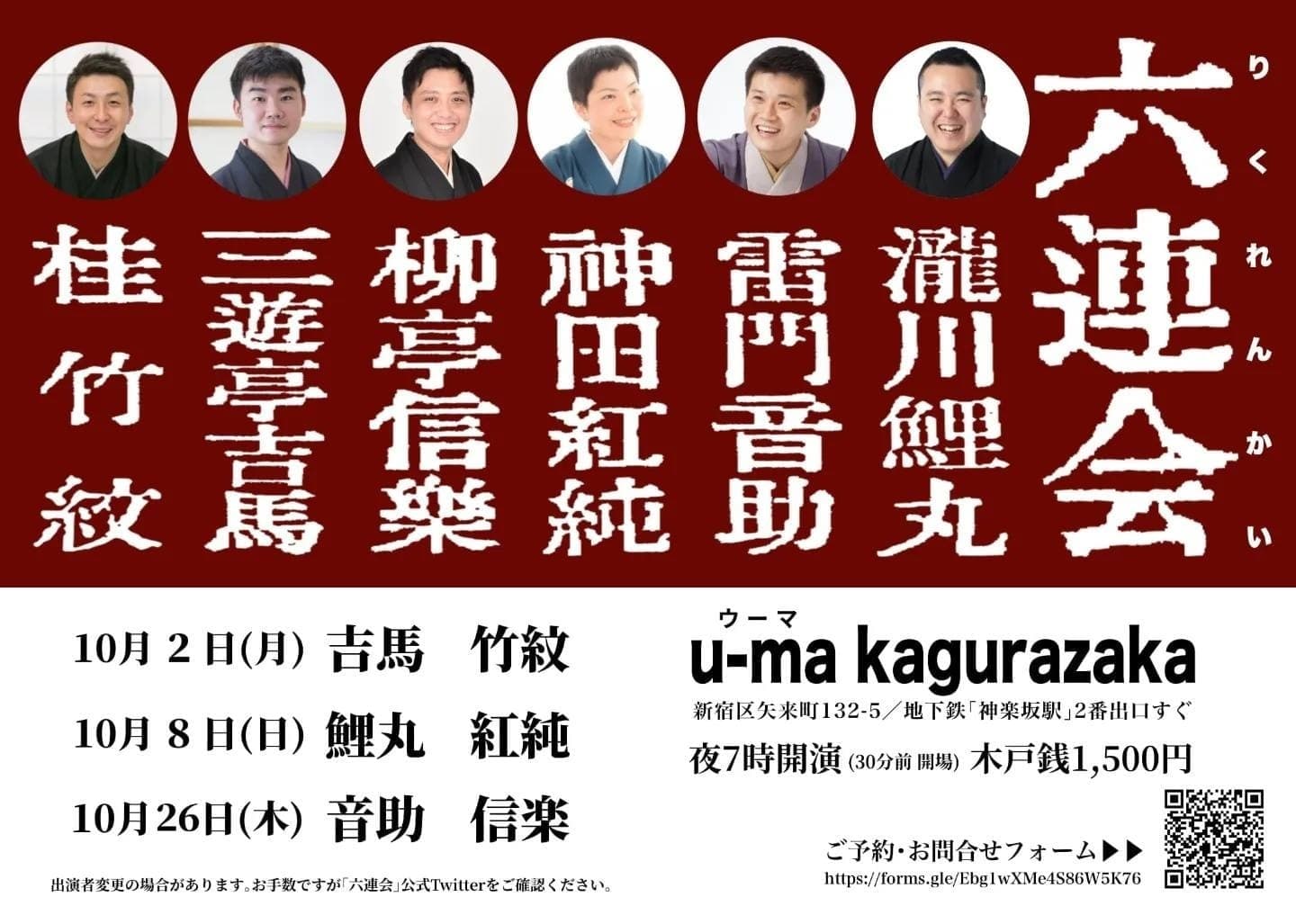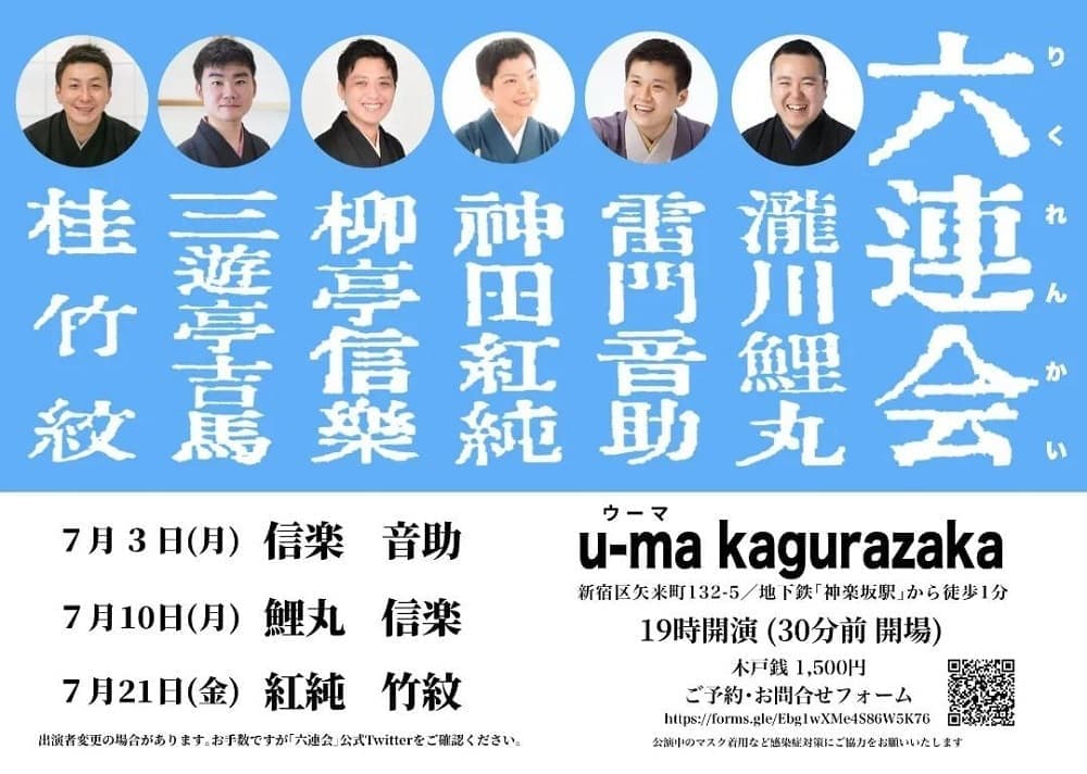 出演 桂竹紋、三遊亭萬丸、三遊亭好青年、古今亭雛菊、三遊亭兼矢