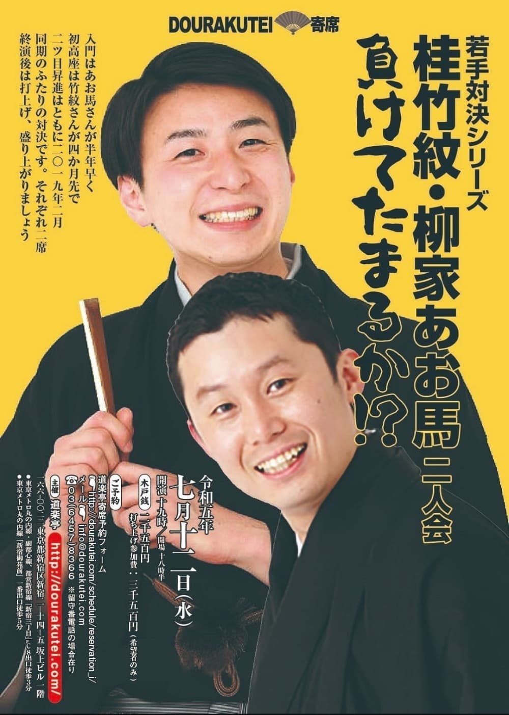 演者・桂竹紋・香り家鉄扇(社会人落語)