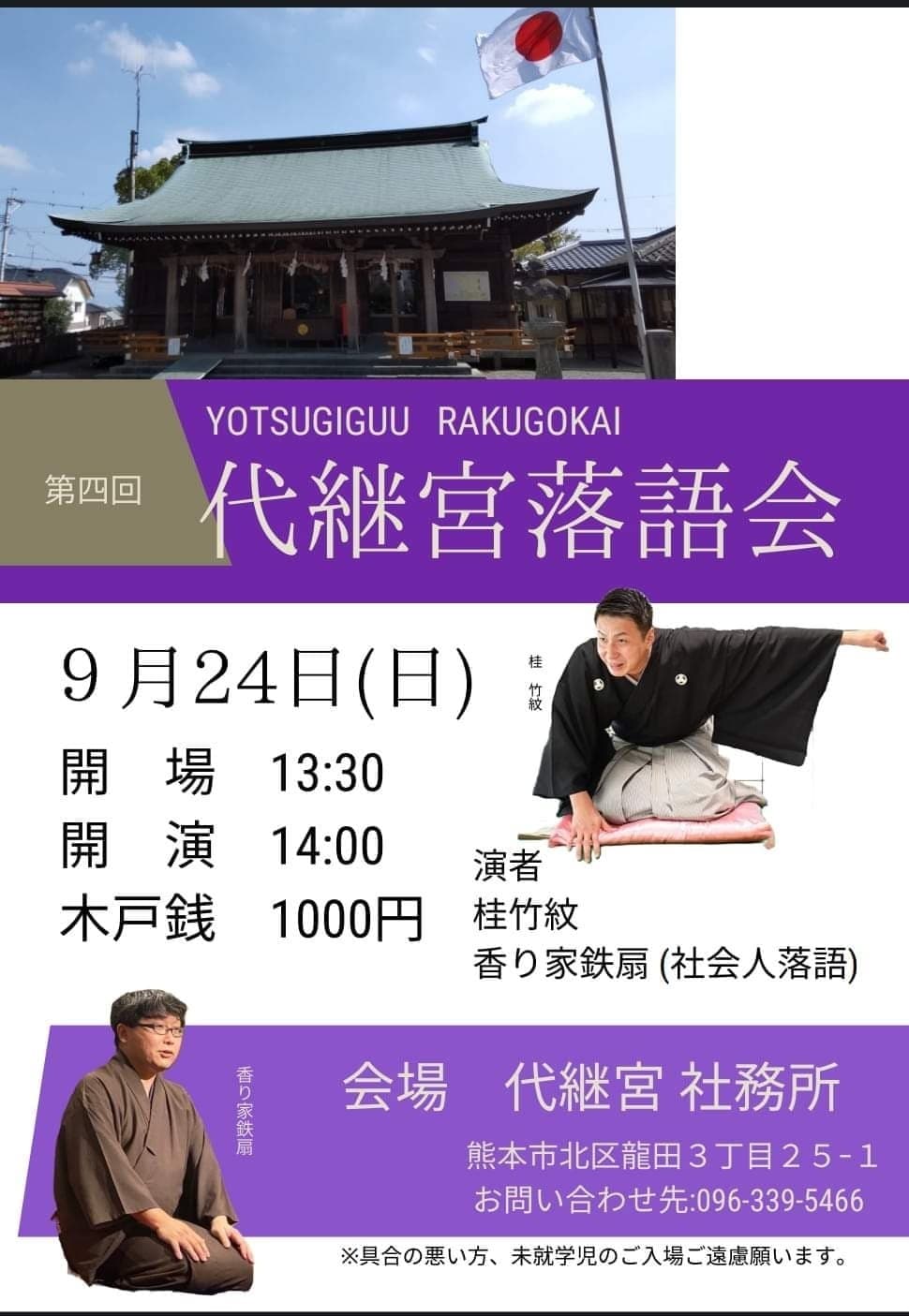 「代継宮落語会」 2022年9月25日(日) 開演14時30分(開場14時)