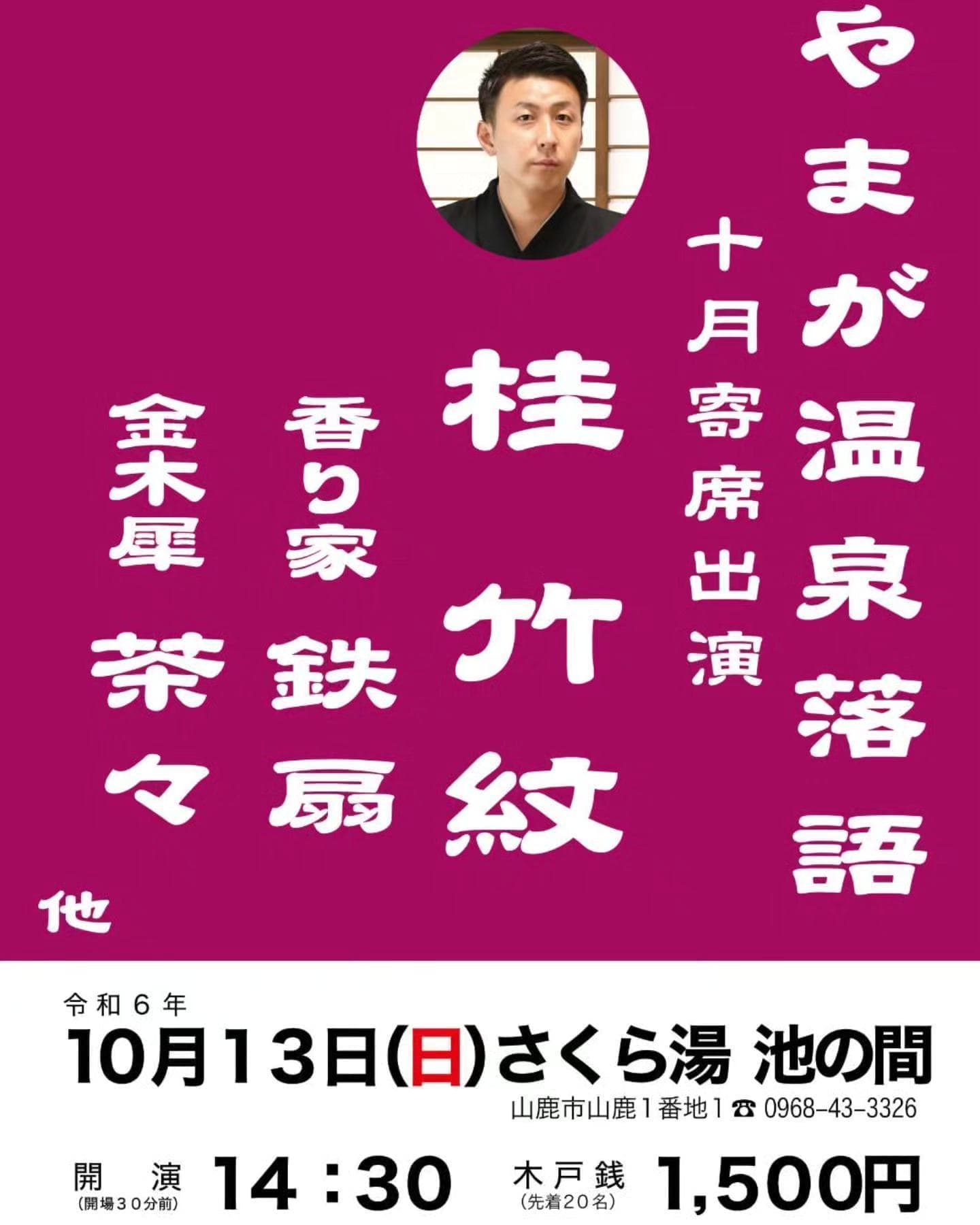 またまた熊本県山鹿にて落語させて頂きます。是非とも観に来て頂けましたら幸いです。比較的時間の短い落語会です。