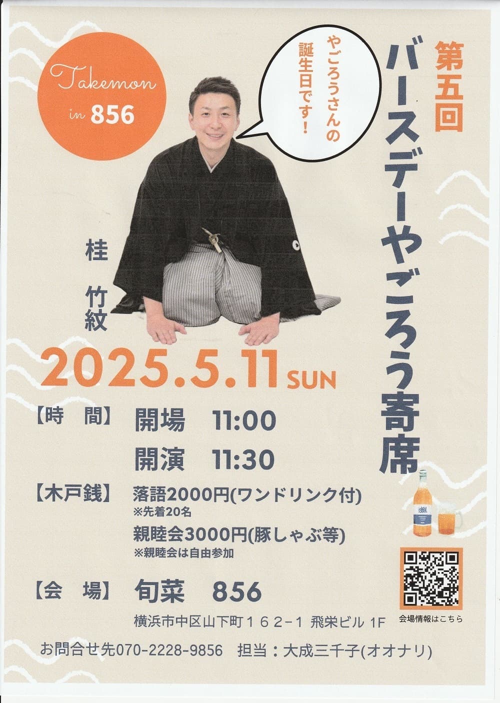 木戸銭1,500円 演者・桂竹紋