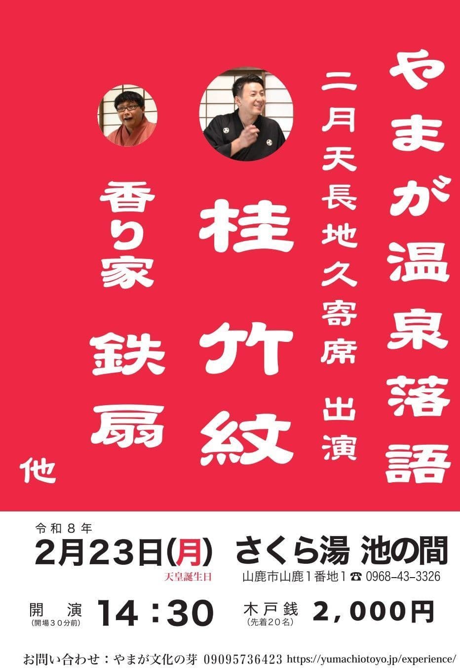 14時30分開演(30分前開場)さくら湯竣工150周年記念さくら湯一日寄席の時間!
