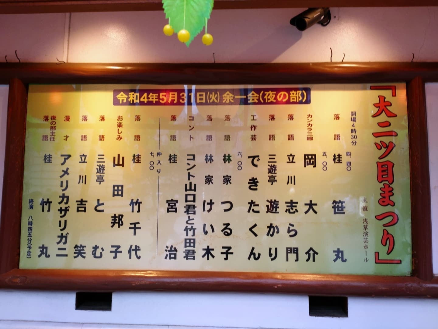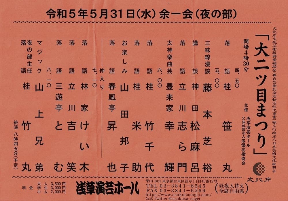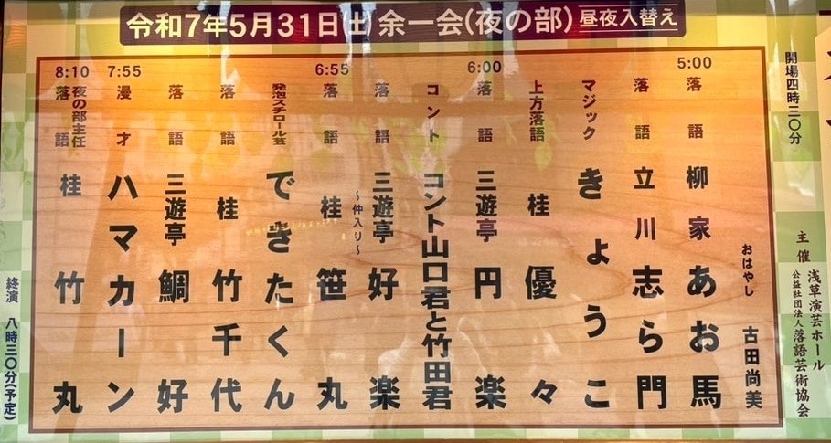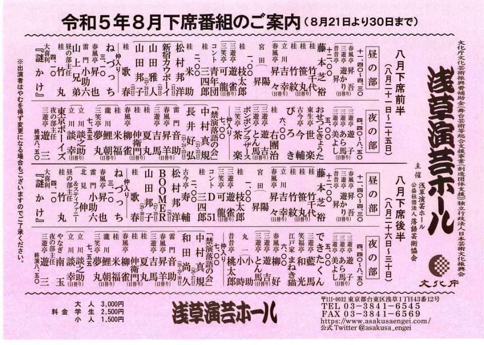 場所:浅草 演芸ホール 夜の部木戸銭:@3.500