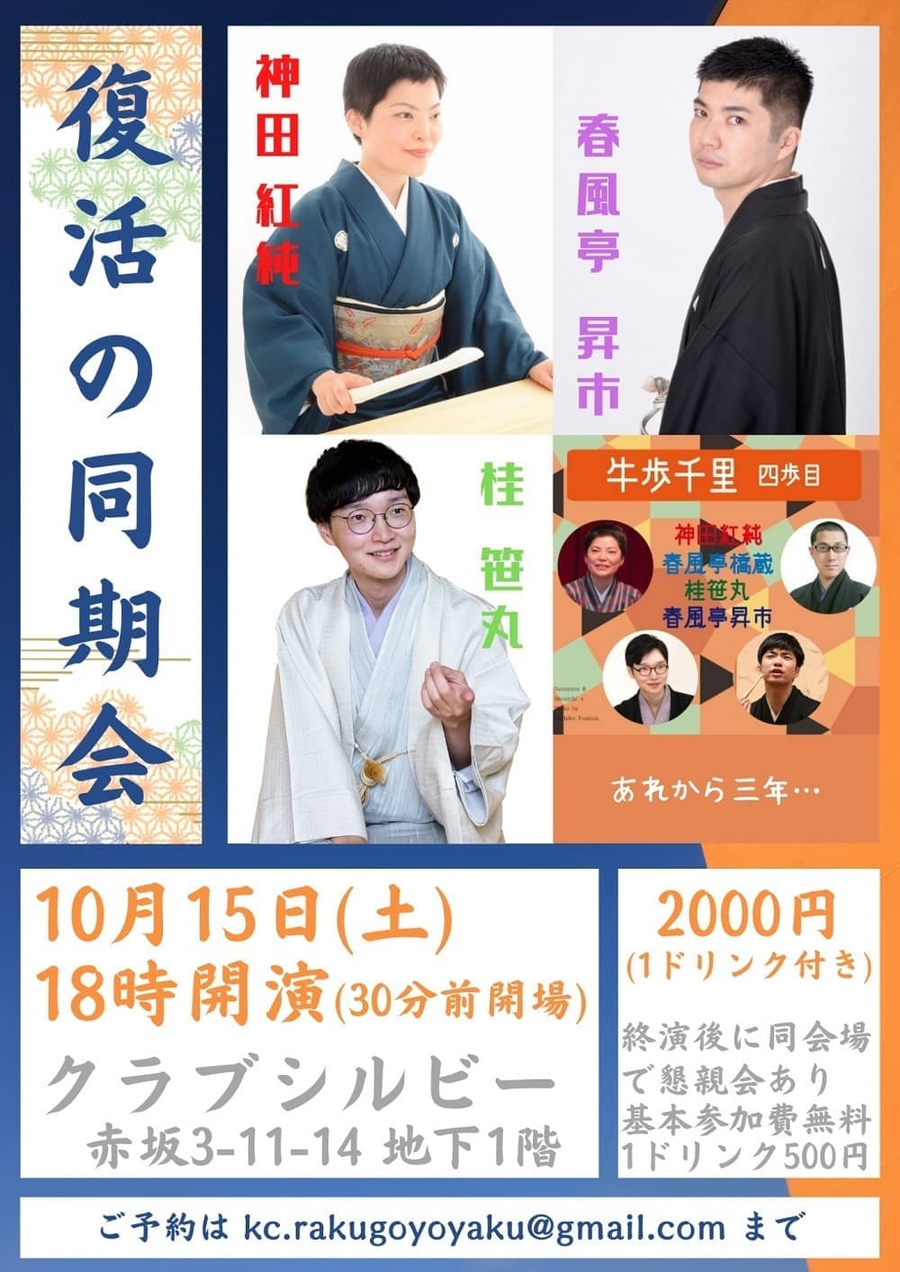 6月に続いて「桂竹丸一門兄弟会」が赤坂のFurusato Dining Bar Sylvie で開催されます。