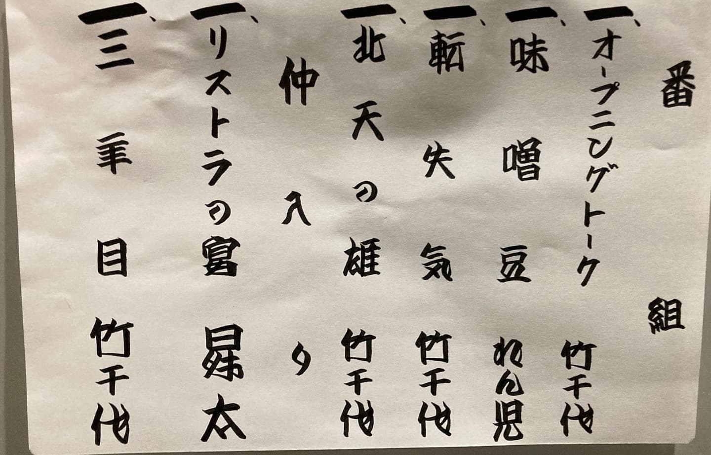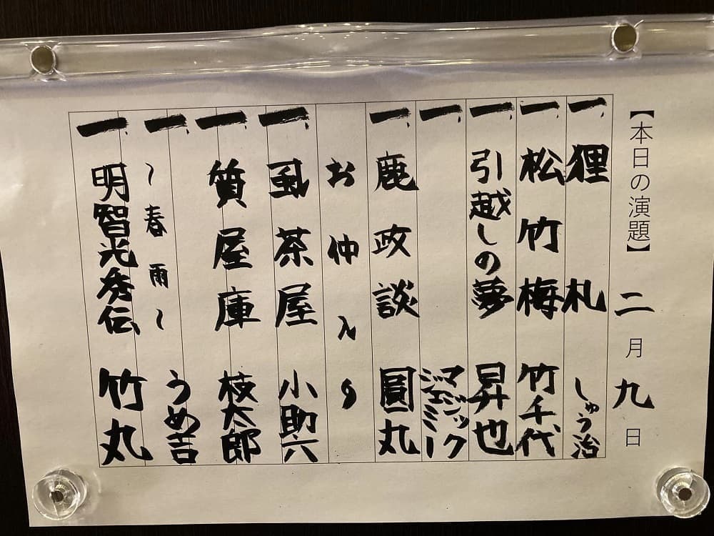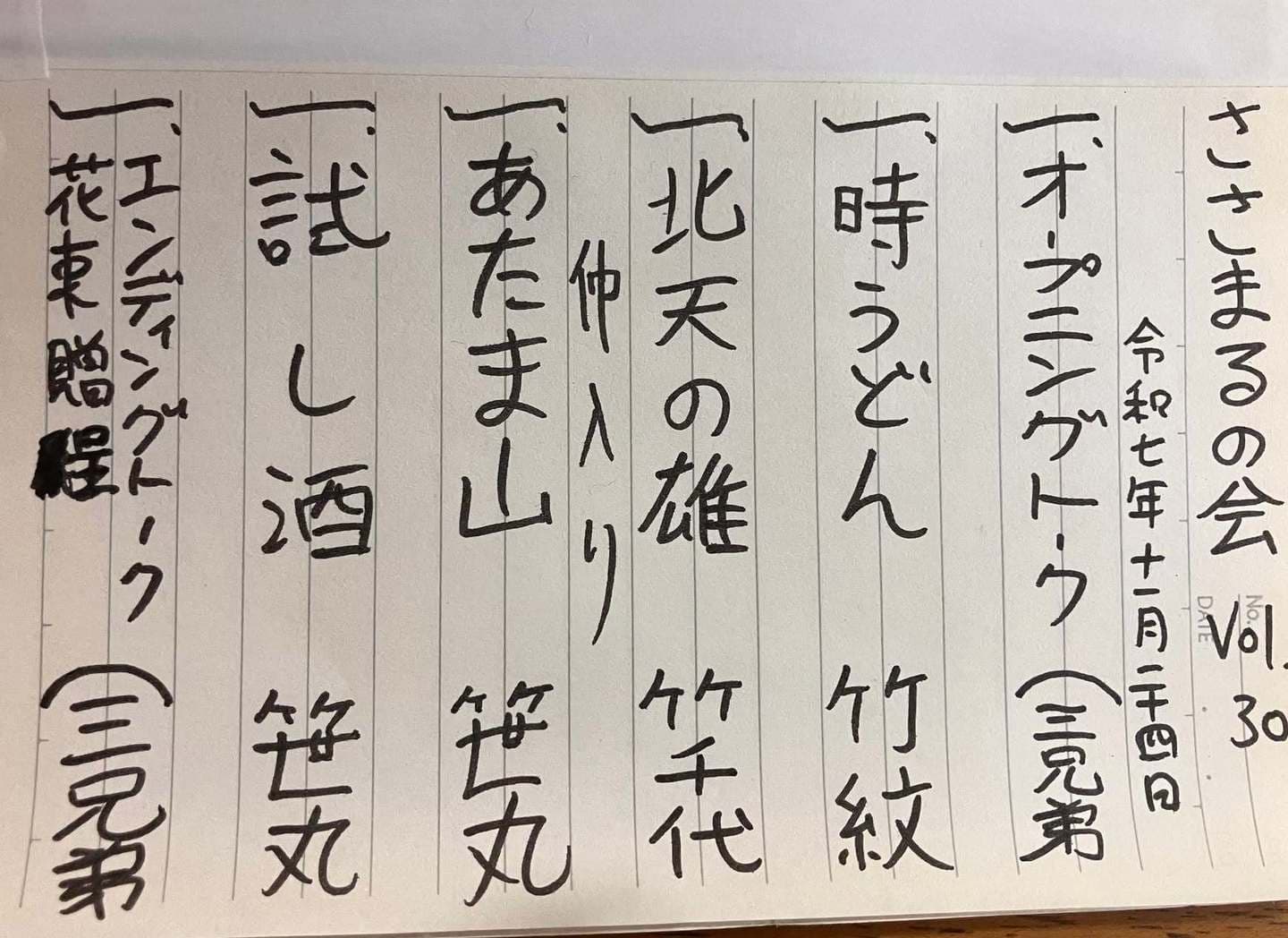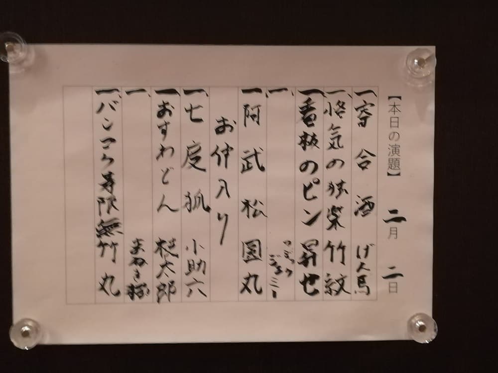 荒木町の居酒屋🏮 美舟 さんは、こじんまりした、往時の江戸下町の雰囲気を醸し出す良い感じの落語会ですね 貼り付け③演目 演目は