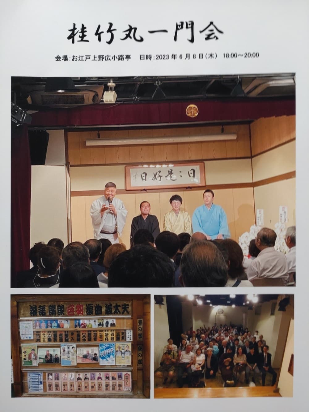 ④浅草演芸ホール「大二ツ目まつり」無事終了しました!!昨年も凄かった竹丸師匠の会にお声をかけて頂けて本当に嬉しかったです。温かいお客様、憧れの兄さんお姉さん方と一緒で、幸せな一晩を過ごさせて頂きました。次は、この中で一番爆笑を取れるようになるぞ!!皆さま、また是非寄席へ