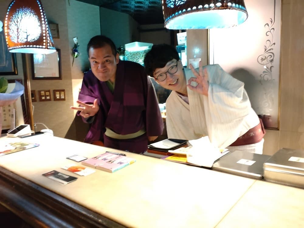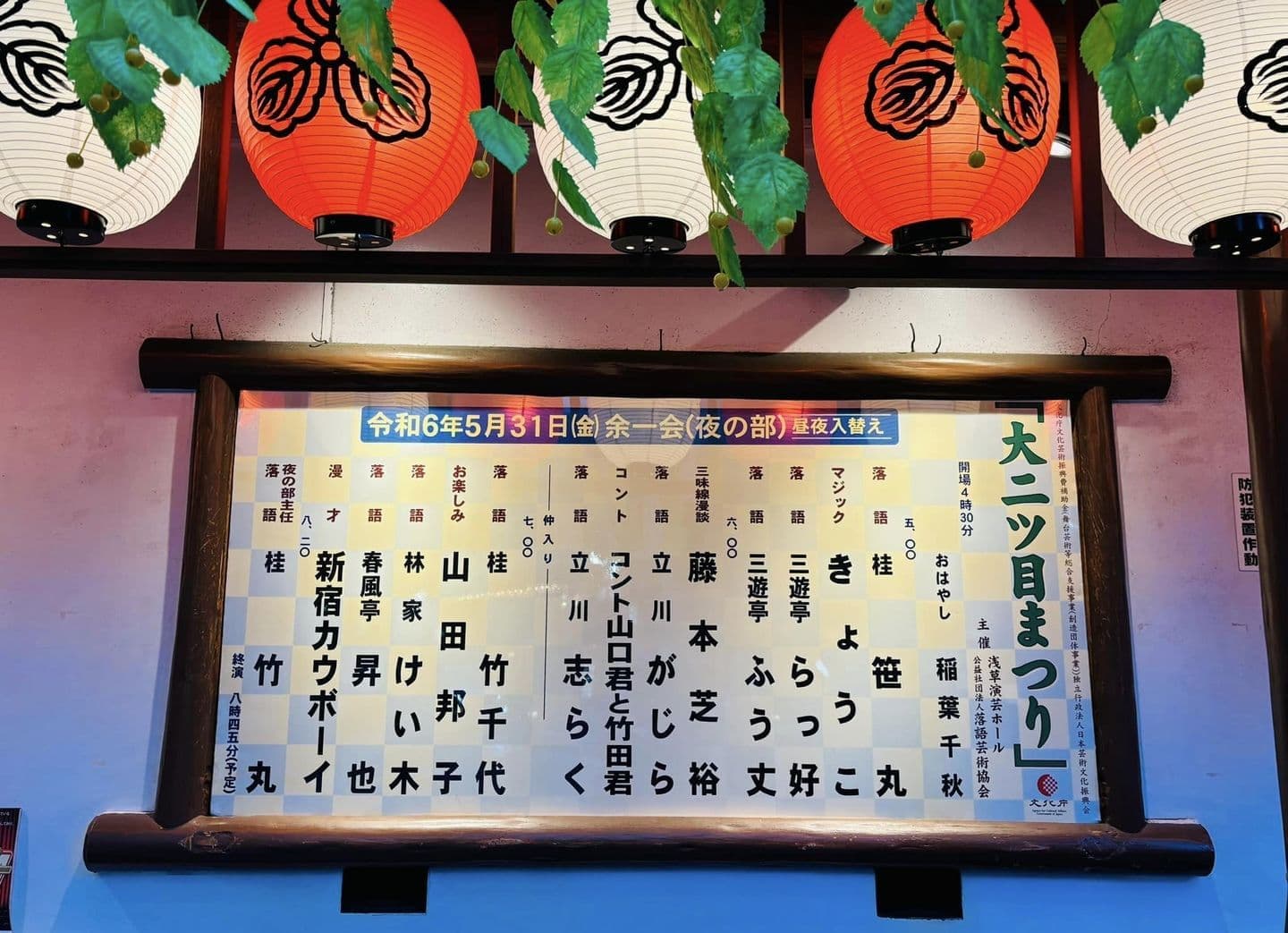 5月31日(火)浅草演芸ホール余一会(夜の部)「大二ツ目まつり」に行ってきましたいつもは~4階の東洋館に行くことが多いのですがこの香盤を見つけた時から観に行ってみたいなぁ~と思っていて。。。山竹さんや桂竹丸師匠をはじめ、落語家さん、芸人さんを熱烈応援されているFBFのK玉さんも観に行かれるとのことで~今回、ご一緒させていただきましたホントに豪華な出演者の皆様で最初から最後まで~たっぷりと~楽しませていただきました初めて聞く落語も面白かったし~コント山口君と竹田君のコントも最高お決まりの竹田君のセリフ間違いもあり~山田邦子さんのゴルゴ13に、会場も大爆笑終演後~、竹丸師匠がお客様を外でお見送りされていて、一緒に記念撮影していただきました竹丸師匠、K玉さん、ありがとうございましたたくさん笑って~