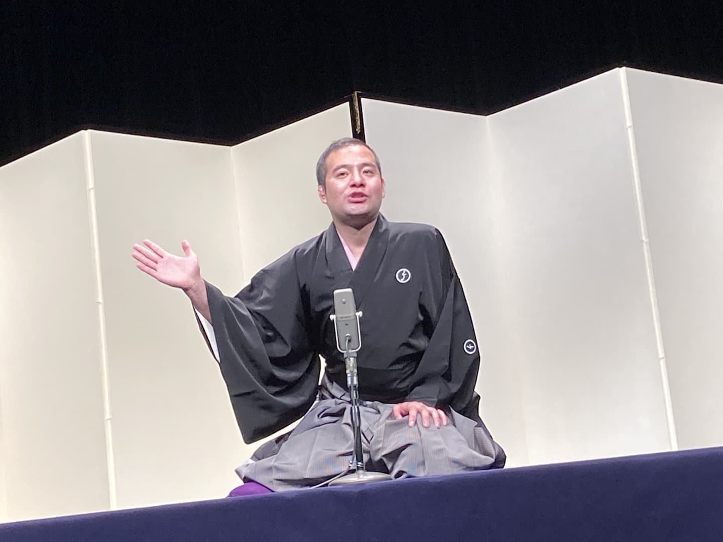 ②続いて登場したのはゲストの #林家つる子 さん 「反対俥」で一気に会場を盛り上げてくださいました。
