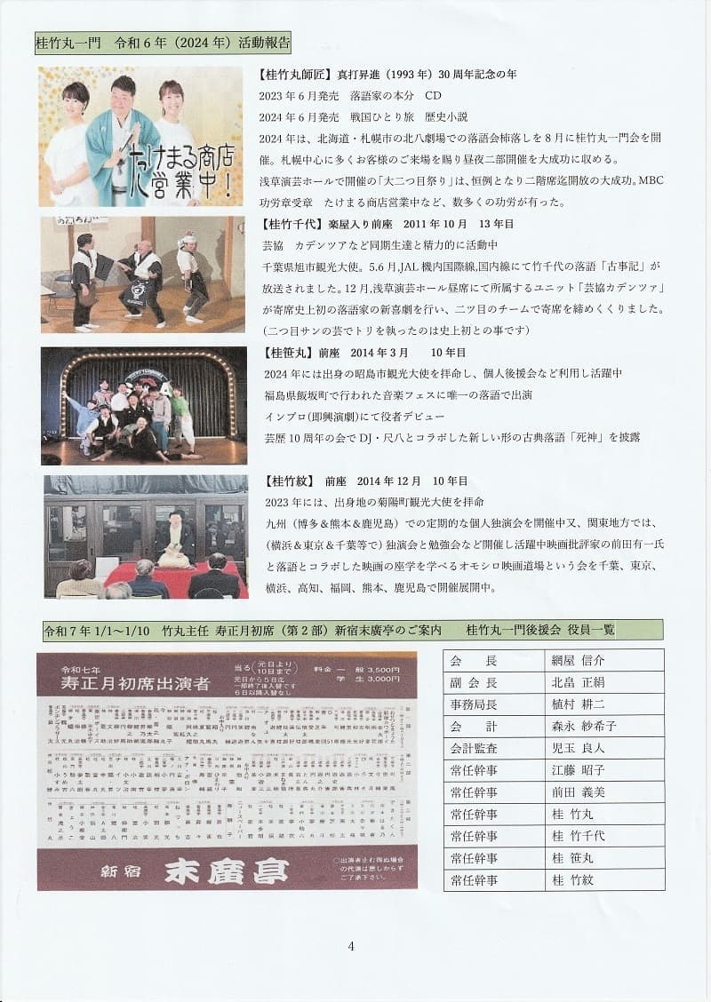 「桂竹丸一門後援会」会員募集ページは