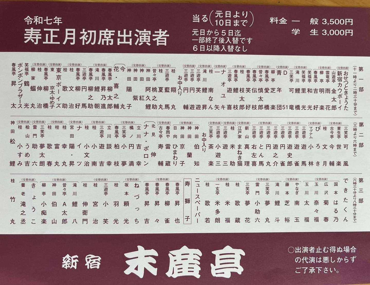 令和7年7月6日(土)~10日(木)池袋演芸場